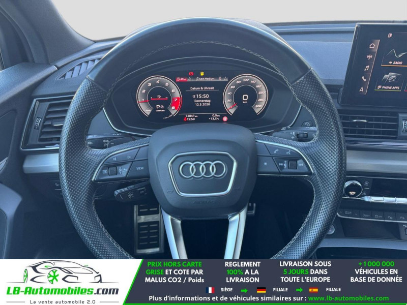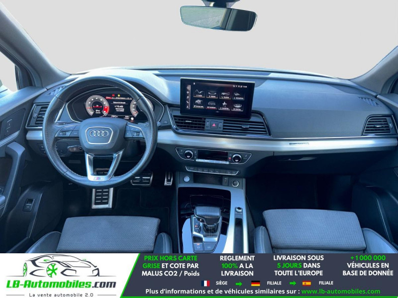 Référence : 1188605 Vos Avantages chez LB-AUTOMOBILES.com / Prix affiché TTC Livré hors carte grise / Livraison sous 10 jours dans toute la France hors 31 / Pas d?avance de frais paiement du véhicule 100% à la livraison par virement. Audi Q5 Neuf remisée, Audi Q5 Occasion Toulouse Beaupuy 31850, Audi Q5 Véhicule sorti de réseau collaborateur, Audi Q5 import, Audi Q5 importateur, Audi Q5 Livraison possible dans toute la France sous 5 jours, Audi Q5, Audi Q5 Location Option Achat, Audi Q5 LLD, Audi Q5 Longue Durée, Audi Q5 TVA récupérable. Possibilité d'extension de garantie 12, 24,36 mois, Pour tout autres voitures import neufs ou occasions collaborateur fortement remisée, Mandataire Audi, Mandataire BMW, Mandataire Volkswagen, Mandataire Mercedes, Mandataire Peugeot Espagne, Mandataire Renault Espagne, Porsche import, Mandataire Citroën Espagne, Mandataire Seat Espagne, n'hésitez pas à nous contacter. « Sous réserve de vente préalable et erreur de saisie » Principaux équipements : - 4x4 - ABS - Accoudoir - Android Auto - Antidémarrage - Apple CarPlay - Assistance au freinage d'urgence - Assistance de démarrage en côte - Assistant d'angle mort - Assistant feux de route - Avertisseur de franchissement de ligne - Bluetooth - Boîte de vitesses robotisée - Capteur de lumière - Carnet d'entretien - Chargement par induction pour smartphones - Cockpit numérique - Commande vocale - Contrôle de la pression des pneus - Diesel avec filtre à particules - Direction assistée - Éclairage adaptatif - Éclairage d'ambiance - Éclairage route non éblouissant - Écran tactile - ESP - Fermeture centralisée - Feux de jour LED - Galerie de toit - Garantie - GPS - Hayon électrique - Isofix - Jantes alliage - Kit mains libres - Ordinateur de bord - Pack sport - Phares LED - Pneus été - Port USB - Préparation de l'attache remorque - Radio DAB - Réglage électrique des sièges - Régulateur de vitesse adaptatif - Rétroviseur extérieur électrique - Rétroviseur intérieur anti-éblouissement automatique - Sièges chauffants - Sièges sport - Streaming musical intégré - Support lombaire - Suspension pneumatique - Système antipatinage - Système d'appel d'urgence - Système d'avertissement de la distance - Système de limitation de la vitesse - Système de nettoyage des phares - Système de reconnaissance des panneaux de signalisation - Système de sonorisation - Système Stop & Start - Tuner/radio - Véhicule non-fumeur - Verrouillage centralisé sans clé - Vitres électriques - Volant en cuir - Volant multifonction