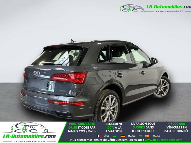 Référence : 1188613 Vos Avantages chez LB-AUTOMOBILES.com / Prix affiché TTC Livré hors carte grise / Livraison sous 10 jours dans toute la France hors 31 / Pas d?avance de frais paiement du véhicule 100% à la livraison par virement. Audi Q5 Neuf remisée, Audi Q5 Occasion Toulouse Beaupuy 31850, Audi Q5 Véhicule sorti de réseau collaborateur, Audi Q5 import, Audi Q5 importateur, Audi Q5 Livraison possible dans toute la France sous 5 jours, Audi Q5, Audi Q5 Location Option Achat, Audi Q5 LLD, Audi Q5 Longue Durée, Audi Q5 TVA récupérable. Possibilité d'extension de garantie 12, 24,36 mois, Pour tout autres voitures import neufs ou occasions collaborateur fortement remisée, Mandataire Audi, Mandataire BMW, Mandataire Volkswagen, Mandataire Mercedes, Mandataire Peugeot Espagne, Mandataire Renault Espagne, Porsche import, Mandataire Citroën Espagne, Mandataire Seat Espagne, n'hésitez pas à nous contacter. « Sous réserve de vente préalable et erreur de saisie » Principaux équipements : - 4x4 - ABS - Accoudoir - Affichage tête haute - Antidémarrage - Apple CarPlay - Assistance au freinage d'urgence - Assistance de démarrage en côte - Assistant feux de route - Avertisseur de franchissement de ligne - Bluetooth - Boîte de vitesses robotisée - Capteur de lumière - Capteur de pluie - Carnet d'entretien - Cockpit numérique - Commande vocale - Contrôle de la pression des pneus - Direction assistée - Éclairage adaptatif - Éclairage route non éblouissant - Écran tactile - ESP - Fermeture centralisée - Feux de jour LED - Galerie de toit - Garantie - GPS - Grille de protection pour coffre - Hayon électrique - Isofix - Jantes alliage - Kit de réparation d'urgence des pneus - Kit mains libres - Lecteur CD - Ordinateur de bord - Pack sport - Phares LED - Pneus été - Port USB - Radio DAB - Régulateur de vitesse adaptatif - Rétroviseur extérieur électrique - Rétroviseur intérieur anti-éblouissement automatique - Rétroviseurs extérieurs rabattables électriquement - Sièges chauffants - Sièges sport - Streaming musical intégré - Support lombaire - Suspension sport - Système antipatinage - Système d'appel d'urgence - Système d'avertissement de la distance - Système de détection de la fatigue - Système de limitation de la vitesse - Système de sonorisation - Système Stop & Start - Tuner/radio - Véhicule non-fumeur - Verrouillage centralisé sans clé - Vitres électriques - Vitres teintées - Volant en cuir - Volant multifonction - WLAN / point d'accès Wi-Fi