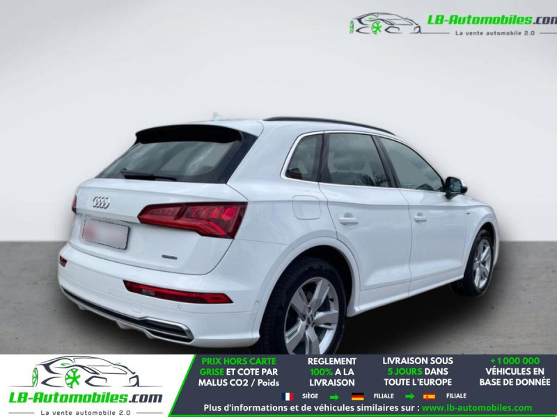 Référence : 1188616 Vos Avantages chez LB-AUTOMOBILES.com / Prix affiché TTC Livré hors carte grise / Livraison sous 10 jours dans toute la France hors 31 / Pas d?avance de frais paiement du véhicule 100% à la livraison par virement. Audi Q5 Neuf remisée, Audi Q5 Occasion Toulouse Beaupuy 31850, Audi Q5 Véhicule sorti de réseau collaborateur, Audi Q5 import, Audi Q5 importateur, Audi Q5 Livraison possible dans toute la France sous 5 jours, Audi Q5, Audi Q5 Location Option Achat, Audi Q5 LLD, Audi Q5 Longue Durée, Audi Q5 TVA récupérable. Possibilité d'extension de garantie 12, 24,36 mois, Pour tout autres voitures import neufs ou occasions collaborateur fortement remisée, Mandataire Audi, Mandataire BMW, Mandataire Volkswagen, Mandataire Mercedes, Mandataire Peugeot Espagne, Mandataire Renault Espagne, Porsche import, Mandataire Citroën Espagne, Mandataire Seat Espagne, n'hésitez pas à nous contacter. « Sous réserve de vente préalable et erreur de saisie » Principaux équipements : - 4x4 - ABS - Accoudoir - Antidémarrage - Assistance au freinage d'urgence - Assistance de démarrage en côte - Assistant d'angle mort - Assistant feux de route - Attache remorque pivotante - Avertisseur de franchissement de ligne - Bluetooth - Boîte de vitesses robotisée - Capteur de lumière - Carnet d'entretien - Chargement par induction pour smartphones - Cockpit numérique - Commande vocale - Contrôle de la pression des pneus - Direction assistée - Éclairage adaptatif - Éclairage d'ambiance - Éclairage route non éblouissant - Écran tactile - ESP - Fermeture centralisée - Feux de jour LED - Galerie de toit - Garantie - GPS - Grille de protection pour coffre - Hayon électrique - Isofix - Jantes alliage - Kit mains libres - Ordinateur de bord - Pack sport - Phares LED - Pneus été - Point Isofix siège passager - Port USB - Radio DAB - Régulateur de vitesse adaptatif - Rétroviseur extérieur électrique - Rétroviseur intérieur anti-éblouissement automatique - Rétroviseurs extérieurs rabattables électriquement - Sièges chauffants - Sièges sport - Support lombaire - Suspension pneumatique - Système antipatinage - Système d'appel d'urgence - Système d'avertissement de la distance - Système de limitation de la vitesse - Système de nettoyage des phares - Système de reconnaissance des panneaux de signalisation - Tuner/radio - Véhicule non-fumeur - Vitre chauffante - Vitres électriques - Volant en cuir - Volant multifonction