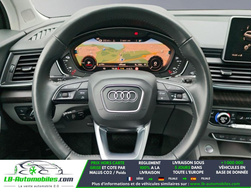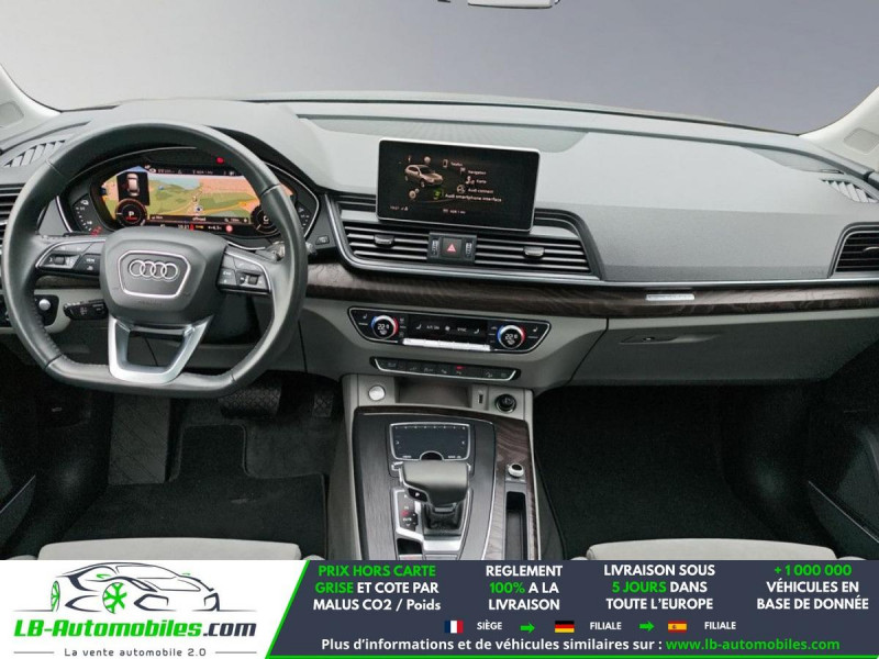Référence : 1188619 Vos Avantages chez LB-AUTOMOBILES.com / Prix affiché TTC Livré hors carte grise / Livraison sous 10 jours dans toute la France hors 31 / Pas d?avance de frais paiement du véhicule 100% à la livraison par virement. Audi Q5 Neuf remisée, Audi Q5 Occasion Toulouse Beaupuy 31850, Audi Q5 Véhicule sorti de réseau collaborateur, Audi Q5 import, Audi Q5 importateur, Audi Q5 Livraison possible dans toute la France sous 5 jours, Audi Q5, Audi Q5 Location Option Achat, Audi Q5 LLD, Audi Q5 Longue Durée, Audi Q5 TVA récupérable. Possibilité d'extension de garantie 12, 24,36 mois, Pour tout autres voitures import neufs ou occasions collaborateur fortement remisée, Mandataire Audi, Mandataire BMW, Mandataire Volkswagen, Mandataire Mercedes, Mandataire Peugeot Espagne, Mandataire Renault Espagne, Porsche import, Mandataire Citroën Espagne, Mandataire Seat Espagne, n'hésitez pas à nous contacter. « Sous réserve de vente préalable et erreur de saisie » Principaux équipements : - 4x4 - ABS - Accoudoir - Affichage tête haute - Android Auto - Antidémarrage - Apple CarPlay - Assistance au freinage d'urgence - Assistance de démarrage en côte - Assistant d'angle mort - Assistant feux de route - Attache remorque pivotante - Avertisseur de franchissement de ligne - Bluetooth - Capteur de lumière - Capteur de pluie - Carnet d'entretien - Cockpit numérique - Commande vocale - Contrôle de la pression des pneus - Diesel avec filtre à particules - Direction assistée - Éclairage adaptatif de virage - Éclairage d'ambiance - Éclairage route non éblouissant - Écran tactile - ESP - Fermeture centralisée - Feux de jour LED - Galerie de toit - Garantie - GPS - Grille de protection pour coffre - Hayon électrique - Isofix - Jantes alliage - Kit de réparation d'urgence des pneus - Kit mains libres - Ordinateur de bord - Pack sport - Phare antibrouillard - Phares LED - Port USB - Radio DAB - Réglage électrique des sièges - Réglage électrique des sièges avec fonction mémoire - Régulateur de vitesse adaptatif - Rétroviseur extérieur électrique - Rétroviseur intérieur anti-éblouissement automatique - Rétroviseurs extérieurs rabattables électriquement - Sièges chauffants - Sièges massants - Sièges sport - Suspension pneumatique - Suspension sport - Système antipatinage - Système d'alarme - Système d'appel d'urgence - Système d'avertissement de la distance - Système de limitation de la vitesse - Système de nettoyage des phares - Système de reconnaissance des panneaux de signalisation - Système de sonorisation - Système Stop & Start - Toit ouvrant - Toit panoramique - Toit pliant - Tuner/radio - Véhicule non-fumeur - Verrouillage centralisé sans clé - Vitres électriques - Vitres teintées - Volant en cuir - Volant multifonction
