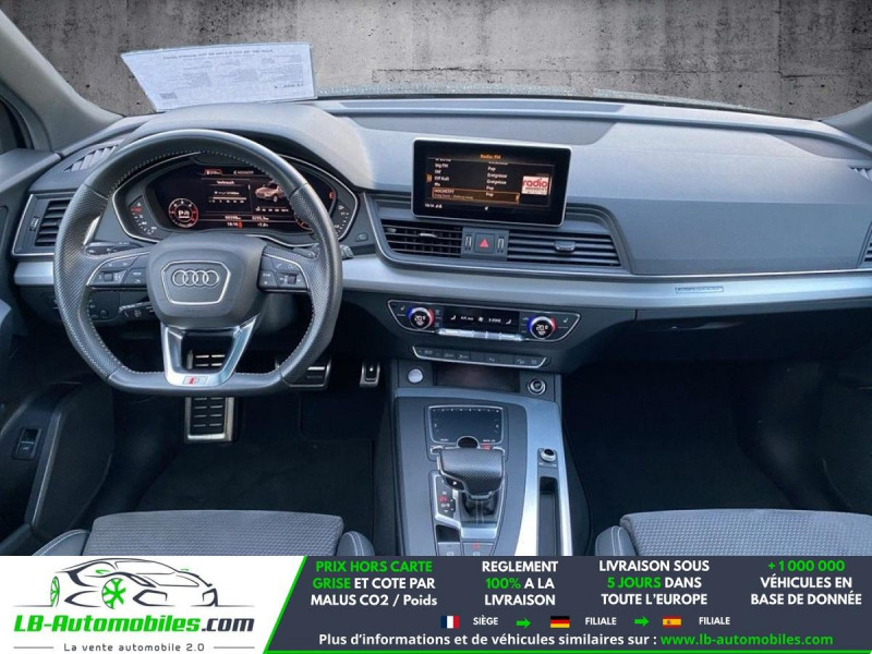 Référence : 1188596 Vos Avantages chez LB-AUTOMOBILES.com / Prix affiché TTC Livré hors carte grise / Livraison sous 10 jours dans toute la France hors 31 / Pas d?avance de frais paiement du véhicule 100% à la livraison par virement. Audi Q5 Neuf remisée, Audi Q5 Occasion Toulouse Beaupuy 31850, Audi Q5 Véhicule sorti de réseau collaborateur, Audi Q5 import, Audi Q5 importateur, Audi Q5 Livraison possible dans toute la France sous 5 jours, Audi Q5, Audi Q5 Location Option Achat, Audi Q5 LLD, Audi Q5 Longue Durée, Audi Q5 TVA récupérable. Possibilité d'extension de garantie 12, 24,36 mois, Pour tout autres voitures import neufs ou occasions collaborateur fortement remisée, Mandataire Audi, Mandataire BMW, Mandataire Volkswagen, Mandataire Mercedes, Mandataire Peugeot Espagne, Mandataire Renault Espagne, Porsche import, Mandataire Citroën Espagne, Mandataire Seat Espagne, n'hésitez pas à nous contacter. « Sous réserve de vente préalable et erreur de saisie » Principaux équipements : - 4x4 - ABS - Antidémarrage - Assistance au freinage d'urgence - Assistant feux de route - Avertisseur de franchissement de ligne - Bluetooth - Carnet d'entretien - Chargement par induction pour smartphones - Cockpit numérique - Contrôle de la pression des pneus - Diesel avec filtre à particules - Direction assistée - Éclairage d'ambiance - Écran tactile - ESP - Fermeture centralisée - Galerie de toit - Garantie - GPS - Grille de protection pour coffre - Hayon électrique - Isofix - Jantes alliage - Kit mains libres - Ordinateur de bord - Pack sport - Phares au xénon - Régulateur de vitesse adaptatif - Rétroviseur extérieur électrique - Rétroviseur intérieur anti-éblouissement automatique - Sièges chauffants - Sièges sport - Streaming musical intégré - Support lombaire - Suspension sport - Système antipatinage - Système d'avertissement de la distance - Système de reconnaissance des panneaux de signalisation - Système de sonorisation - Système Stop & Start - Toit panoramique - Tuner/radio - Véhicule non-fumeur - Vitres électriques - Vitres teintées - Volant en cuir - Volant multifonction