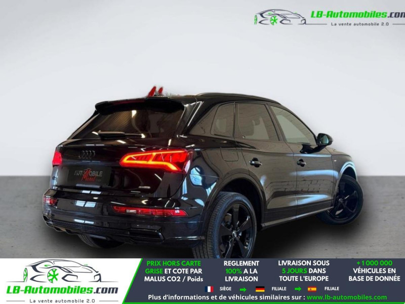 Référence : 1208607 Vos Avantages chez LB-AUTOMOBILES.com / Prix affiché TTC Livré hors carte grise / Livraison sous 10 jours dans toute la France hors 31 / Pas d?avance de frais paiement du véhicule 100% à la livraison par virement. Audi Q5 Neuf remisée, Audi Q5 Occasion Toulouse Beaupuy 31850, Audi Q5 Véhicule sorti de réseau collaborateur, Audi Q5 import, Audi Q5 importateur, Audi Q5 Livraison possible dans toute la France sous 5 jours, Audi Q5, Audi Q5 Location Option Achat, Audi Q5 LLD, Audi Q5 Longue Durée, Audi Q5 TVA récupérable. Possibilité d'extension de garantie 12, 24,36 mois, Pour tout autres voitures import neufs ou occasions collaborateur fortement remisée, Mandataire Audi, Mandataire BMW, Mandataire Volkswagen, Mandataire Mercedes, Mandataire Peugeot Espagne, Mandataire Renault Espagne, Porsche import, Mandataire Citroën Espagne, Mandataire Seat Espagne, n'hésitez pas à nous contacter. « Sous réserve de vente préalable et erreur de saisie » Principaux équipements : - 4x4 - ABS - Accoudoir - Android Auto - Antidémarrage - Apple CarPlay - Assistance au freinage d'urgence - Assistance de démarrage en côte - Assistant d'angle mort - Assistant feux de route - Bluetooth - Boîte de vitesses robotisée - Capteur de lumière - Capteur de pluie - Carnet d'entretien - Chargement par induction pour smartphones - Cockpit numérique - Commande vocale - Contrôle de la pression des pneus - Direction assistée - Éclairage adaptatif de virage - Éclairage d'ambiance - Éclairage route non éblouissant - Écran tactile - ESP - Fermeture centralisée - Feux de jour LED - Galerie de toit - Garantie - GPS - Hayon électrique - Isofix - Jantes alliage - Kit mains libres - Lecteur CD - Ordinateur de bord - Package hiver - Pack sport - Phare antibrouillard - Phares LED - Pneus été - Port USB - Réglage électrique des sièges - Réglage électrique des sièges avec fonction mémoire - Régulateur de vitesse - Rétroviseur extérieur électrique - Rétroviseur intérieur anti-éblouissement automatique - Rétroviseurs extérieurs rabattables électriquement - Roue de secours - Sièges chauffants - Sièges sport - Streaming musical intégré - Support lombaire - Suspension adaptative - Système antipatinage - Système d'alarme - Système d'appel d'urgence - Système de détection de la fatigue - Système de limitation de la vitesse - Système de reconnaissance des panneaux de signalisation - Système de sonorisation - Système Stop & Start - Toit ouvrant - Toit panoramique - Tuner/radio - Véhicule non-fumeur - Verrouillage centralisé sans clé - Vitres électriques - Vitres teintées - Volant chauffant - Volant en cuir - Volant multifonction - WLAN / point d'accès Wi-Fi
