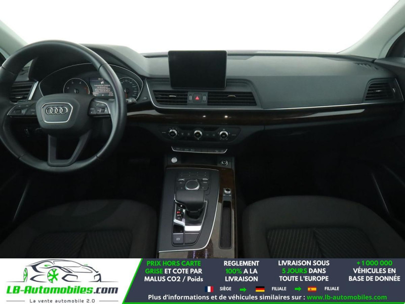 Référence : 1208603 Vos Avantages chez LB-AUTOMOBILES.com / Prix affiché TTC Livré hors carte grise / Livraison sous 10 jours dans toute la France hors 31 / Pas d?avance de frais paiement du véhicule 100% à la livraison par virement. Audi Q5 Neuf remisée, Audi Q5 Occasion Toulouse Beaupuy 31850, Audi Q5 Véhicule sorti de réseau collaborateur, Audi Q5 import, Audi Q5 importateur, Audi Q5 Livraison possible dans toute la France sous 5 jours, Audi Q5, Audi Q5 Location Option Achat, Audi Q5 LLD, Audi Q5 Longue Durée, Audi Q5 TVA récupérable. Possibilité d'extension de garantie 12, 24,36 mois, Pour tout autres voitures import neufs ou occasions collaborateur fortement remisée, Mandataire Audi, Mandataire BMW, Mandataire Volkswagen, Mandataire Mercedes, Mandataire Peugeot Espagne, Mandataire Renault Espagne, Porsche import, Mandataire Citroën Espagne, Mandataire Seat Espagne, n'hésitez pas à nous contacter. « Sous réserve de vente préalable et erreur de saisie » Principaux équipements : - ABS - Accoudoir - Antidémarrage - Assistance au freinage d'urgence - Bluetooth - Boîte de vitesses robotisée - Capteur de lumière - Capteur de pluie - Contrôle de la pression des pneus - Diesel avec filtre à particules - Direction assistée - ESP - Fermeture centralisée - Galerie de toit - Garantie - GPS - Isofix - Jantes alliage - Kit de réparation d'urgence des pneus - Kit mains libres - Lecteur CD - Ordinateur de bord - Phares LED - Pneus hiver - Rétroviseur extérieur électrique - Révision complète - Suspension adaptative - Système antipatinage - Système d'appel d'urgence - Système de limitation de la vitesse - Système de nettoyage des phares - Système Stop & Start - Traction avant - Tuner/radio - Véhicule non-fumeur - Verrouillage centralisé sans clé - Vitres électriques - Volant en cuir - Volant multifonction