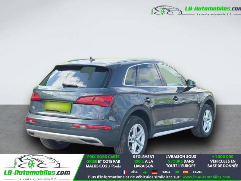 Référence : 1208601 Vos Avantages chez LB-AUTOMOBILES.com / Prix affiché TTC Livré hors carte grise / Livraison sous 10 jours dans toute la France hors 31 / Pas d?avance de frais paiement du véhicule 100% à la livraison par virement. Audi Q5 Neuf remisée, Audi Q5 Occasion Toulouse Beaupuy 31850, Audi Q5 Véhicule sorti de réseau collaborateur, Audi Q5 import, Audi Q5 importateur, Audi Q5 Livraison possible dans toute la France sous 5 jours, Audi Q5, Audi Q5 Location Option Achat, Audi Q5 LLD, Audi Q5 Longue Durée, Audi Q5 TVA récupérable. Possibilité d'extension de garantie 12, 24,36 mois, Pour tout autres voitures import neufs ou occasions collaborateur fortement remisée, Mandataire Audi, Mandataire BMW, Mandataire Volkswagen, Mandataire Mercedes, Mandataire Peugeot Espagne, Mandataire Renault Espagne, Porsche import, Mandataire Citroën Espagne, Mandataire Seat Espagne, n'hésitez pas à nous contacter. « Sous réserve de vente préalable et erreur de saisie » Principaux équipements : - 4x4 - ABS - Accoudoir - Antidémarrage - Assistance au freinage d'urgence - Assistance de démarrage en côte - Bluetooth - Capteur de lumière - Capteur de pluie - Contrôle de la pression des pneus - Diesel avec filtre à particules - Direction assistée - Écran tactile - ESP - Fermeture centralisée - Galerie de toit - GPS - Grille de protection pour coffre - Isofix - Jantes alliage - Kit de réparation d'urgence des pneus - Kit mains libres - Ordinateur de bord - Phares bi-xénon - Régulateur de vitesse - Rétroviseur extérieur électrique - Rétroviseurs extérieurs rabattables électriquement - Sièges chauffants - Système antipatinage - Système d'avertissement de la distance - Système de limitation de la vitesse - Système Stop & Start - Tuner/radio - Vitres électriques - Vitres teintées - Volant en cuir - Volant multifonction