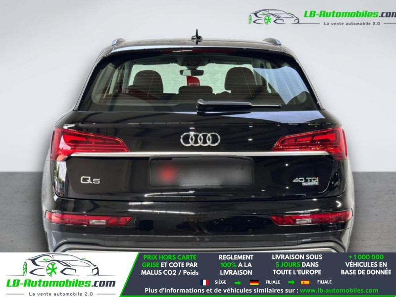 Référence : 1173694 Vos Avantages chez LB-AUTOMOBILES.com / Prix affiché TTC Livré hors carte grise / Livraison sous 10 jours dans toute la France hors 31 / Pas d?avance de frais paiement du véhicule 100% à la livraison par virement. Audi Q5 Neuf remisée, Audi Q5 Occasion Toulouse Beaupuy 31850, Audi Q5 Véhicule sorti de réseau collaborateur, Audi Q5 import, Audi Q5 importateur, Audi Q5 Livraison possible dans toute la France sous 5 jours, Audi Q5, Audi Q5 Location Option Achat, Audi Q5 LLD, Audi Q5 Longue Durée, Audi Q5 TVA récupérable. Possibilité d'extension de garantie 12, 24,36 mois, Pour tout autres voitures import neufs ou occasions collaborateur fortement remisée, Mandataire Audi, Mandataire BMW, Mandataire Volkswagen, Mandataire Mercedes, Mandataire Peugeot Espagne, Mandataire Renault Espagne, Porsche import, Mandataire Citroën Espagne, Mandataire Seat Espagne, n'hésitez pas à nous contacter. « Sous réserve de vente préalable et erreur de saisie » Principaux équipements : - 4x4 - ABS - Accoudoir - Antidémarrage - Assistance au freinage d'urgence - Assistance de démarrage en côte - Bluetooth - Boîte de vitesses robotisée - Capteur de lumière - Capteur de pluie - Carnet d'entretien - Contrôle de la pression des pneus - Diesel avec filtre à particules - Direction assistée - Écran tactile - ESP - Fermeture centralisée - Feux de jour LED - Galerie de toit - Garantie - Grille de protection pour coffre - Hayon électrique - Isofix - Jantes alliage - Kit de réparation d'urgence des pneus - Kit mains libres - Lecteur CD - Ordinateur de bord - Phares LED - Pneus été - Port USB - Radio DAB - Régulateur de vitesse - Rétroviseur extérieur électrique - Rétroviseur intérieur anti-éblouissement automatique - Système antipatinage - Système d'appel d'urgence - Système Stop & Start - Tuner/radio - Véhicule non-fumeur - Vitres électriques - Volant en cuir - Volant multifonction