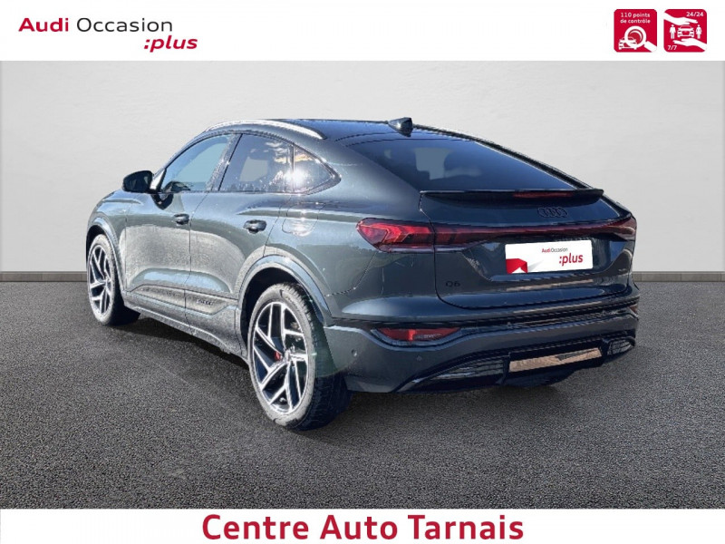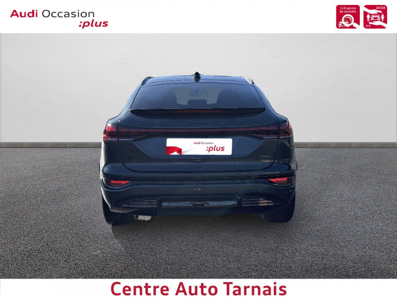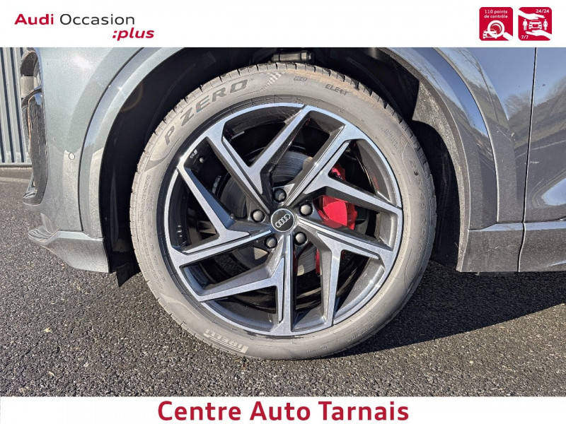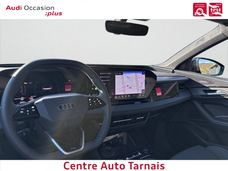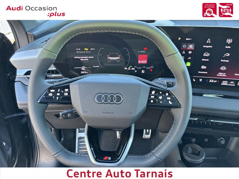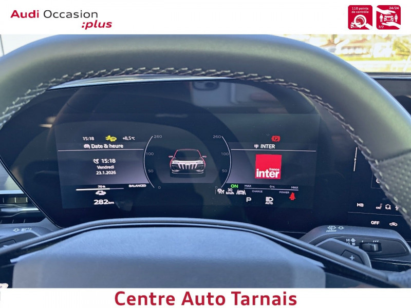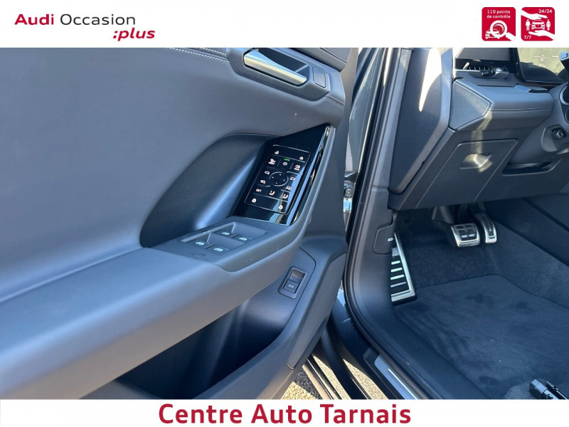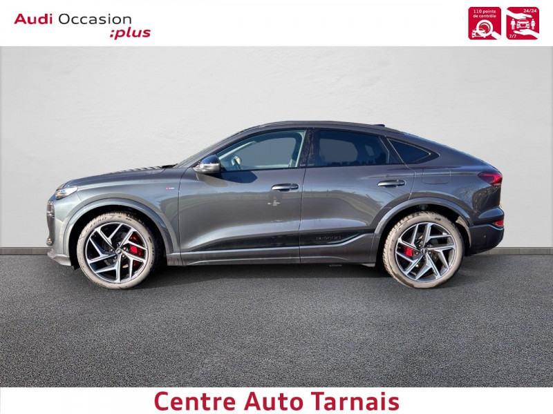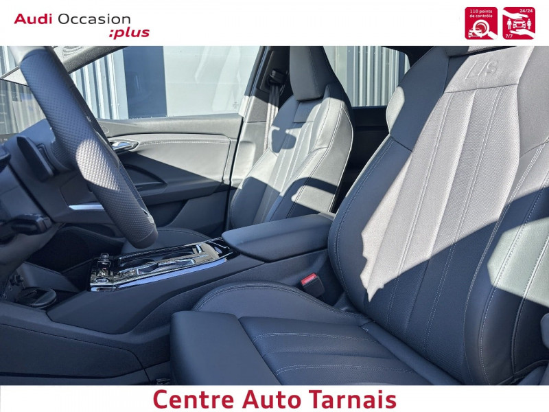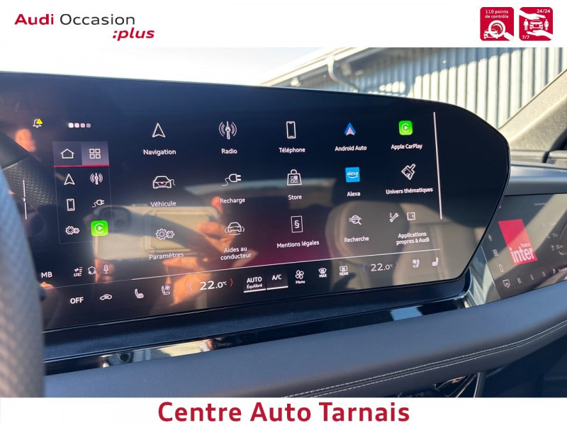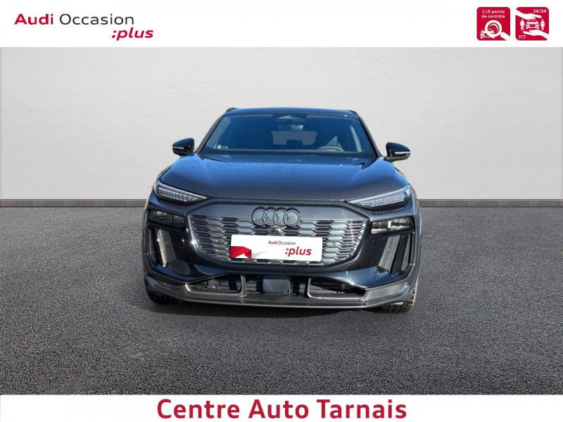 Jantes, style dynamique à 5 branches doubles, Gris Graphite, tournées brillantes 8,0J 9,0J x 19, pneus 235/60 255/55 R19 / Pack Rangement avec frunk (compartiment de rangement sous le capot AV) / Préparation pour crochet d'attelage / Volant sport multifonction en cuir à 3 branches, aplati en haut et en bas, avec palettes de récupération d'énergie / Airbags latéraux AV et système d'airbags de tête / Airbags à l'AV, airbag du passager AV désactivable / Alerte de sortie de voie / Audi phone box / Audi Smartphone interface avec accès au store d'applications / Audi Sound System / Chargeur de batterie embarqué Charge standard en courant alternatif (CA) jusqu'à 11 kW / Câble de recharge mode 3 type 2 3 32A / DC Boost 270kW / Extérieur S Line Peinture de contraste, Éléments S line, Pare-choc S line / Extérieur S Line Peinture de contraste, Éléments S line, Pare-choc S line / Hayon de coffre motorisé / Sièges i-Size et top tether Siège passager AV i-Size et les deux sièges de côtéà l'AR i-Size et top tether / Sécurité enfant électrique / Trousse de secours avec triangle de présignalisation et veste de signalisation / Vitrage Privacy : lunette AR, vitres de portières AR et vitres latérales AR surteintées