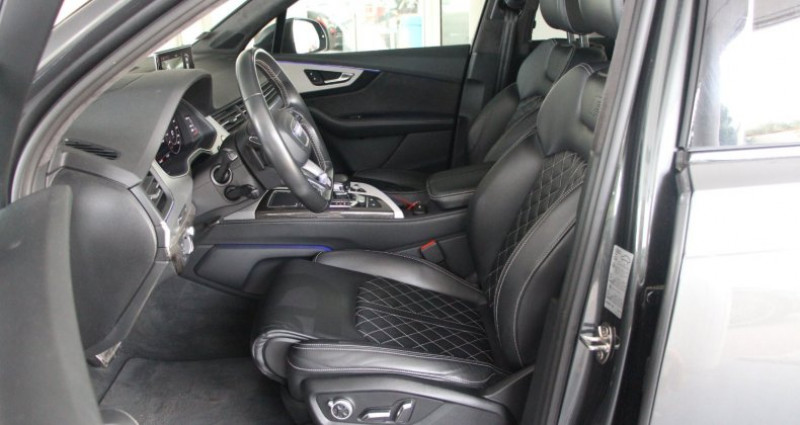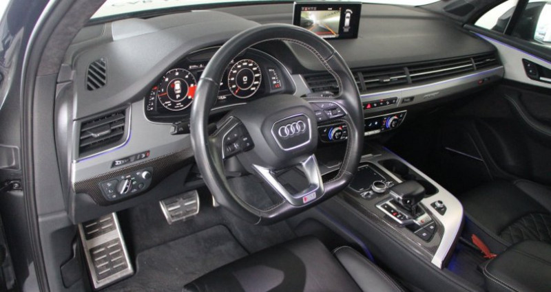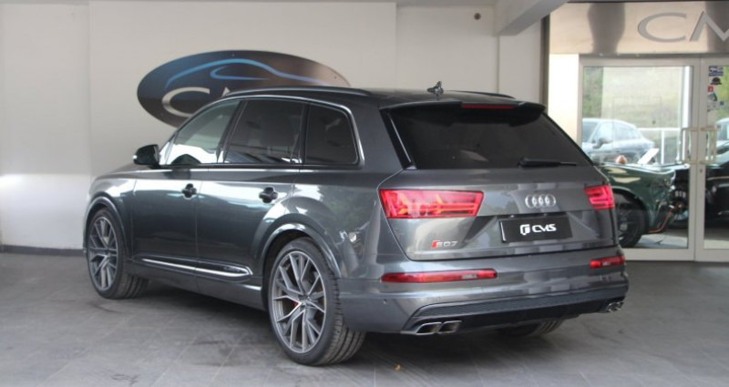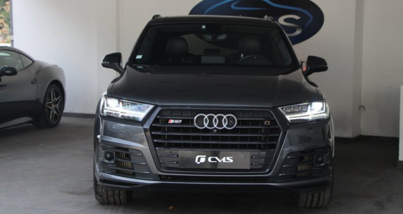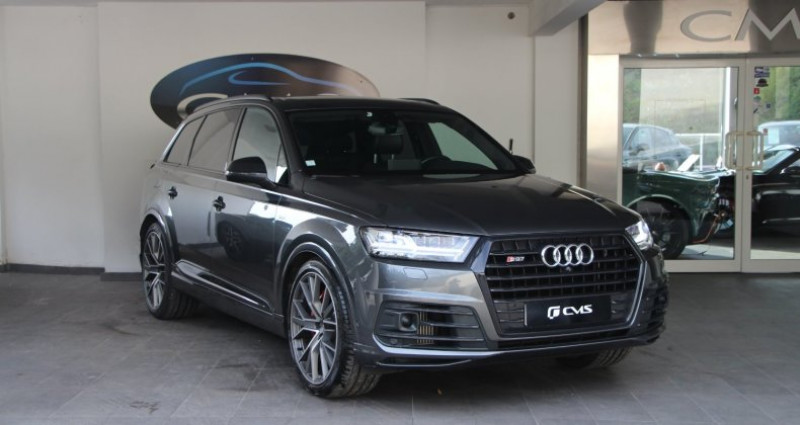 Audi SQ7 V8 4.0 TDI Clean Diesel 435 Tiptronic 8 Quattro 7pl tout-terrain, gris anthracite, 32 cv, 5 portes, couleur intérieure : noir, première mise en circulation le 17/10/2017, garantie 12 mois. ***** Suivi d'entretien exclusif Audi. Sort d'une grosse révision. 4 pneus neufs. Superbe configuration. Ecotaxe payée. Immatriculation française. ***** Voiture visible dans notre showroom sur rendez-vous. Tout type de financements possibles. Livraison dans toute la France. Liste d'options non-contractuelle. Suivez notre actualité sur instagram 7 places OPTIONS ET ÉQUIPEMENTS : Audio - Télécommunications : - Audi Phone Box - Bose sound system avec son 3D - radio numérique Conduite : - Direction integrale - Audi Drive Select - affichage tête haute - assistant de vision nocturne - châssis sport - limiteur de vitesse - sièges sport Extérieur : - Fermeture assistee des portieres - Hayon de coffre a ouverture/fermeture electrique - Pack Assistance Stationnement - Peinture nacree - caméra de recul - toit panoramique Garantie : - Extension de garantie 3 ans supplementaires (2 + 3) ou 100 000 km Intérieur : - Applications Aluminium : Aluminium brosse sono / Carbone Atlas - Chauffage/ventilation stationnaire - Commande douverture de porte de garage (HomeLink) - Double pare-soleil conducteur et passager - Sieges AV chauffants - Sieges AV/AR chauffants - accoudoir central - climatisation : automatique - intérieur : cuir - pack cuir - rideaux pare-soleil - vitres surteintées - volant cuir - volant sport Pack : - Appuie-tete pour les sieges AV reglables en profondeur - Boitiers de retroviseurs exterieurs en Noir brillant - Ciel de pavillon en Alcantara Noir - Echappement Sport - Etriers de freins laques Rouges - Ioniseur d'air a l'AV et a l'AR - Pack esthetique noir Audi exclusive - Projecteurs AV Audi Matrix LED - Cockpit numérique Sécurité : - Systeme de lecture des panneaux de signalisation par camera - airbags latéraux Autres équipements et informations : - Pack Assistance Route - Sellerie en cuir Valcona avec couture contrastee avec estampage S sur les dossiers de sieges AV - Classe Crit'air : 2 - Puissance kilowatt : 320 kw - consommation extra urbaine : 6,50 litres - consommation mixte : 7,20 litres - consommation urbaine : 8,40 litres - dimension des jantes : 22 pouces - puissance réelle : 435 ch - émission CO2 : 190 g/km