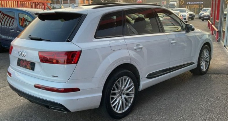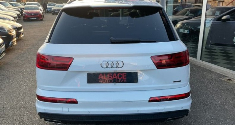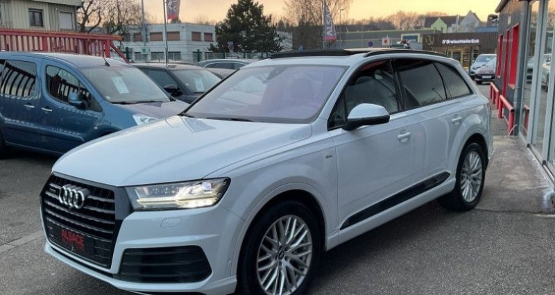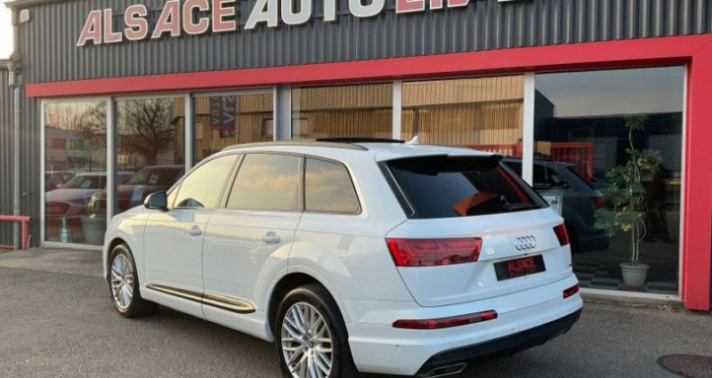 Audi Q7 3.0 V6 TDI 272CH CLEAN DIESEL S LINE QUATTRO TIPTRONIC 7 PLACES, (4×4 Tout terrain), BLANC, 17cv, 5 portes, mise en circulation le 25-04-2018, garantie 6 mois (6 MOIS). 7 places, couleur intérieur : NOIR, longueur : 5,05 mètres, boîte de vitesse : automatique OPTIONS ET EQUIPEMENTS : Audio - Télécommunications - 10 Haut parleurs - Appel d'Assistance Localisé - Appel d'Urgence Localisé - Commandes du système audio au volant - Commandes vocales - Fonction MP3 - GPS Cartographique - Kit mains-libres Bluetooth - Lecteur CD - Lecteur DVD - Lecteur carte SD - Navigateur Internet - Prise USB - Prise auxiliaire de connexion audio - Radio - Services connectés - Stations de webradio - Système de localisation par satellite - TMC Conduite - Aide au démarrage en côte - Arrêt et redémarrage auto. du moteur - Blocage électronique du différentiel - Capteur de luminosité - Capteur de pluie - Différentiel autobloquant - Démarrage sans clé - Limiteur de vitesse - Palettes changement vitesses au volant - Régulateur de vitesse - Suspension adaptative - Suspensions Sport - Système de récupération énergie freinage Extérieur - Barres de toit - Becquet arrière - Coffre assisté électriquement - Feux arrière à LED - Feux de jour à LED - Filtre à particules - Jantes Alu - Phares bi-xénon - Phares de route adaptatifs - Phares directionnels - Radar de stationnement AR - Radar de stationnement AV - Rétroviseurs dégivrants - Rétroviseurs rabattables électriquement - Rétroviseurs électriques Intérieur - 2ème rangée de sièges modulable 35/30/35 - Accoudoir arrière - Accoudoir central AV avec rangement - Bacs de portes arrière - Bacs de portes avant - Banquette AR 2 places 3ème rangée - Banquette AR rabattable - Boite à gants fermée - Clim automatique bi-zones - Compte tours - Eclairage d'ambiance - Ecran multifonction couleur - Filtre à Pollen - Fixation Isofix siège passager avant - Fixations Isofix aux places arrières - Inserts de tableau de bord métal - Kit Fumeur - Lampe de coffre - Lunette AR dégivrante - Miroir de courtoisie conducteur éclairé - Miroir de courtoisie passager éclairé - Ordinateur de bord - Ouverture des vitres séquentielle - Pare-brise thermique - Pommeau de levier vitesse en cuir - Rétroviseur intérieur électrochrome - Siège cond. avec réglage lombaire électr - Siège conducteur réglable en hauteur - Siège conducteur électrique - Siège passager avec réglage lombaire - Siège passager réglable en hauteur - Siège passager à réglages électriques - Sièges arrière coulissants - Sièges arrière escamotables (3 rang) - Sièges avant sport - Tablette cache bagages - Température extérieure - Verrouillage centralisé des portes - Verrouillage centralisé à distance - Vitres arrière électriques - Vitres avant électriques - Volant cuir - Volant multifonction - Volant réglable en profondeur et hauteur - Volant sport Sécurité - ABS - Aide au freinage d'urgence - Airbag conducteur - Airbag passager déconnectable - Airbags latéraux AV et AR - Airbags rideaux - Antidémarrage électronique - Ceintures avant ajustables en hauteur - Détecteur de sous-gonflage - EBD - ESP - Freinage automatique d'urgence - Reconnaissance panneaux de signalisation Autres équipements et informations : - Cuir/Alcantara Noir + spq argent Kilométrage garanti. **TOUS NOS VEHICULES FONT L'OBJET D'UNE VERIFICATION DE SINISTRALITE ** **VEHICULES VISIBLES UNIQUEMENT SUR RENDEZ-VOUS ** **REPRISE / FINANCEMENT ** **EXTENSIONS DE GARANTIE POSSIBLES JUSQU'À 48 MOIS ** **PRIX AFFICHÉ HORS FRAIS D'IMMATRICULATION ET DE MISE EN CIRCULATION (489 euros) ** **ANNONCE SOUS RÉSERVE D'ERREUR DE RÉDACTION ET D'OPTIONS** Référence annonce : 6083