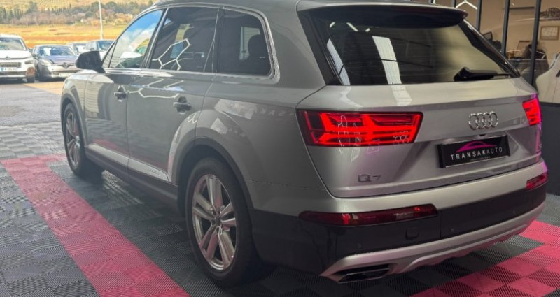Cylindrée : 2967 cm3 EQUIPEMENTS Leader dans le courtage automobile, nous sommes présent en France avec plus de 200 agences & showrooms. TRANSAKAUTO MANOSQUE VOUS PROPOSE À LA VENTE CETTE AUDI Q7 3.0 V6 TDI 272 cv Tiptronic 8 Quattro : Garantie constructeur jusqu?à 2 ans disponible. Livraison disponible sur le territoire Européen & Corse. PRIX HORS FRAIS D IMMATRICULATION & DE COURTAGE. TOUS LES VÉHICULES NE SONT PAS DANS LE SHOWROOM. OPTIONS : - Boite de vitesses automatique Tiptronic 8 INTÉRIEUR : - 7 Places - Sièges arrière rabattable - Sièges en cuir - Sièges avant électriques - Volant cuir avec palettes au volant - Virtual cockpit - Toit ouvrant panoramique - Hayon éléctrique - Climatisation automatique quadri-zone - Éclairage d'ambiance - Bluetooth - Accoudoir centrale AV & AR - Isofix EXTÉRIEUR : - Rétroviseurs rabattable électriquement & dégivrant - Jantes 20 AIDE À LA CONDUITE : - Feux à allumage automatique - Régulateur de vitesse - Maintiens de voie - Essuie glace automatique - Radars 360° - Caméra de recul - Suspensions pneumatiques - Drive select - Front assist - Line assist - Auto Hold ENTRETIENS : - Vidange & filtres : 02/2026 PIÈCES D'USURE : - Pneus AV : OK - Pneus AR : OK - Disques & plaquettes : OK PRESTATIONS & SERVICES : - Achat - Vente - Reprise - Carte grise - Financement - Garantie mécanique - Sécurisation du paiement - Conseil en transaction automobile - Nettoyage professionnel avant livraison Le kilométrage peut être évolutif. Des erreurs peuvent se glisser dans nos annonces, contactez-nous pour plus d informations sur les caractéristiques du véhicule. Tous les véhicules ne sont pas dans le showroom, je vous recommande de prendre rendez-vous avant de vous déplacer. Pour toutes questions ou reportages photos supplémentaires, veuillez nous contacter. PASSION - RIGUEUR - PARTAGE - INNOVATION TRANSAKAUTO MANOSQUE 96 ROUTE DE MARSEILLE, 04100 MANOSQUE BONNE ROUTE AUTRES EQUIPEMENTS - Puissance reelle : 272 - Nb rapports : 8 - Nb places : 7 - Consommation extraurbaine : 5.60 - Consommation mixte : 5.90 - Consommation urbaine : 6.40