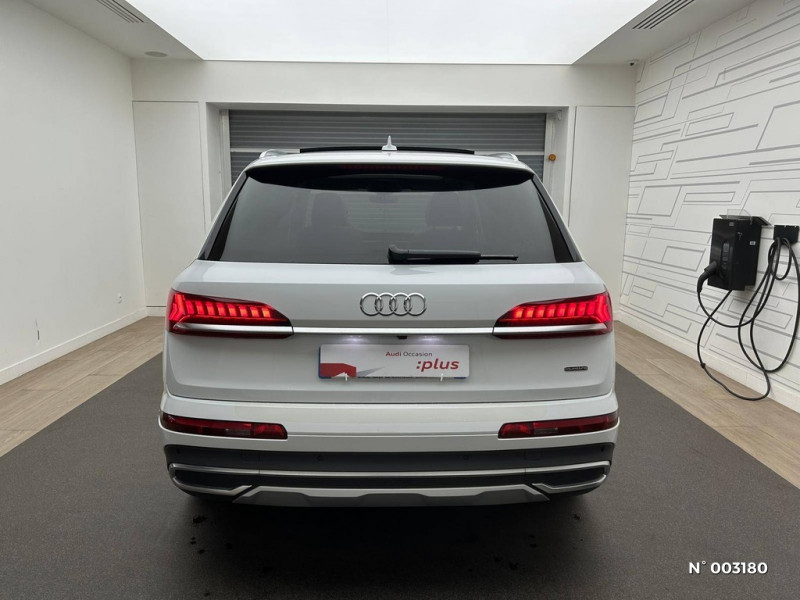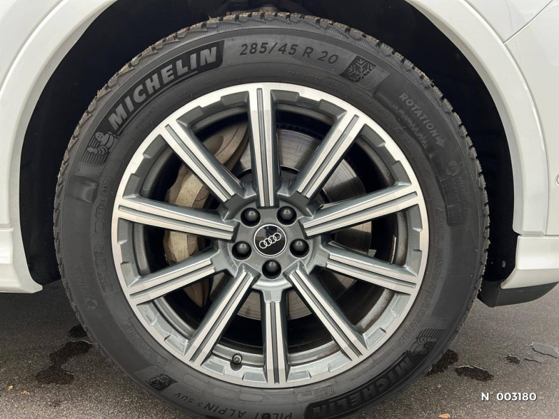 Câble de charge pour chageur ''e-tron compact'' 32A monophasé (bleu) renforcé et non coudé (version droite) / Audi pre sense front / Bang & Olufsen Premium Sound System avec son en 3D / Audi smartphone interface / Audi Virtual Cockpit / Rétroviseurs extérieurs réglables, dégivrants et rabattables électriquement, jour/nuit automatiques des deux côtés, incluant fonction rabat automatique pour le rétroviseur extérieur côté passager AV et clignotants à LED intégrés / Pare-soleil avec miroir de courtoisie éclairé côté conducteur et passager AV / Peinture intégrale unie / Sièges à Contours Individuels / Rétroviseur intérieur jour/nuit automatique sans encadrement (Frameless) / Régulateur de vitesse incluant limiteur de vitesse / Sièges AV réglables électriquement avec fonction mémoire pour les sièges conducteur et passager / Sellerie combinée Cuir Valcona/Cuir Cricket perforé / Adaptive Air Suspension / Affichage de perte de pression des pneus / Appui lombaire à 4 axes pour les sièges AV, réglages électriques, horizontal et vertical / Airbags latéraux AV avec système d'airbags de tête / Assistant de feux de route / Projecteurs Audi Matrix LED / Rampes de pavillon en aluminium anodisé / Réception radio numérique réception de stations radio numériques DAB/DAB+/DMB audio, affichage d'informations associées aux programmes / Filet de séparation amovible / Fixations pour sièges enfant ISOFIX et avec systèmes "Top Tether" pour la banquette AR / Fixation pour sièges enfants ISOFIX pour le siège passager AV avec commande de sécurité enfant électrique sur les portières AR / Hayon de coffre à ouverture automatique / Fonction mémoire pour rétroviseurs extérieurs / Jantes aluminium 20" design 5 branches style turbine, 9J x 20" avec pneus 285/45 R20 / Interface Bluetooth / Moulures de seuil à l'AR/AV avec insert en aluminium, éclairées, sans inscription / Kit de réparation de pneus / Outillage de bord / Pare-brise en verre de sécurité feuilleté athermique / Navigation MMI avec MMI touch / Système de localisation antivol Audi connect / Couvre-bagages électrique + seuil de chargement du coffre en inox / Vitres AR surteintées (Vitrage Privacy) / Vitrage acoustique pour les vitres latérales / Volant Sport en cuir chauffant / design 3 branches / Volant réglable électriquement / Assistant de changement de direction / Assistant de conduite adaptatif incluant assistant de conduite en embouteillage / Vitres athermiques sur les côtés et lunette AR dégivrante, avec minuterie / Assistant de maintien de la vitesse adaptatif / Ventilation des sièges AV / Baguette des feux AR en chrome / Alerte de trafic transversal AR / Baguette sur les appuis de vitre style aluminium anodisé / Eclairage de la console centrale AV / Réglage séparé des teintes lumineuses de contours et d'ambiance / 6 profils de couleur prédéfinis + 1 profil de couleur supplementaire interactif et personnalisable / Eclairage de contour de la console centrale AV / Eclairage de contour avec inscription quattro éclairée ou anneaux Audi éclairés (sur traction AV) sur le tableau de bord côté passager AV / Assistant de croisement / Avertissement de franchissement de ligne incluant assistant de freinage d'urgence / Revêtement noir brillant sur les montants de pavillon centraux / Pack Éclairage intérieur à LED / Eclairage de contour des portières AV/AR / Assistant d'efficience prédictive / Avertisseur de sortie / Audi pre sense rear / Assistant d'évitement d'urgence / Assistant de changement de voie / Vide-poches de portières AV/AR éclairées / Badges extérieurs avec identification du modèle, avec inscription de la puissance/technologie / Banquette AR "plus" les sièges de la 2ème rangée se règlent séparément et manuellement en longueur et en inclinaison de dossier selon un rapport 35 / 30 / 35 / Câble de charge pour station publique en courant alternatif pour charge en Mode 3 / Type 2. 7,4kW AC / Caméra multifonction pour systèmes d'assistance à la conduite / Câble de charge pour chargeur ''e-tron compact'', 8 A, type domestique / Ciel de pavillon en Tissu Argent Lunaire / Châssis de série / Clé confort avec déverrouillage du coffre commandé par capteur y compris cache-bagages électrique (sans safelock) / Clé Audi connect / Cléà fréquence radio (sans safelock) / Commande de désactivation de l'airbag passager AV / Ecrous de roues antivol avec indicateur de desserrage d'écrous / Essuie-glace adaptatifs avec buses de lavage intégrées / Système de motorisation hybride rechargeable PHEV / Eléments supérieurs et inférieurs de l'habitacle en cuir / Trousse de secours, triangle de présignalisation et veste de sécurité / Touches de commande façon verre en noir avec réponse haptique incluant style aluminium étendu / Appel d'urgence avec service Audi connect + commande de véhicule / Appuie-tête variables pour les sièges AV / Audi drive select / Applications décoratives en bois de frêne Gris / Audi Parking System Plus / Audi phone box / Audi connect avec carte SIM intégrée (e-SIM) et licence d'utilisation pour 3 ans / Audi hold assist: maintien le véhicule à l'arrêt en côte comme en descente / Audi pre sense basic initie, dans les limites du système, des mesures de protection préventive dans des situations critiques comme des freinages d'urgence ou des situations à haut risque. Ces informations sont, entre autres: resserrement des ceintures de sécuritéà l'avant et, si nécessaire, également des ceintures de sécurité des sièges arrière extérieurs, optimisation de la position d'assise, initiation du processus de fermeture des vitres et du toit panoramique en verre (si commandé)... / Boîtiers de rétroviseurs extérieurs laqués dans la teinte carrosserie