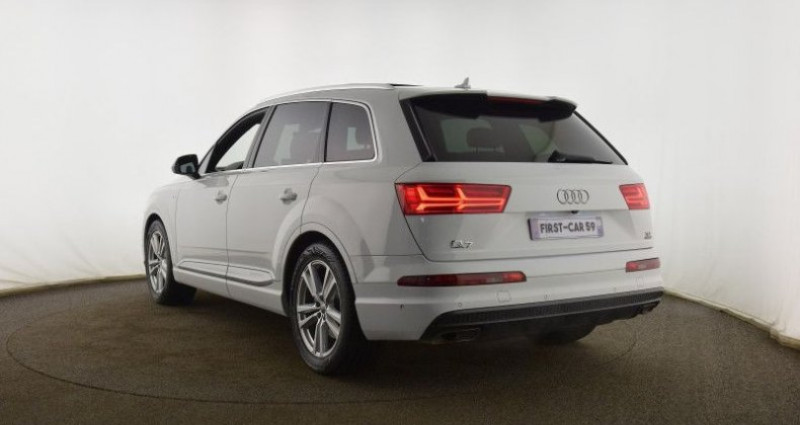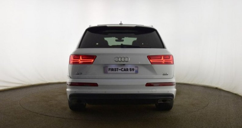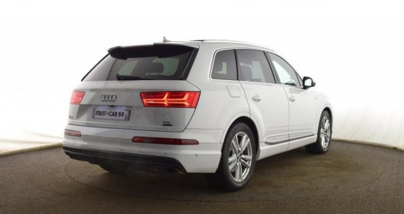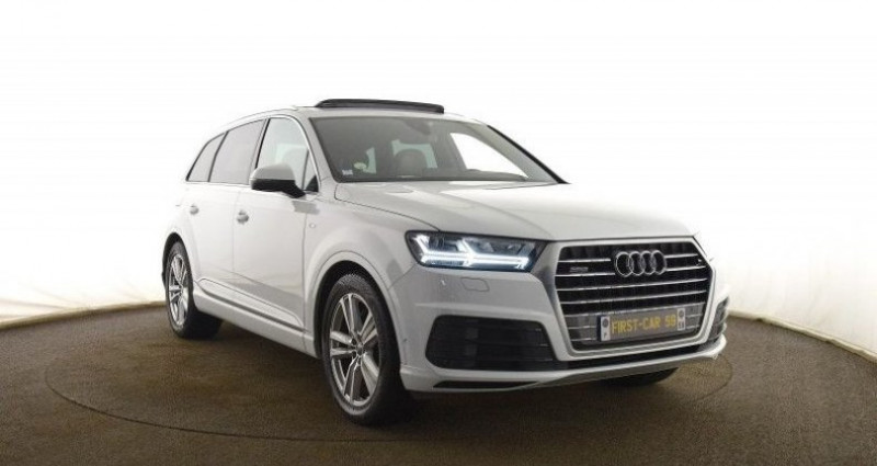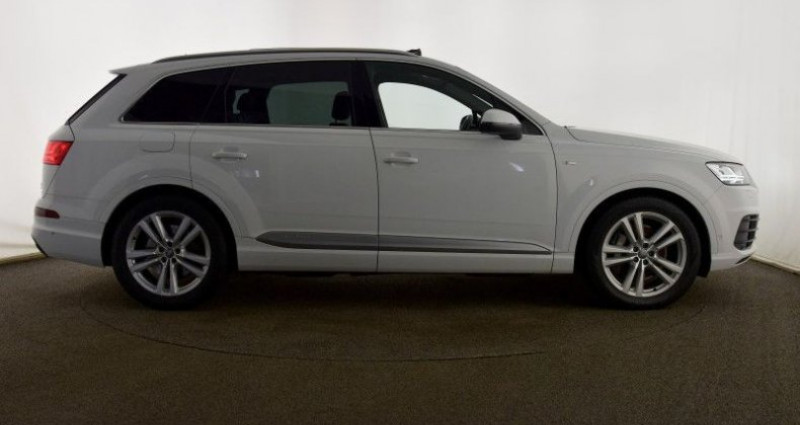 Audi Q7 3.0 V6 TDI 272CH CLEAN DIESEL S LINE QUATTRO TIPTRONIC 7 PLACES, (4×4 Tout terrain), BLANC, 17cv, 5 portes, mise en circulation le 22-06-2015. 7 places, couleur intérieur : GRIS, longueur : 5,05 mètres, boîte de vitesse : automatique OPTIONS ET EQUIPEMENTS : Audio - Télécommunications - 10 Haut parleurs - Appel d'Assistance Localisé - Appel d'Urgence Localisé - Commandes du système audio au volant - Commandes vocales - Fonction MP3 - GPS Cartographique - Kit mains-libres Bluetooth - Lecteur CD - Lecteur carte SD - Navigateur Internet - Prise USB - Prise auxiliaire de connexion audio - Radio - Services connectés - Stations de webradio - Système de localisation par satellite - TMC Conduite - Adaptive air suspension - Aide au démarrage en côte - Arrêt et redémarrage auto. du moteur - Blocage électronique du différentiel - Capteur de luminosité - Capteur de pluie - Différentiel autobloquant - Démarrage sans clé - Limiteur de vitesse - Palettes changement vitesses au volant - Régulateur de vitesse - Suspension adaptative - Suspensions Sport - Système de récupération énergie freinage Extérieur - Barres de toit - Becquet arrière - Caméra de recul - Coffre assisté électriquement - Feux arrière à LED - Feux de jour à LED - Filtre à particules - Jantes Alu - Pack extérieur S line - Park assist - Peinture intégrale unie - Phares bi-xénon - Phares de route adaptatifs - Phares directionnels - Radar de stationnement AR - Radar de stationnement AV - Rétroviseurs dégivrants - Rétroviseurs rabattables électriquement - Rétroviseurs électriques Intérieur - 2ème rangée de sièges modulable 35/30/35 - Accoudoir arrière - Accoudoir central AV avec rangement - Audi virtual cokpit - Bacs de portes arrière - Bacs de portes avant - Banquette AR 2 places 3ème rangée - Banquette AR rabattable - Boite à gants fermée - Clim automatique bi-zones - Climatisation auto 4 zones - Compte tours - Eclairage d'ambiance - Ecran multifonction couleur - Filtre à Pollen - Fixation Isofix siège passager avant - Fixations Isofix aux places arrières - Inserts de tableau de bord métal - Kit Fumeur - Lampe de coffre - Lunette AR dégivrante - Miroir de courtoisie conducteur éclairé - Miroir de courtoisie passager éclairé - Ordinateur de bord - Ouverture des vitres séquentielle - Pare-brise thermique - Pommeau de levier vitesse en cuir - Rétroviseur intérieur électrochrome - Siège cond. avec réglage lombaire électr - Siège conducteur réglable en hauteur - Siège conducteur électrique - Siège passager avec réglage lombaire - Siège passager réglable en hauteur - Siège passager à réglages électriques - Sièges arrière coulissants - Sièges arrière escamotables (3 rang) - Sièges avant sport - Tablette cache bagages - Température extérieure - Verrouillage centralisé des portes - Verrouillage centralisé à distance - Vitres arrière électriques - Vitres avant électriques - Volant cuir - Volant multifonction - Volant réglable en profondeur et hauteur - Volant sport Sécurité - ABS - Aide au freinage d'urgence - Airbag conducteur - Airbag passager déconnectable - Airbags latéraux AR - Airbags latéraux AV et AR - Airbags rideaux - Antidémarrage électronique - Ceintures avant ajustables en hauteur - Détecteur de sous-gonflage - EBD - ESP - Freinage automatique d'urgence - Reconnaissance panneaux de signalisation Autres équipements et informations : - Alarme antivol avec keyless go - Alarme+clé confort - Cuir/Alcantara Noir + spq argent Kilométrage garanti. -- Vente par professionnel -- EXTENSION Garantie possible -- Reprise possible de votre ancien véhicule -- Démarches carte grise -- Visible sur rendez-vous UNIQUEMENT 2 CLEFS 7 PLACES ATTELAGE AUTO AUDI Référence annonce : 116