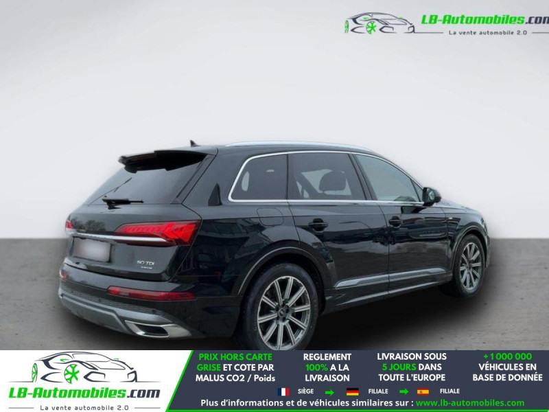 Référence : 1156129 Vos Avantages chez LB-AUTOMOBILES.com / Prix affiché TTC Livré hors carte grise / Livraison sous 10 jours dans toute la France hors 31 / Pas d?avance de frais paiement du véhicule 100% à la livraison par virement. Audi Q7 Neuf remisée, Audi Q7 Occasion Toulouse Beaupuy 31850, Audi Q7 Véhicule sorti de réseau collaborateur, Audi Q7 import, Audi Q7 importateur, Audi Q7 Livraison possible dans toute la France sous 5 jours, Audi Q7, Audi Q7 Location Option Achat, Audi Q7 LLD, Audi Q7 Longue Durée, Audi Q7 TVA récupérable. Possibilité d'extension de garantie 12, 24,36 mois, Pour tout autres voitures import neufs ou occasions collaborateur fortement remisée, Mandataire Audi, Mandataire BMW, Mandataire Volkswagen, Mandataire Mercedes, Mandataire Peugeot Espagne, Mandataire Renault Espagne, Porsche import, Mandataire Citroën Espagne, Mandataire Seat Espagne, n'hésitez pas à nous contacter. « Sous réserve de vente préalable et erreur de saisie » Principaux équipements : - 4x4 - ABS - Accoudoir - Affichage tête haute - Antidémarrage - Assistance au freinage d'urgence - Assistance de démarrage en côte - Assistant d'angle mort - Assistant de sortie de stationnement - Assistant feux de route - Attache remorque pivotante - Avertisseur de franchissement de ligne - Bluetooth - Capteur de lumière - Capteur de pluie - Carnet d'entretien - Chargement par induction pour smartphones - Cockpit numérique - Commande vocale - Contrôle de la pression des pneus - Diesel avec filtre à particules - Direction assistée - Éclairage adaptatif - Éclairage d'ambiance - Éclairage route non éblouissant - Écran tactile - ESP - Fermeture centralisée - Feux de jour LED - Galerie de toit - Garantie - GPS - Grille de protection pour coffre - Hayon électrique - Isofix - Jantes alliage - Kit mains libres - Lecteur CD - Ordinateur de bord - Pack sport - Phares LED - Pneus été - Port USB - Radio DAB - Réglage électrique des sièges - Réglage électrique des sièges avec fonction mémoire - Régulateur de vitesse adaptatif - Rétroviseur extérieur électrique - Rétroviseur intérieur anti-éblouissement automatique - Rétroviseurs extérieurs rabattables électriquement - Sièges arrières chauffants électriques - Sièges chauffants - Sièges sport - Support lombaire - Suspension pneumatique - Suspension sport - Système antipatinage - Système d'alarme - Système d'appel d'urgence - Système d'avertissement de la distance - Système de limitation de la vitesse - Système de nettoyage des phares - Système de reconnaissance des panneaux de signalisation - Système de sonorisation - Système Stop & Start - Tuner/radio - Véhicule non-fumeur - Ventilation du siège - Verrouillage centralisé sans clé - Vitres électriques - Vitres teintées - Volant chauffant - Volant en cuir - Volant multifonction