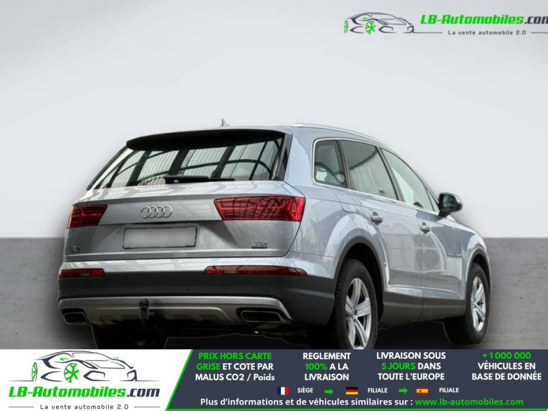 Référence : 1182401 Vos Avantages chez LB-AUTOMOBILES.com / Prix affiché TTC Livré hors carte grise / Livraison sous 10 jours dans toute la France hors 31 / Pas d?avance de frais paiement du véhicule 100% à la livraison par virement. Audi Q7 Neuf remisée, Audi Q7 Occasion Toulouse Beaupuy 31850, Audi Q7 Véhicule sorti de réseau collaborateur, Audi Q7 import, Audi Q7 importateur, Audi Q7 Livraison possible dans toute la France sous 5 jours, Audi Q7, Audi Q7 Location Option Achat, Audi Q7 LLD, Audi Q7 Longue Durée, Audi Q7 TVA récupérable. Possibilité d'extension de garantie 12, 24,36 mois, Pour tout autres voitures import neufs ou occasions collaborateur fortement remisée, Mandataire Audi, Mandataire BMW, Mandataire Volkswagen, Mandataire Mercedes, Mandataire Peugeot Espagne, Mandataire Renault Espagne, Porsche import, Mandataire Citroën Espagne, Mandataire Seat Espagne, n'hésitez pas à nous contacter. « Sous réserve de vente préalable et erreur de saisie » Principaux équipements : - 4x4 - ABS - Accoudoir - Antidémarrage - Assistance au freinage d'urgence - Assistance de démarrage en côte - Assistant de man?uvre avec remorque - Assistant feux de route - Attache remorque pivotante - Bluetooth - Boîte de vitesses robotisée - Capteur de lumière - Capteur de pluie - Carnet d'entretien - Chauffage auxiliaire - Commande vocale - Contrôle de la pression des pneus - Diesel avec filtre à particules - Direction assistée - Éclairage d'ambiance - ESP - Fermeture centralisée - Feux de jour LED - Galerie de toit - Garantie - Grille de protection pour coffre - Hayon électrique - Isofix - Jantes alliage - Kit de réparation d'urgence des pneus - Kit mains libres - Lecteur CD - Ordinateur de bord - Package hiver - Phare antibrouillard - Phares bi-xénon - Pneus hiver - Pneus toutes saisons - Point Isofix siège passager - Port USB - Réglage électrique des sièges - Régulateur de vitesse - Rétroviseur extérieur électrique - Rétroviseur intérieur anti-éblouissement automatique - Rétroviseurs extérieurs rabattables électriquement - Sièges chauffants - Streaming musical intégré - Support lombaire - Système antipatinage - Système d'appel d'urgence - Système d'avertissement de la distance - Système de détection de la fatigue - Système de limitation de la vitesse - Système de sonorisation - Système Stop & Start - Tuner/radio - Véhicule non-fumeur - Vitres électriques - Volant en cuir - Volant multifonction