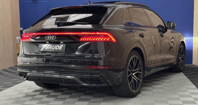AUDI Q8 50 TDI 286 Tiptronic 8 Quattro - Véhicule visible uniquement sur rendez-vous, du lundi au vendredi de 9h30 à 18h00 et le samedi de 10h00 à 16h00 - Ce véhicule bénéficie d'une garantie de 6 mois. Possibilité d'extension jusqu'à 48 mois avec notre partenaire leader de la garantie mécanique OPTEVEN (à partir de 35 euros / mois). Prix hors frais de formalités de 390 euros et carte grise en fonction du département. Reprise possible de votre ancien véhicule. - Contactez NICOLAS de l'agence NAUDE AUTOMOBILES LOZANNE pour ce véhicule. - ======= OPTIONS ======= Audi phone box Adaptive Air Suspension Sport Assistant d'évitement collision Audi smartphone interface Avertissement de franchissement de ligne incluant assistant de freinage d?urgence Bang & Olufsen Premium Sound System avec son en 3D Banquette AR plus Barres de toit noires Calandre en Noir Titane avec cadre en chrome Caméras périphériques 360° Chauffage ventilation stationnaire Ciel de pavillon en Tissu Noir Clé confort avec déverrouillage du coffre commandé par capteur Climatisation automatique Confort 4 zones Direction intégrale dynamique Jantes en alu coulé Audi Sport 22 pouces Lave-phares haute pression Ouverture et fermeture assistées des portières (Soft Close) Pare-brise athermique dégivrant acoustique Peinture métallisée Noir Orca Projecteurs HD Matrix LED Régulateur de vitesse adaptatif Sièges AV chauffants Sièges AV réglables électriquement avec fonction mémoire pour les sièges conducteur et passager Système avancé de contrôle de pression des pneus Système de lecture des panneaux de signalisation par caméra Toit panoramique en verre Touches de commande façon verre en noir avec réponse haptique Vitrage acoustique pour les vitres latérales, double vitrage Vitres AR surteintées (Vitrage Privacy) Volant réglable électriquement ======= EQUIPEMENTS DE SERIE ======= ABS (Système anti blocage des roues) Accoudoir arrière Accoudoir avant Aide démarrage en côte Aide freinage d'urgence Allumage automatique des feux Amortisseurs pilotés Android Auto Apple CarPlay Anti-démarrage Audi drive select Audi pre sense front Audi Virtual Cockpit Auto-radio commandé au volant Avertisseur franchissement de ligne Banquette arrière rabattable Bluetooth Boîte automatique Camera 360° Clé main libre Coffre électrique Contrôle pression des pneus Détecteur de fatigue Détecteur de pluie Direction assistée Eclairage d'ambiance ESP (Système de correction de la trajectoire) Fermeture centralisée Feux arrières LED Fixation Isofix Frein parking électrique Front Assist (Système de freinage automatique d'urgence) GPS Lane Assist (Maintien dans la voie) Limiteur de vitesse Ordinateur de bord Palettes au volant Phares de jour Phares MATRIX LED Phares Feux antibrouillard avant et arrière Prise(s) AUX USB Régulateur de vitesse adaptatif (ACC) Rétroviseur(s) Electrochrome Rétroviseurs électriques Rétroviseurs dégivrants Rétroviseurs rabattables Radars de stationnement avant et arrière Reconnaissance des panneaux Reconnaissance vocale Sièges électriques à mémoire Sièges avant chauffants Suspension pneumatique Système de prévention des collisions Virtual cockpit Vitres électriques Vitres arrières et lunette surteintées Volant multifonctions Volant réglable Nb. Vitesses : 8 Conso Mixte : l/100