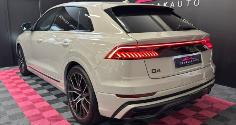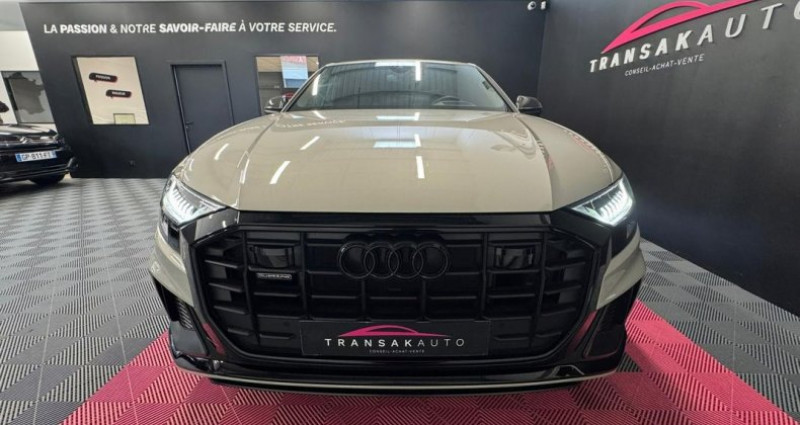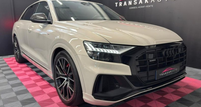 AUDI Q8 55 TFSI V6 341ch Tiptronic 8 Quattro Compétition - PRÈMIERE MAIN - SUIVI COMPLET AUDI - PAS DE MAL, 4x4, suv, beige vigogne metallise, 22 cv, première mise en circulation le 22/06/2023, garantie : garantie constructeur. Prix TTC : 94 990 € 5 places OPTIONS ET ÉQUIPEMENTS : Audio - Télécommunications : - Android Auto - Apple Carplay - Interface Bluetooth - Système audio Bang & Olufsen - Système de navigation - Système de navigation à commande vocale Conduite : - Affichage tête haute - Carte mains-libres - Démarrage sans clé - Entrée sans clé - Limiteur de vitesse - Park Assist - Réglage automatique des phares - Régulateur de vitesse - Régulateur de vitesse adaptatif - Suspension pilotée - Système Start/Stop - Sélection du mode de conduite - Volant avec palettes de changement de vitesses Extérieur : - AUDI Matrix Led - Aide au parking - Aide parking avec caméra de recul - Buses de lave-glace chauffantes - Caméra de recul - Feux arrière LED - Feux avant LED - Feux de jour - Feux de position à LED - Full led - Hayon électrique - Hayon électrique main-libre - Jantes/roues en alliage léger 18 - Lave-phares - Radar de stationnement arrière - Radar de stationnement avant - Rampes/barres de toit - Retroviseur extérieur à mémoire - Rétroviseur extérieur électrochrome - Rétroviseurs extérieurs dégivrants - Rétroviseurs extérieurs rabattable électriquement - Vitres arrière surteintées Intérieur : - Accoudoir arrière - Accoudoir avant - Banquette arrière partagée et rabattable - Climatisation - Climatisation automatique 4 zones ou plus - Lumière d'ambiance intérieur à LED - Ouverture de hayon à distance - Pack carbone - Rétroviseur intérieur électrochrome - Siège conducteur réglable éléctriquement - Siège conducteur à réglage lombaire électrique - Siège passager réglable éléctriquement - Siège passager à réglage lombaire électrique - Sièges avant Sport - Sièges à mémoire - Virtual cockpit - Vitre arrière chauffante - Volant en cuir - Volant sport Pack : - Antidémarrage - Appuie-tête arrière - Cable de recharge - Ecrous de roue antivol - Frein de parking automatique - Garnitures intérieures métal - Pack LED exterieur - Pack LED interieur - Pré-équipement téléphone - Régulateur automatique de distance - Verrouillage centralisé télécommandé Sellerie : - Sièges en alcantara - Sièges en cuir Sécurité : - Aide au démarrage en pente - Airbag latéral conducteur et passager - Airbag passager - Airbags rideaux arrière - Airbags rideaux avant - Assistant de franchissement d?intersection - Fixation pour siège enfant - Kit de réparation pneus (Mobile Tyre) - Reconnaissance des panneaux de signalisation - Système de freinage d?urgence anticipatif Autres équipements et informations : - Application mobile de gestion du véhicule - Feux indicateurs de changement de direction - Téléassistance - consommation extra urbaine: 0.00l/100 - consommation urbaine: 0.00l/100 - consommation mixte: 10.20l/100 - Des erreurs peuvent se glisser dans nos annonces, merci de nous contacter pour plus de renseignements sur ces dernières. Prix hors frais de mise à la route et carte grise Garantie et reprise possible. Véhicule visible UNIQUEMENT sur rendez-vous à l'agence de Metz. TRANSAKAUTO METZ 4 rue du Chêne Brûlé 54700 Lesménils TRANSAKAUTO, réseau national spécialisé dans le courtage automobile pour particuliers, assure les transactions et la gestion de tous les éléments administratifs. Plus de 200 agences à votre disposition dans toute la France pour acheter ou vendre votre véhicule d'occasion ! A bientôt. Référence annonce : 4642
