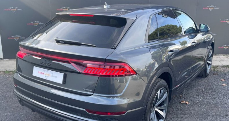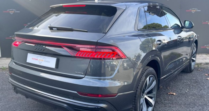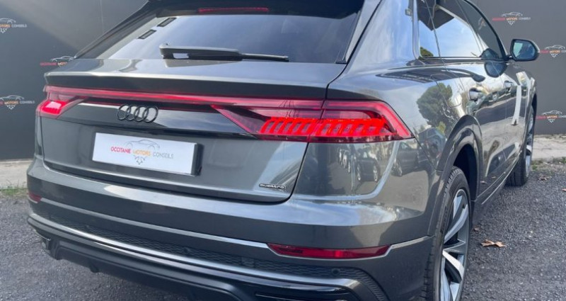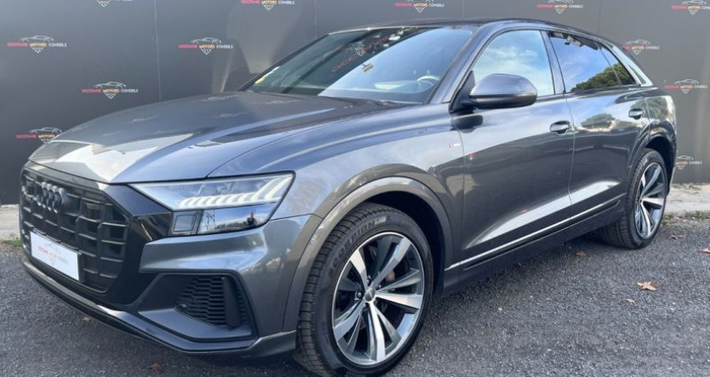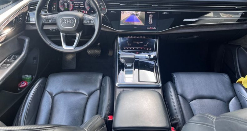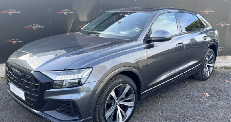 Audi Q8 50 TDI S-LINE 286CH AVUS PACK S-LINE / origine FRANCE / FULL OPTIONS / ENTRETIEN exclusif AUDI, première mise en circulation 16/07/2019. OPTIONS ET ÉQUIPEMENTS : Audio - Télécommunications : - Apple CarPlay sans fil - Bluetooth - GPS Conduite : - Adaptive Air Suspension - Affichage tête haute - Allumage automatique des feux - Audi drive select - Châssis sport - Détecteur de pluie - Limiteur de vitesse - Régulateur de vitesse Extérieur : - Caméra de recul - Pack Extérieur S line - Phares à LED - Radar arrière de détection d’obstacles - Rétroviseurs rabattables - Toit ouvrant panoramique - Toit panoramique en verre Intérieur : - Audi Virtual Cockpit - Climatisation automatique - Direction assistée - Fermeture centralisée - Sièges AV chauffants - Sièges AV ventilés - Sièges réglables en hauteur - Verrouillage automatiques des portes en roulant - Vitre surteintées Pack : - Anti-démarrage - Bang & Olufsen Advanced Sound System avec son en 3D - Pack Esthétique Noir - Siège électriques - Volant multifonctions Sécurité : - Abs - Aide au freinage d’urgence - Airbags frontaux - Airbags latéraux - Airbags rideaux - Alarme - Anti-patinage - Avertissement de franchissement de ligne - Caméra de reconnaissance et lecture des panneaux de circulation - Contrôle pression des pneus - ESP - Fixation ISOFIX - Phares antibrouillard - Radar avant de détection d’obstacles - Répartiteur électronique de freinage Autres équipements et informations : - Jantes 21 aluminium coulé style à 5 branches en W, Gris Contrasté, partiellement polies Pneus 285/45 R21 - Kilométrage garantie - Reprise possible - Sièges AV réglables électriquement avec fonction mémoire pour les sièges conducteur et passager Comprend support lombaire à réglage électrique 4 voies