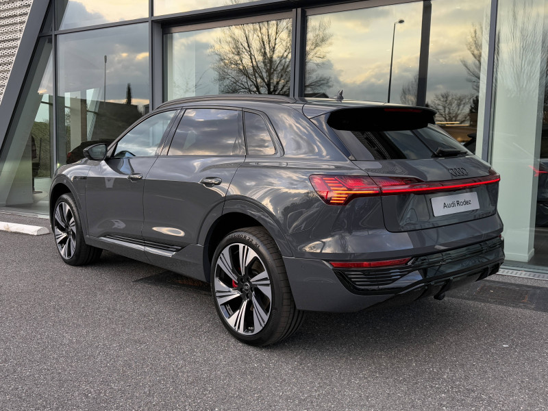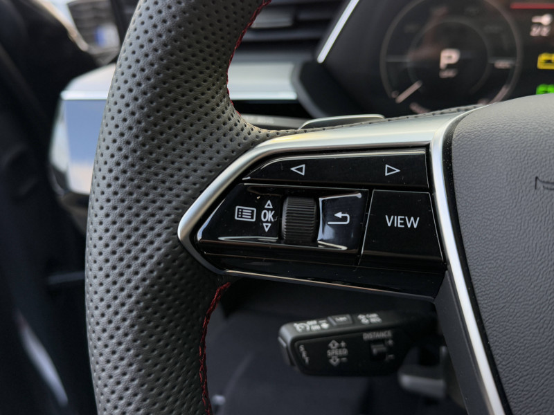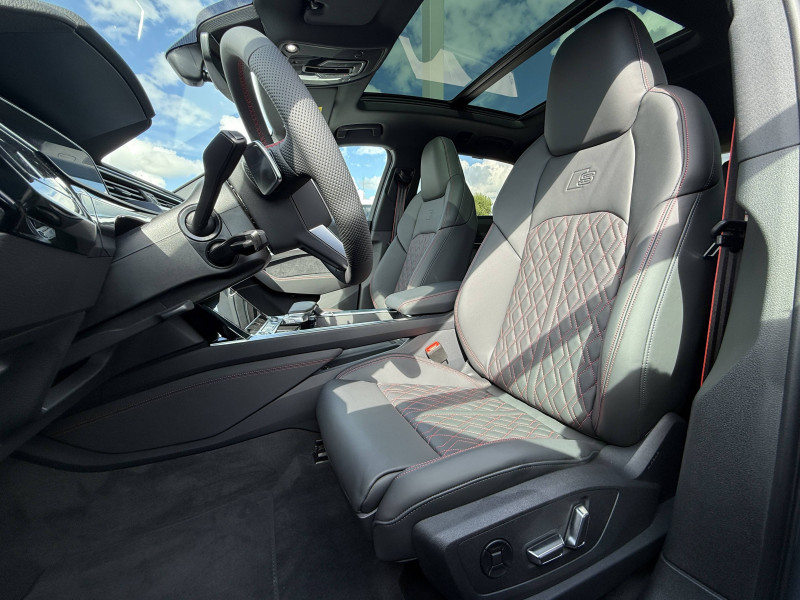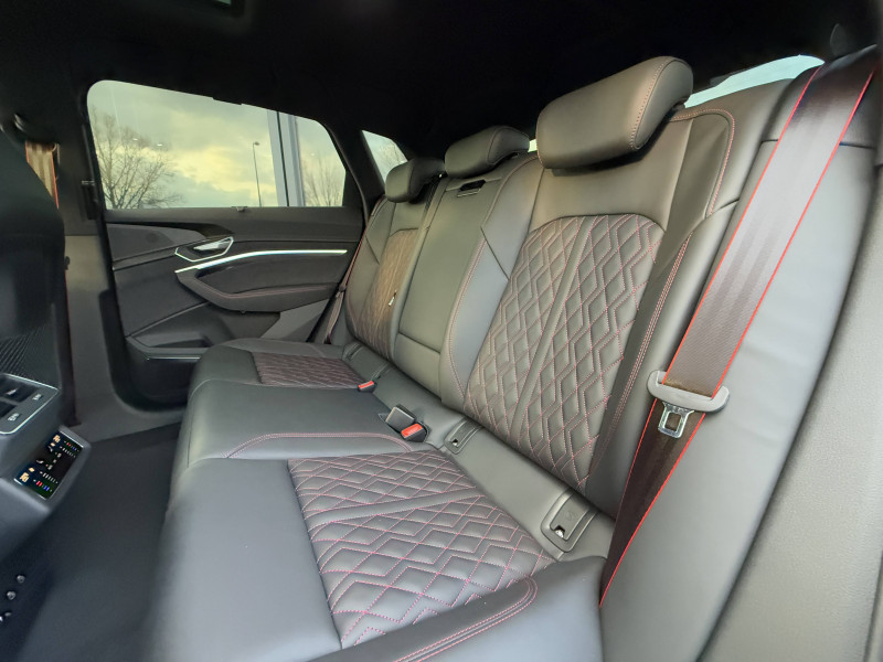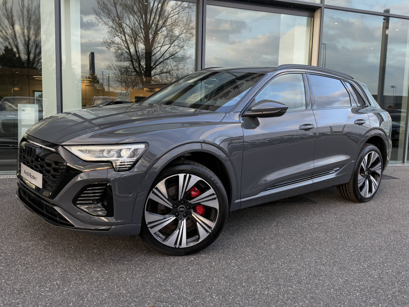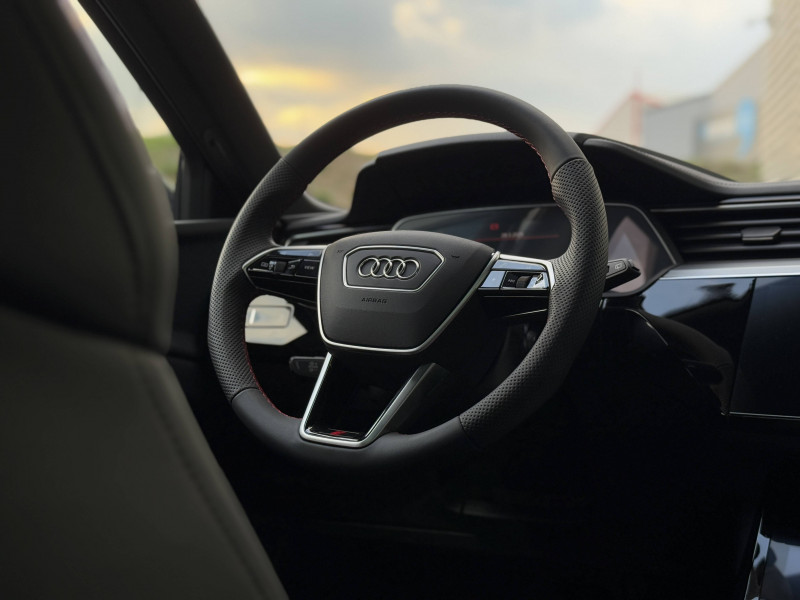 Alerte de sortie de voie avec pilotage semi-automatique du véhicule en cas d'urgence médicale / Application décoratives aluminium brossé mat foncé / Application décoratives aluminium brossé mat foncé / Audi Virtual cockpit Plus / Climatisation stationnaire confort / Eclairage au sol à LED avec projection du logo "e-tron" (sur portières AV et AR) / Jantes en aluminium coulé style 5 branches dynamiques gris contrasté partiellement polies, 9Jx20", Pneus 255/50 R20 / Moulures de seuil avec insert en aluminium à l'AV / Moulures de seuil avec insert en aluminium à l'AV et à l'AR / Navigation & Infotainment Audi connect / Navigation MMI plus avec MMI touch response / Pack Brillance / Pack design intérieur S line / Pack design intérieur S line / Partie supérieure du tableau de bord et éléments de l'habitacle inférieurs en similicuir / Partie supérieure du tableau de bord et éléments de l'habitacle inférieurs en similicuir / Projecteurs à technologie LED / Préparation pour crochet d'attelage / Rampes de pavillon en Aluminium, anodisées / Rétroviseur intérieur jour/nuit automatique / Rétroviseurs extérieurs avec commutation jour/nuit automatique des deux côtés et fonction mémoires / Rétroviseurs extérieurs avec commutation jour/nuit automatique des deux côtés et fonction mémoires / Rétroviseurs extérieurs avec les fonctions suivantes : réglables électriquement, dégivrants, avec clignotants à LED intégrés / 2ème trappe de charge (côté passager AV) / Adaptive Air Suspension / Airbags latéraux à l'AV et système d'airbags de tête / Appel d'urgence et service Audi connect incluant commande de véhicule e-tron / Appui lombaire à 4 axes pour les sièges AV (réglage électrique horizontal et vertical du soutien lombaire) / Audi Music Interface / Audi parking system plus avec indicateur de zone environnante / Audi Pre Sense Basic / Audi Pre Sense front / Audi smartphone interface / Boîtiers de rétroviseurs extérieurs dans la couleur de la carrosserie / Caméra frontale multifonction pour systèmes de sécurité active du véhicule / Capot de coffre à ouverture et fermeture électriques / Ciel de pavillon en tissu noir / Clé Audi connect / Clé confort incluant déverrouillage du coffre par capteur (poignée virtuelle) / Clé confort incluant déverrouillage du coffre par capteur (poignée virtuelle) / Cléà fréquence radio (sans safelock) / Commande de désactivation de l'airbag passager AV / Câble de recharge mode 3 pour recharge publique 22 kW / Ecrous de roues antivol et indicateur de desserrage d'écrous / Etriers de frein laqués de couleur Rouge / Etriers de frein laqués de couleur Rouge / Fixation pour sièges enfants ISOFIX et Top Tether pour les places AR extérieures / Fixation pour sièges enfants ISOFIX pour le siège passager AV / Interface Bluetooth / Outillage de bord / Prise de recharge Combo 2 / Prise USB pour les passagers AR (prises USB embarquées au format Type C) / Reconnaissance par caméra des indicateurs de limitation de vitesse/panneaux de circulation / Sièges AV réglables manuellement / Sièges AV à réglages électriques et à mémoire pour siège conducteur / Sièges AV à réglages électriques et à mémoire pour siège conducteur / Suspension Adaptative Pneumatiques Sport / Système audiophonique Audi / Système AVAS de sonorisation extérieure du véhicule / Système de recharge compact / Tapis complémentaires à l'AV et à 'AR / Touches de commande façon verre en noir avec retour haptique / Transmission intégrale e-quattro / Trousse de secours avec triangle de présignalisation / Vitres AR surteintées (Privacy glass) / Vitres athermiques : teintées vertes, lunette AR dégivrante, avec minuterie / Volant Sport 3 branches avec méplat et zones de préhension élargie