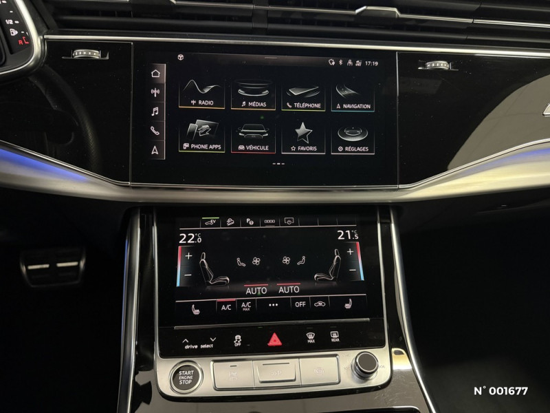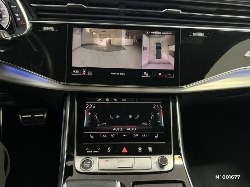 Eclairage au niveau des pieds AV/AR / Eclairage des miroirs de courtoisie / Baguettes décoratives le long du pavillon et sur les cadres de vitres en finition aluminium anodisé / Eclairage des moulures de seuils AV/AR / Pas de cendrier sur la console centrale AV / Peinture intégrale unie / Pare-chocs + bas de caisse avec design spécifique "S line" / Masque de calandre en couleur contrastée Gris Platinum mate / Pare-soleil avec miroir de courtoisie éclairé côtés conducteur et passager AV / Projecteurs HD Matrix LED / Phares entièrement à LED (full LED) : Feux diurnes, feux de croisement, feux de route, feux de position, clignotants, éclairage tout temps et réglage automatique et dynamique du site des phares / Rampes de pavillon en aluminium anodisé / Pare-brise en verre de sécurité feuilleté athermique / Moulures de seuil éclairées avec inserts en aluminium AV/AR et inscription "S" / Logos extérieurs "S line" / Jantes 21" aluminium coulé 5 branches style "V" gris contrasté partiellement polies, Pneus 285/45 R21 / Touches de commande faà§on verre en noir avec réponse haptique incluant style aluminium étendu / Système de motorisation hybride rechargeable PHEV / Sièges AV chauffants chauffe l'assise et le dossier, également les bourrelets latéraux avec sellerie en cuir et sièges Sport ; réglage séparé sur plusieurs positions pour les sièges conducteur et passager avant / Rétroviseur intérieur jour/nuit automatique sans encadrement (Frameless) / Sellerie mixte Dinamica Fréquence/Cuir avec embossage "S" sur dossiers AV / Système de localisation antivol Audi connect (inclut licence d'utilisation d'1 an) / Audi parking system plus avec protection latérale active / Eclairage d'ambiance du tableau de bord / Rétroviseurs extérieurs réglables, dégivrants et rabattables électriquement, jour/nuit automatiques des deux côtés, avec fonction mémoire, incluant fonction rabat automatique pour le rétroviseur extérieur côté passager AV, clignotants à LED intégrés / Régulateur de vitesse incluant limiteur de vitesse / Set de réparation pour pneus / Sièges AV réglables électriquement avec fonction mémoire pour le siège conducteur / 1 profil de couleur supplémentaire interactif et personnalisable parmi une gamme de 30 couleurs / Eclairage de contour avec inscription quattro éclairée ou anneaux Audi éclairés (sur traction AV) sur le tableau de bord côté passager AV / Eclairage de contour des portières AV/AR / Eclairage de tissu des portières AV/AR / Trousse de secours, triangle de présignalisation et veste de sécurité / Volant Sport à méplat et contour en cuir / Caméras périphériques 360° / Eclairage de la console centrale AV / Eclairage des vide-poches de portières AV/AR / 6 profils de couleur prédéfinis / Réglage séparé des teintes lumineuses de contours et d'ambiance / Vitres AR surteintées (Vitrage Privacy) / Pack à?clairage intérieur à LED / Eclairage de contour de la console centrale AV / Vitres athermiques sur les côtés et AR, lunette AR dégivrante, avec minuterie / Eclairage périphérique dans les poignées de portières extérieures AV/AR / Eclairage du coffre à droite et à gauche ainsi qu'éclairage périphérique du hayon / Eclairage d'ambiance du tissu des portières AV/AR / Catadioptres passifs sur les portières / Eclairage des seuils de portières AR / Spots de lecture capacitifs AV / Eclairage d'ambiance du tableau de bord / Eclairage des poignées de portières intérieures AV/AR / Eclairage d'ambiance de la console centrale / Appuie-tête AV pour les sièges AV réglables manuellement en hauteur / Applications décoratives en Aluminium brossé mat / Airbags latéraux AV avec système d'airbags de tête / Appel d'urgence et service Audi connect / Adaptive Air Suspension Sport / Commande de désactivation de l'airbag passager AV / Audi connect avec carte SIM intégrée (e-SIM) et licence d'utilisation pour 3 ans / Appui lombaire à 4 axes pour les sièges AV: réglage électrique, horizontal et vertical / Audi drive select / Audi hold assist: maintien le véhicule à l'arrêt en côte comme en descente / Audi pre sense basic initie, dans les limites du système, des mesures de protection préventive dans des situations critiques comme des freinages d'urgence ou des situations à haut risque. Ces informations sont, entre autres: resserrement des ceintures de sécuritéà l'avant et, si nécessaire, également des ceintures de sécurité des sièges arrière extérieurs, optimisation de la position d'assise, initiation du processus de fermeture des vitres et du toit panoramique en verre (si commandé)... / Audi Parking System Plus / Badges extérieurs avec identification du modèle, avec inscription de la puissance/technologie / Audi Virtual Cockpit / Audi Sound System / Audi smartphone interface / Audi pre sense front / Ciel de pavillon en Tissu Noir / Caméra multifonction pour systèmes d'assistance à la conduite / Châssis avec amortissement piloté / Câble de charge pour chargeur ''e-tron compact'' 1.6 mètres, connecteur type domestique 8A / Buses de lave-glace dégivrantes / Câble de charge pour station publique 7.4kW AC 32A pour charge en Mode 3 / Type 2 / Boîtiers de rétroviseurs extérieurs laqués dans la teinte carrosserie / Becquet AR de pavillon style "S" / Masque de calandre en couleur contrastée Gris Platinum mate / Outillage de bord / Navigation MMI avec MMI touch response / Interface Bluetooth / Hayon de coffre à ouverture automatique / Fixation pour sièges enfants ISOFIX pour le siège passager AV avec commande de sécurité enfant électrique sur les portières AR / Ecrous de roues antivol avec indicateur de desserrage d'écrous / Fixations pour sièges enfant ISOFIX et avec systèmes "Top Tether" pour la banquette AR / Eclairage au sol avec projection de logo par technologie LED / Clé confort incluant déverrouillage du coffre par capteur et couvre-coffre électrique sans Saf