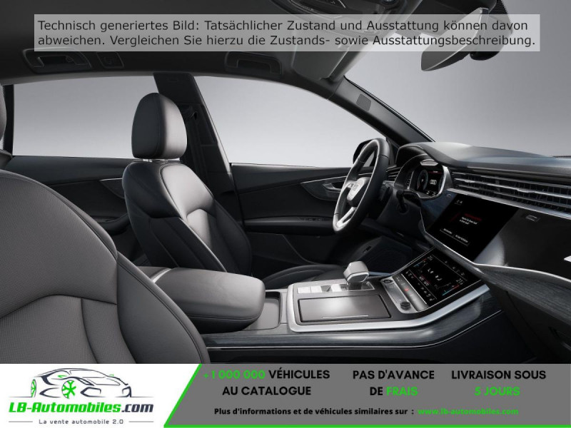 Référence : 1108645 Vos Avantages chez LB-AUTOMOBILES.com / Prix affiché TTC Livré hors carte grise / Livraison sous 10 jours dans toute la France hors 31 / Pas d?avance de frais paiement du véhicule 100% à la livraison par virement. Audi Q8 Neuf remisée, Audi Q8 Occasion Toulouse Beaupuy 31850, Audi Q8 Véhicule sorti de réseau collaborateur, Audi Q8 import, Audi Q8 importateur, Audi Q8 Livraison possible dans toute la France sous 5 jours, Audi Q8, Audi Q8 Location Option Achat, Audi Q8 LLD, Audi Q8 Longue Durée, Audi Q8 TVA récupérable. Possibilité d'extension de garantie 12, 24,36 mois, Pour tout autres voitures import neufs ou occasions collaborateur fortement remisée, Mandataire Audi, Mandataire BMW, Mandataire Volkswagen, Mandataire Mercedes, Mandataire Peugeot Espagne, Mandataire Renault Espagne, Porsche import, Mandataire Citroën Espagne, Mandataire Seat Espagne, n'hésitez pas à nous contacter. « Sous réserve de vente préalable et erreur de saisie » Principaux équipements : - 4x4 - ABS - Accoudoir - Antidémarrage - Assistance au freinage d'urgence - Assistance de démarrage en côte - Assistant feux de route - Bluetooth - Boîte de vitesses robotisée - Capteur de lumière - Cockpit numérique - Contrôle de la pression des pneus - Diesel avec filtre à particules - Direction assistée - Éclairage adaptatif - Éclairage d'ambiance - Écran tactile - ESP - Fermeture centralisée - Feux de jour - Galerie de toit - Garantie - GPS - Hayon électrique - Isofix - Jantes alliage - Kit mains libres - Ordinateur de bord - Pack fumeur - Phares LED - Pneus été - Port USB - Radio DAB - Réglage électrique des sièges - Réglage électrique des sièges avec fonction mémoire - Régulateur de vitesse adaptatif - Rétroviseur extérieur électrique - Rétroviseur intérieur anti-éblouissement automatique - Sièges chauffants - Support lombaire - Système antipatinage - Système d'appel d'urgence - Système d'avertissement de la distance - Système de limitation de la vitesse - Système de reconnaissance des panneaux de signalisation - Système de sonorisation - Système Stop & Start - Tuner/radio - Ventilation du siège - Vitres électriques - Volant en cuir - Volant multifonction