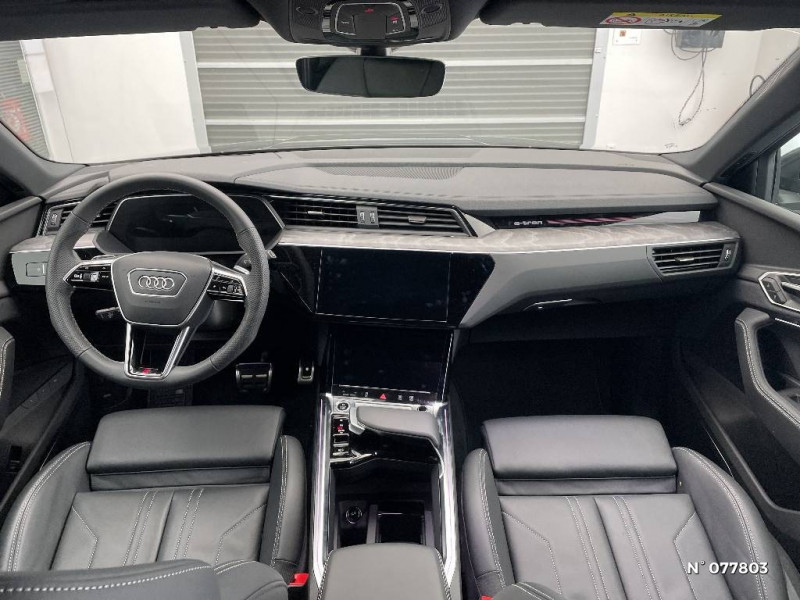Transmission intégrale e-quattro / Trousse de secours avec triangle de présignalisation / Vitres AR surteintées (Privacy glass) / Vitres athermiques : teintées vertes, lunette AR dégivrante, avec minuterie / 2ème trappe de charge (côté passager AV) / Projecteurs à technologie LED / Rampes de pavillon en Aluminium, anodisées / Prise de recharge Combo 2 / Prise USB pour les passagers AR (prises USB embarquées au format Type C) / Etriers de frein laqués de couleur Rouge / Fixation pour sièges enfants ISOFIX et Top Tether pour les places AR extérieures / Fixation pour sièges enfants ISOFIX pour le siège passager AV / Interface Bluetooth (système mains libres et streaming audio) / Jantes en aluminium coulé style 5 branches dynamiques gris contrasté partiellement polies, 9Jx20", pneus 255/50 R20 / Moulures de seuil avec insert en aluminium AV/AR, éclairées, avec inscription "S" à l'AV / Navigation & Infotainment Audi connect / Navigation MMI plus avec MMI touch response / Outillage de bord / Pack Assistance Stationnement avec Park Assist - Audi Park Assist - Assistant aux manoeuvres de stationnement Plus - Caméras périphériques 360° / Pack Brillance Baguette le long du pavillon et sur les appuis de vitre en aluminium anodisé / Pack design intérieur S line / Pack Extérieur S line avec peinture unie / Adaptive Air Suspension / Airbags latéraux à l'AV et système d'airbags de tête / Alerte de sortie de voie avec pilotage semi-automatique du véhicule en cas d'urgence médicale / Appel d'urgence et service Audi connect incluant commande de véhicule e-tron / Application décoratives aluminium brossé mat foncé / Appui lombaire à 4 axes pour les sièges AV (réglage électrique horizontal et vertical du soutien lombaire) / Audi Music Interface / Audi Pre Sense Basic / Audi Pre Sense front / Audi smartphone interface / Audi Virtual Cockpit Plus / Boîtiers de rétroviseurs extérieurs dans la couleur de la carrosserie / Câble de recharge mode 3 pour recharge publique 22 kW / Caméra frontale multifonction pour systèmes de sécurité active du véhicule / Capot de coffre à ouverture et fermeture électriques / Ciel de pavillon en tissu noir / Cléà fréquence radio (sans safelock) / Clé Audi connect / Clé confort incluant déverrouillage du coffre par capteur / Climatisation stationnaire confort / Commande de désactivation de l'airbag passager AV / Eclairage au sol à LED avec projection du logo / Ecrous de roues antivol et indicateur de desserrage d'écrous / Pack Non fumeur Une prise 12 volts à l¿AV et à l¿AR remplace les allume-cigare et cendrier / Pack Rangement et Coffre - 2 porte-boissons dans l¿accoudoir central AR - Revêtement de vide-poches dans le logement de la roue de secours - Filets latéraux dans le coffre - Filet à bagages pour le transport d¿objets "tendeur araignée" / Partie supérieure du tableau de bord et éléments de l¿habitacle inférieurs en matériaux synthétiques / Préparation pour crochet d'attelage Dispositif de commande pré-équipé et refroidissement du moteur renforcé / Reconnaissance par caméra des indicateurs de limitation de vitesse/panneaux de circulation / Régulateur de vitesse incluant limiteur de vitesse / Rétroviseur intérieur jour/nuit automatique / Rétroviseurs extérieurs avec commutation jour/nuit automatique des deux côtés et fonction mémoires / Rétroviseurs extérieurs avec les fonctions suivantes : réglables électriquement, dégivrants, avec clignotants à LED intégrés / Sellerie combinée en Cuir/Dinamica Fréquence avec embossage ''S'' sur les dossiers des sièges AV / Sièges AV à réglages électriques et à mémoire pour siège conducteur / Support mural à clip / Suspension Adaptative Pneumatiques Sport / Système audiophonique Audi / Système AVAS de sonorisation extérieure du véhicule / Système de recharge compact Permet de recharger le véhicule sur des prises de courant (mode 2). Comprend une unité de commande: + 1 câble de raccordement au véhicule (4,5 m de long) + 1 câble de raccordement au réseau domestique. Commutation manuelle entre une puissance de charge de 100 % et 50 %. Des voyants à LED indiquent l¿état du système de recharge et celui du processus de charge. Puissance de charge maximale de 11 kW / Tapis complémentaires AV/AR / Touches de commande façon verre en noir avec retour haptique