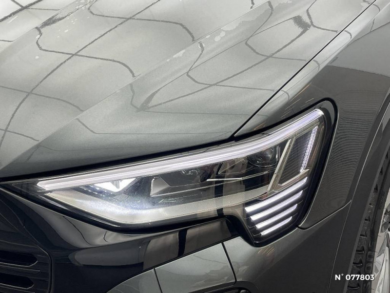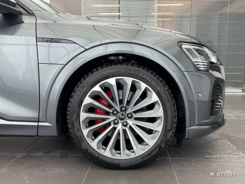 Transmission intégrale e-quattro / Trousse de secours avec triangle de présignalisation / Vitres AR surteintées (Privacy glass) / Vitres athermiques : teintées vertes, lunette AR dégivrante, avec minuterie / 2ème trappe de charge (côté passager AV) / Projecteurs à technologie LED / Rampes de pavillon en Aluminium, anodisées / Prise de recharge Combo 2 / Prise USB pour les passagers AR (prises USB embarquées au format Type C) / Etriers de frein laqués de couleur Rouge / Fixation pour sièges enfants ISOFIX et Top Tether pour les places AR extérieures / Fixation pour sièges enfants ISOFIX pour le siège passager AV / Interface Bluetooth (système mains libres et streaming audio) / Jantes en aluminium coulé style 5 branches dynamiques gris contrasté partiellement polies, 9Jx20", pneus 255/50 R20 / Moulures de seuil avec insert en aluminium AV/AR, éclairées, avec inscription "S" à l'AV / Navigation & Infotainment Audi connect / Navigation MMI plus avec MMI touch response / Outillage de bord / Pack Assistance Stationnement avec Park Assist - Audi Park Assist - Assistant aux manoeuvres de stationnement Plus - Caméras périphériques 360° / Pack Brillance Baguette le long du pavillon et sur les appuis de vitre en aluminium anodisé / Pack design intérieur S line / Pack Extérieur S line avec peinture unie / Adaptive Air Suspension / Airbags latéraux à l'AV et système d'airbags de tête / Alerte de sortie de voie avec pilotage semi-automatique du véhicule en cas d'urgence médicale / Appel d'urgence et service Audi connect incluant commande de véhicule e-tron / Application décoratives aluminium brossé mat foncé / Appui lombaire à 4 axes pour les sièges AV (réglage électrique horizontal et vertical du soutien lombaire) / Audi Music Interface / Audi Pre Sense Basic / Audi Pre Sense front / Audi smartphone interface / Audi Virtual Cockpit Plus / Boîtiers de rétroviseurs extérieurs dans la couleur de la carrosserie / Câble de recharge mode 3 pour recharge publique 22 kW / Caméra frontale multifonction pour systèmes de sécurité active du véhicule / Capot de coffre à ouverture et fermeture électriques / Ciel de pavillon en tissu noir / Cléà fréquence radio (sans safelock) / Clé Audi connect / Clé confort incluant déverrouillage du coffre par capteur / Climatisation stationnaire confort / Commande de désactivation de l'airbag passager AV / Eclairage au sol à LED avec projection du logo / Ecrous de roues antivol et indicateur de desserrage d'écrous / Pack Non fumeur Une prise 12 volts à l¿AV et à l¿AR remplace les allume-cigare et cendrier / Pack Rangement et Coffre - 2 porte-boissons dans l¿accoudoir central AR - Revêtement de vide-poches dans le logement de la roue de secours - Filets latéraux dans le coffre - Filet à bagages pour le transport d¿objets "tendeur araignée" / Partie supérieure du tableau de bord et éléments de l¿habitacle inférieurs en matériaux synthétiques / Préparation pour crochet d'attelage Dispositif de commande pré-équipé et refroidissement du moteur renforcé / Reconnaissance par caméra des indicateurs de limitation de vitesse/panneaux de circulation / Régulateur de vitesse incluant limiteur de vitesse / Rétroviseur intérieur jour/nuit automatique / Rétroviseurs extérieurs avec commutation jour/nuit automatique des deux côtés et fonction mémoires / Rétroviseurs extérieurs avec les fonctions suivantes : réglables électriquement, dégivrants, avec clignotants à LED intégrés / Sellerie combinée en Cuir/Dinamica Fréquence avec embossage ''S'' sur les dossiers des sièges AV / Sièges AV à réglages électriques et à mémoire pour siège conducteur / Support mural à clip / Suspension Adaptative Pneumatiques Sport / Système audiophonique Audi / Système AVAS de sonorisation extérieure du véhicule / Système de recharge compact Permet de recharger le véhicule sur des prises de courant (mode 2). Comprend une unité de commande: + 1 câble de raccordement au véhicule (4,5 m de long) + 1 câble de raccordement au réseau domestique. Commutation manuelle entre une puissance de charge de 100 % et 50 %. Des voyants à LED indiquent l¿état du système de recharge et celui du processus de charge. Puissance de charge maximale de 11 kW / Tapis complémentaires AV/AR / Touches de commande façon verre en noir avec retour haptique