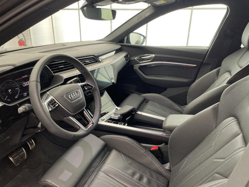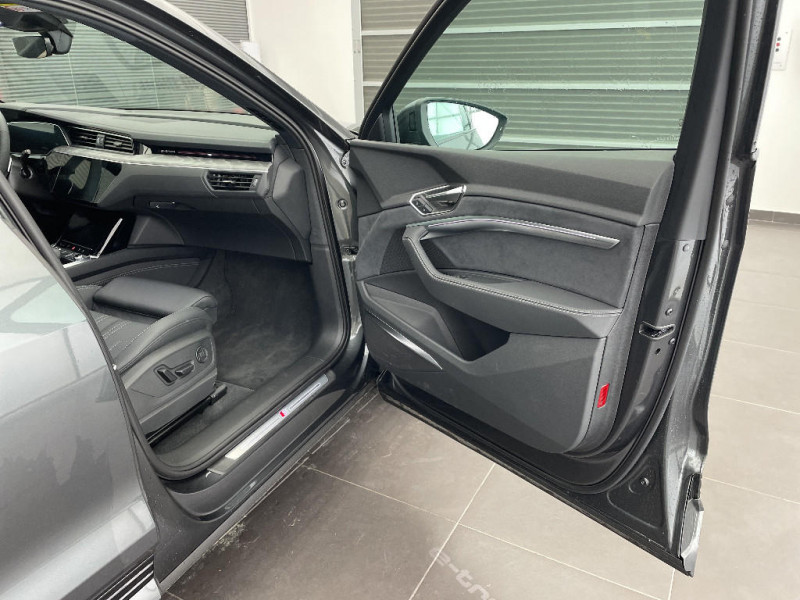 Vitres athermiques : teintées vertes, lunette AR dégivrante, avec minuterie / 2ème trappe de charge (côté passager AV) / Projecteurs à technologie LED / Rampes de pavillon en Aluminium, anodisées / Reconnaissance par caméra des indicateurs de limitation de vitesse/panneaux de circulation / Régulateur de vitesse incluant limiteur de vitesse / Adaptive Air Suspension / Airbags latéraux à l'AV et système d'airbags de tête / Alerte de sortie de voie avec pilotage semi-automatique du véhicule en cas d'urgence médicale / Appel d'urgence et service Audi connect incluant commande de véhicule e-tron / Application décoratives aluminium brossé mat foncé / Appui lombaire à 4 axes pour les sièges AV (réglage électrique horizontal et vertical du soutien lombaire) / Audi Music Interface / Audi Pre Sense Basic / Audi Pre Sense front / Audi smartphone interface / Audi Virtual Cockpit Plus / Boîtiers de rétroviseurs extérieurs dans la couleur de la carrosserie / Câble de recharge mode 3 pour recharge publique 22 kW / Pack Non fumeur Une prise 12 volts à l¿AV et à l¿AR remplace les allume-cigare et cendrier / Pack Rangement et Coffre - 2 porte-boissons dans l¿accoudoir central AR - Revêtement de vide-poches dans le logement de la roue de secours - Filets latéraux dans le coffre - Filet à bagages pour le transport d¿objets "tendeur araignée" / Partie supérieure du tableau de bord et éléments de l¿habitacle inférieurs en matériaux synthétiques / Préparation pour crochet d'attelage Dispositif de commande pré-équipé et refroidissement du moteur renforcé / Prise de recharge Combo 2 / Caméra frontale multifonction pour systèmes de sécurité active du véhicule / Capot de coffre à ouverture et fermeture électriques / Ciel de pavillon en tissu noir / Cléà fréquence radio (sans safelock) / Clé Audi connect / Clé confort incluant déverrouillage du coffre par capteur / Climatisation stationnaire confort / Commande de désactivation de l'airbag passager AV / Eclairage au sol à LED avec projection du logo / Ecrous de roues antivol et indicateur de desserrage d'écrous / Etriers de frein laqués de couleur Rouge / Fixation pour sièges enfants ISOFIX et Top Tether pour les places AR extérieures / Fixation pour sièges enfants ISOFIX pour le siège passager AV / Interface Bluetooth (système mains libres et streaming audio) / Jantes en aluminium coulé style 5 branches dynamiques gris contrasté partiellement polies, 9Jx20", pneus 255/50 R20 / Moulures de seuil avec insert en aluminium AV/AR, éclairées, avec inscription "S" à l'AV / Navigation & Infotainment Audi connect / Navigation MMI plus avec MMI touch response / Outillage de bord / Pack Assistance Stationnement avec Park Assist - Audi Park Assist - Assistant aux manoeuvres de stationnement Plus - Caméras périphériques 360° / Pack Brillance Baguette le long du pavillon et sur les appuis de vitre en aluminium anodisé / Pack design intérieur S line / Pack Extérieur S line avec peinture unie / Prise USB pour les passagers AR (prises USB embarquées au format Type C) / Rétroviseur intérieur jour/nuit automatique / Rétroviseurs extérieurs avec commutation jour/nuit automatique des deux côtés et fonction mémoires / Rétroviseurs extérieurs avec les fonctions suivantes : réglables électriquement, dégivrants, avec clignotants à LED intégrés / Sellerie combinée en Cuir/Dinamica Fréquence avec embossage ''S'' sur les dossiers des sièges AV / Sièges AV à réglages électriques et à mémoire pour siège conducteur / Support mural à clip / Suspension Adaptative Pneumatiques Sport / Système audiophonique Audi / Système AVAS de sonorisation extérieure du véhicule / Système de recharge compact Permet de recharger le véhicule sur des prises de courant (mode 2). Comprend une unité de commande: + 1 câble de raccordement au véhicule (4,5 m de long) + 1 câble de raccordement au réseau domestique. Commutation manuelle entre une puissance de charge de 100 % et 50 %. Des voyants à LED indiquent l¿état du système de recharge et celui du processus de charge. Puissance de charge maximale de 11 kW / Tapis complémentaires AV/AR / Touches de commande façon verre en noir avec retour haptique / Transmission intégrale e-quattro / Trousse de secours avec triangle de présignalisation / Vitres AR surteintées (Privacy glass)