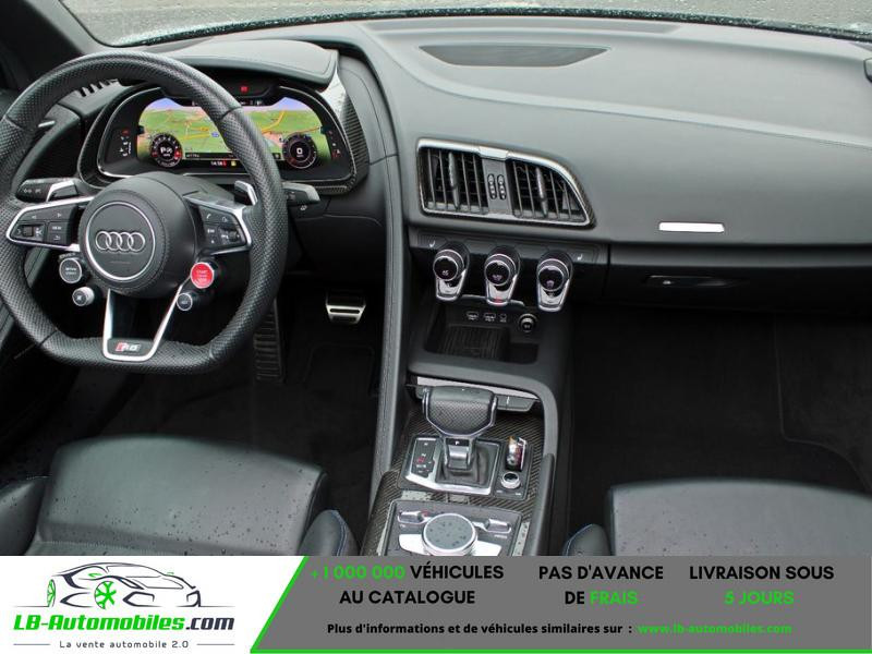 Référence : 1002199 Vos Avantages chez LB-AUTOMOBILES.com / Prix affiché TTC Livré hors carte grise / Livraison sous 10 jours dans toute la France hors 31 / Pas d?avance de frais paiement du véhicule 100% à la livraison par virement. Audi R8 Spyder Neuf remisée, Audi R8 Spyder Occasion Toulouse Beaupuy 31850, Audi R8 Spyder Véhicule sorti de réseau collaborateur, Audi R8 Spyder import, Audi R8 Spyder importateur, Audi R8 Spyder Livraison possible dans toute la France sous 5 jours, Audi R8 Spyder, Audi R8 Spyder Location Option Achat, Audi R8 Spyder LLD, Audi R8 Spyder Longue Durée, Audi R8 Spyder TVA récupérable. Possibilité d'extension de garantie 12, 24,36 mois, Pour tout autres voitures import neufs ou occasions collaborateur fortement remisée, Mandataire Audi, Mandataire BMW, Mandataire Volkswagen, Mandataire Mercedes, Mandataire Peugeot Espagne, Mandataire Renault Espagne, Porsche import, Mandataire Citroën Espagne, Mandataire Seat Espagne, n'hésitez pas à nous contacter. « Sous réserve de vente préalable et erreur de saisie » Principaux équipements : - 4x4 - ABS - Accoudoir - Airbags frontaux et latéraux - Android Auto - Antidémarrage - Apple CarPlay - Assistance de démarrage en côte - Assistant feux de route - Bluetooth - Boîte de vitesses robotisée - Capteur de lumière - Capteur de pluie - Carnet d'entretien - Chargement par induction pour smartphones - Climatisation automatique - Cockpit numérique - Commande vocale - Contrôle de la pression des pneus - Direction assistée - Éclairage adaptatif de virage - Éclairage d'ambiance - Éclairage route non éblouissant - Écran tactile - ESP - Fermeture centralisée - Feux de jour LED - Garantie - GPS - Jantes alliage - Kit de réparation d'urgence des pneus - Kit mains libres - Ordinateur de bord - Pack sport - Phare antibrouillard - Phares laser - Pneus été - Point Isofix siège passager - Port USB - Radio DAB - Réglage électrique des sièges - Réglage électrique des sièges avec fonction mémoire - Régulateur de vitesse - Rétroviseur extérieur électrique - Rétroviseur intérieur anti-éblouissement automatique - Rétroviseurs extérieurs rabattables électriquement - Sièges chauffants - Sièges sport - Streaming musical intégré - Support lombaire - Suspension adaptative - Suspension sport - Système antipatinage - Système d'alarme - Système de détection de la fatigue - Système de limitation de la vitesse - Système de sonorisation - Système Stop & Start - Tuner/radio - Véhicule non-fumeur - Verrouillage centralisé sans clé - Vitres électriques - Volant en cuir - Volant multifonction - WLAN / point d'accès Wi-Fi - Radar de recul : Appareil photo, Systèmes de pilotage automatique, Avant, Arrière - Première main : Oui
