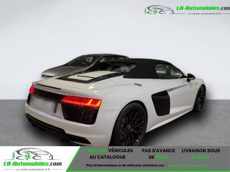 Référence : 1100192 Vos Avantages chez LB-AUTOMOBILES.com / Prix affiché TTC Livré hors carte grise / Livraison sous 10 jours dans toute la France hors 31 / Pas d?avance de frais paiement du véhicule 100% à la livraison par virement. Audi R8 Spyder Neuf remisée, Audi R8 Spyder Occasion Toulouse Beaupuy 31850, Audi R8 Spyder Véhicule sorti de réseau collaborateur, Audi R8 Spyder import, Audi R8 Spyder importateur, Audi R8 Spyder Livraison possible dans toute la France sous 5 jours, Audi R8 Spyder, Audi R8 Spyder Location Option Achat, Audi R8 Spyder LLD, Audi R8 Spyder Longue Durée, Audi R8 Spyder TVA récupérable. Possibilité d'extension de garantie 12, 24,36 mois, Pour tout autres voitures import neufs ou occasions collaborateur fortement remisée, Mandataire Audi, Mandataire BMW, Mandataire Volkswagen, Mandataire Mercedes, Mandataire Peugeot Espagne, Mandataire Renault Espagne, Porsche import, Mandataire Citroën Espagne, Mandataire Seat Espagne, n'hésitez pas à nous contacter. « Sous réserve de vente préalable et erreur de saisie » Principaux équipements : - 4x4 - ABS - Accoudoir - Antidémarrage - Assistance de démarrage en côte - Bluetooth - Boîte de vitesses robotisée - Capteur de lumière - Capteur de pluie - Carnet d'entretien - Cockpit numérique - Contrôle de la pression des pneus - Direction assistée - ESP - Fermeture centralisée - Feux de jour LED - GPS - Isofix - Jantes alliage - Kit mains libres - Ordinateur de bord - Pack sport - Phares LED - Pneus été - Port USB - Radio DAB - Réglage électrique des sièges - Régulateur de vitesse - Rétroviseur extérieur électrique - Rétroviseur intérieur anti-éblouissement automatique - Sièges chauffants - Sièges sport - Suspension adaptative - Suspension sport - Système antipatinage - Système d'alarme - Système de sonorisation - Système Stop & Start - Tuner/radio - Véhicule non-fumeur - Verrouillage centralisé sans clé - Vitres électriques - Volant en cuir - Volant multifonction