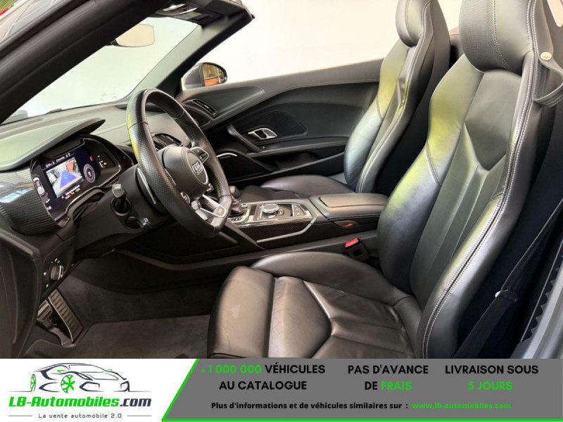 Référence : 1024820 Vos Avantages chez LB-AUTOMOBILES.com / Prix affiché TTC Livré hors carte grise / Livraison sous 10 jours dans toute la France hors 31 / Pas d?avance de frais paiement du véhicule 100% à la livraison par virement. Audi R8 Spyder Neuf remisée, Audi R8 Spyder Occasion Toulouse Beaupuy 31850, Audi R8 Spyder Véhicule sorti de réseau collaborateur, Audi R8 Spyder import, Audi R8 Spyder importateur, Audi R8 Spyder Livraison possible dans toute la France sous 5 jours, Audi R8 Spyder, Audi R8 Spyder Location Option Achat, Audi R8 Spyder LLD, Audi R8 Spyder Longue Durée, Audi R8 Spyder TVA récupérable. Possibilité d'extension de garantie 12, 24,36 mois, Pour tout autres voitures import neufs ou occasions collaborateur fortement remisée, Mandataire Audi, Mandataire BMW, Mandataire Volkswagen, Mandataire Mercedes, Mandataire Peugeot Espagne, Mandataire Renault Espagne, Porsche import, Mandataire Citroën Espagne, Mandataire Seat Espagne, n'hésitez pas à nous contacter. « Sous réserve de vente préalable et erreur de saisie » Principaux équipements : - 4x4 - ABS - Accoudoir - Android Auto - Antidémarrage - Assistance de démarrage en côte - Assistant d'angle mort - Assistant feux de route - Bluetooth - Boîte de vitesses robotisée - Capteur de lumière - Capteur de pluie - Carnet d'entretien - Chargement par induction pour smartphones - Cockpit numérique - Commande vocale - Contrôle de la pression des pneus - Direction assistée - Éclairage adaptatif de virage - Éclairage d'ambiance - ESP - Fermeture centralisée - Feux de jour LED - Garantie - GPS - Grille de protection pour coffre - Isofix - Jantes alliage - Kit de préparation pour système de navigation - Kit mains libres - Lecteur CD - Ordinateur de bord - Pack sport - Phares LED - Pneus été - Port USB - Radio DAB - Réglage électrique des sièges - Régulateur de vitesse - Rétroviseur extérieur électrique - Rétroviseur intérieur anti-éblouissement automatique - Rétroviseurs extérieurs rabattables électriquement - Révision complète - Sièges chauffants - Sièges sport - Support lombaire - Suspension sport - Système antipatinage - Système d'alarme - Système d'avertissement de la distance - Système de détection de la fatigue - Système de limitation de la vitesse - Système de nettoyage des phares - Système de reconnaissance des panneaux de signalisation - Système de sonorisation - Système Stop & Start - Tuner/radio - Véhicule non-fumeur - Verrouillage centralisé sans clé - Vitres électriques - Volant en cuir - Volant multifonction