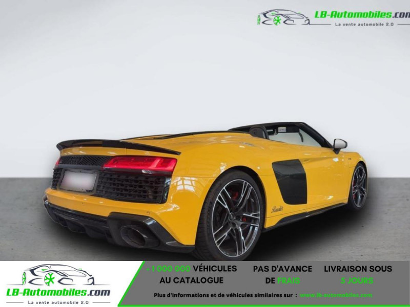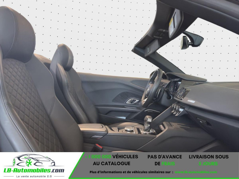 Référence : 1065964 Vos Avantages chez LB-AUTOMOBILES.com / Prix affiché TTC Livré hors carte grise / Livraison sous 10 jours dans toute la France hors 31 / Pas d?avance de frais paiement du véhicule 100% à la livraison par virement. Audi R8 Spyder Neuf remisée, Audi R8 Spyder Occasion Toulouse Beaupuy 31850, Audi R8 Spyder Véhicule sorti de réseau collaborateur, Audi R8 Spyder import, Audi R8 Spyder importateur, Audi R8 Spyder Livraison possible dans toute la France sous 5 jours, Audi R8 Spyder, Audi R8 Spyder Location Option Achat, Audi R8 Spyder LLD, Audi R8 Spyder Longue Durée, Audi R8 Spyder TVA récupérable. Possibilité d'extension de garantie 12, 24,36 mois, Pour tout autres voitures import neufs ou occasions collaborateur fortement remisée, Mandataire Audi, Mandataire BMW, Mandataire Volkswagen, Mandataire Mercedes, Mandataire Peugeot Espagne, Mandataire Renault Espagne, Porsche import, Mandataire Citroën Espagne, Mandataire Seat Espagne, n'hésitez pas à nous contacter. « Sous réserve de vente préalable et erreur de saisie » Principaux équipements : - 4x4 - ABS - Android Auto - Antidémarrage - Apple CarPlay - Assistant feux de route - Bluetooth - Boîte de vitesses robotisée - Capteur de lumière - Capteur de pluie - Carnet d'entretien - Chargement par induction pour smartphones - Cockpit numérique - Commande vocale - Contrôle de la pression des pneus - Diesel avec filtre à particules - Direction assistée - Éclairage route non éblouissant - Écran tactile - ESP - Fermeture centralisée - Feux de jour LED - Garantie - GPS - Isofix - Jantes alliage - Kit mains libres - Ordinateur de bord - Pack sport - Phares laser - Pneus été - Point Isofix siège passager - Port USB - Radio DAB - Réglage électrique des sièges - Réglage électrique des sièges avec fonction mémoire - Régulateur de vitesse - Rétroviseur extérieur électrique - Rétroviseur intérieur anti-éblouissement automatique - Sièges chauffants - Sièges sport - Streaming musical intégré - Suspension sport - Système antipatinage - Système d'alarme - Système de nettoyage des phares - Système de sonorisation - Système Stop & Start - Tuner/radio - Véhicule non-fumeur - Verrouillage centralisé sans clé - Vitres électriques - Volant en cuir - Volant multifonction