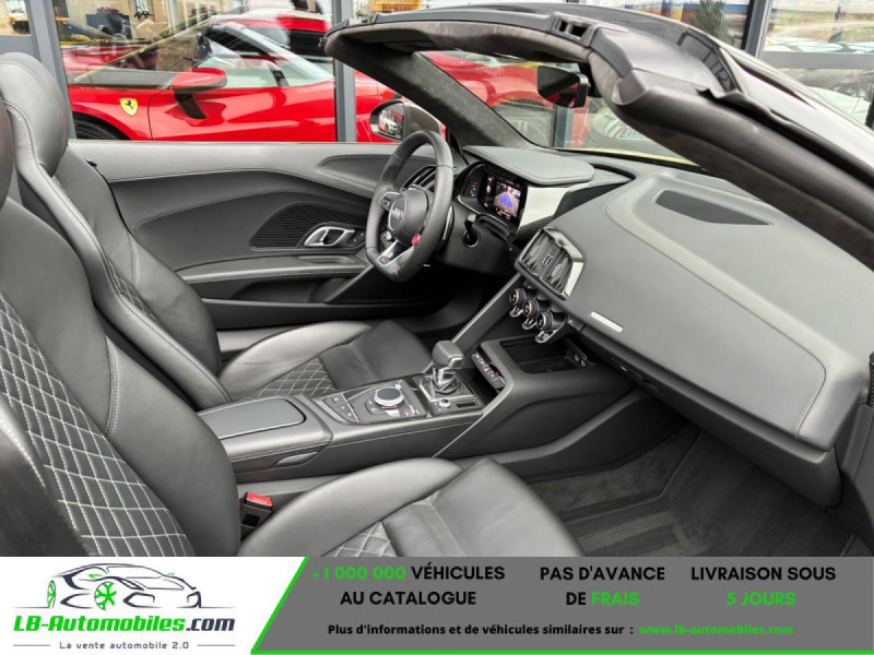 Référence : 1128632 Vos Avantages chez LB-AUTOMOBILES.com / Prix affiché TTC Livré hors carte grise / Livraison sous 10 jours dans toute la France hors 31 / Pas d?avance de frais paiement du véhicule 100% à la livraison par virement. Audi R8 Spyder Neuf remisée, Audi R8 Spyder Occasion Toulouse Beaupuy 31850, Audi R8 Spyder Véhicule sorti de réseau collaborateur, Audi R8 Spyder import, Audi R8 Spyder importateur, Audi R8 Spyder Livraison possible dans toute la France sous 5 jours, Audi R8 Spyder, Audi R8 Spyder Location Option Achat, Audi R8 Spyder LLD, Audi R8 Spyder Longue Durée, Audi R8 Spyder TVA récupérable. Possibilité d'extension de garantie 12, 24,36 mois, Pour tout autres voitures import neufs ou occasions collaborateur fortement remisée, Mandataire Audi, Mandataire BMW, Mandataire Volkswagen, Mandataire Mercedes, Mandataire Peugeot Espagne, Mandataire Renault Espagne, Porsche import, Mandataire Citroën Espagne, Mandataire Seat Espagne, n'hésitez pas à nous contacter. « Sous réserve de vente préalable et erreur de saisie » Principaux équipements : - 4x4 - ABS - Accoudoir - Android Auto - Antidémarrage - Apple CarPlay - Assistance de démarrage en côte - Assistant de sortie de stationnement - Assistant feux de route - Bluetooth - Boîte de vitesses robotisée - Capteur de lumière - Capteur de pluie - Carnet d'entretien - Chargement par induction pour smartphones - Cockpit numérique - Contrôle de la pression des pneus - Éclairage adaptatif - Éclairage route non éblouissant - ESP - Fermeture centralisée - Feux de jour LED - GPS - Jantes alliage - Ordinateur de bord - Pack sport - Phares laser - Pneus été - Port USB - Radio DAB - Réglage électrique des sièges - Réglage électrique des sièges avec fonction mémoire - Régulateur de vitesse - Rétroviseur extérieur électrique - Rétroviseur intérieur anti-éblouissement automatique - Rétroviseurs extérieurs rabattables électriquement - Sièges chauffants - Sièges sport - Streaming musical intégré - Suspension adaptative - Suspension sport - Système antipatinage - Système d'alarme - Système de limitation de la vitesse - Système de reconnaissance des panneaux de signalisation - Système de sonorisation - Système Stop & Start - Toit pliant - Tuner/radio - Véhicule non-fumeur - Verrouillage centralisé sans clé - Vitres électriques - Volant en cuir - Volant multifonction