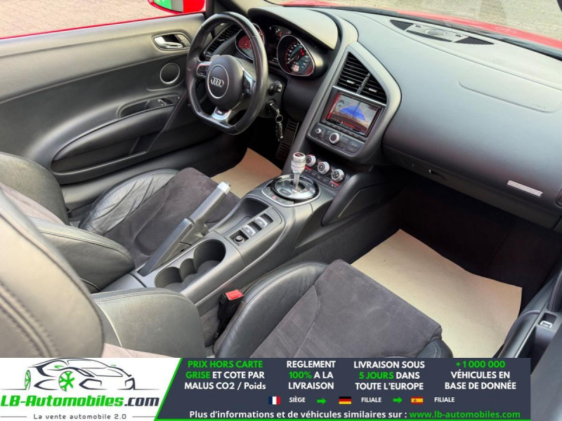 Référence : 1135841 Vos Avantages chez LB-AUTOMOBILES.com / Prix affiché TTC Livré hors carte grise / Livraison sous 10 jours dans toute la France hors 31 / Pas d?avance de frais paiement du véhicule 100% à la livraison par virement. Audi R8 Spyder Neuf remisée, Audi R8 Spyder Occasion Toulouse Beaupuy 31850, Audi R8 Spyder Véhicule sorti de réseau collaborateur, Audi R8 Spyder import, Audi R8 Spyder importateur, Audi R8 Spyder Livraison possible dans toute la France sous 5 jours, Audi R8 Spyder, Audi R8 Spyder Location Option Achat, Audi R8 Spyder LLD, Audi R8 Spyder Longue Durée, Audi R8 Spyder TVA récupérable. Possibilité d'extension de garantie 12, 24,36 mois, Pour tout autres voitures import neufs ou occasions collaborateur fortement remisée, Mandataire Audi, Mandataire BMW, Mandataire Volkswagen, Mandataire Mercedes, Mandataire Peugeot Espagne, Mandataire Renault Espagne, Porsche import, Mandataire Citroën Espagne, Mandataire Seat Espagne, n'hésitez pas à nous contacter. « Sous réserve de vente préalable et erreur de saisie » Principaux équipements : - 4x4 - ABS - Accoudoir - Antidémarrage - Assistance de démarrage en côte - Bluetooth - Boîte de vitesses robotisée - Capteur de lumière - Capteur de pluie - Carnet d'entretien - Contrôle de la pression des pneus - Direction assistée - Éclairage adaptatif de virage - Éclairage d'ambiance - ESP - Fermeture centralisée - Feux de jour LED - Garantie - GPS - Grille de protection pour coffre - Isofix - Jantes alliage - Kit de préparation pour système de navigation - Kit mains libres - Lecteur CD - Ordinateur de bord - Pack sport - Phares LED - Pneus été - Réglage électrique des sièges - Régulateur de vitesse - Rétroviseur extérieur électrique - Sièges chauffants - Sièges sport - Suspension adaptative - Suspension pneumatique - Suspension sport - Système antipatinage - Système d'alarme - Système de nettoyage des phares - Système de sonorisation - Véhicule non-fumeur - Vitres électriques - Vitres teintées - Volant en cuir - Volant multifonction