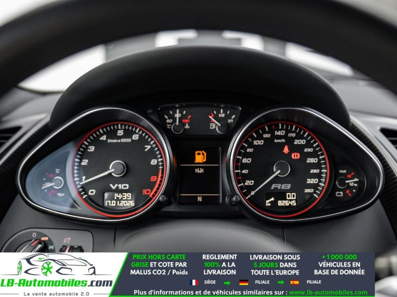 Référence : 1135840 Vos Avantages chez LB-AUTOMOBILES.com / Prix affiché TTC Livré hors carte grise / Livraison sous 10 jours dans toute la France hors 31 / Pas d?avance de frais paiement du véhicule 100% à la livraison par virement. Audi R8 Spyder Neuf remisée, Audi R8 Spyder Occasion Toulouse Beaupuy 31850, Audi R8 Spyder Véhicule sorti de réseau collaborateur, Audi R8 Spyder import, Audi R8 Spyder importateur, Audi R8 Spyder Livraison possible dans toute la France sous 5 jours, Audi R8 Spyder, Audi R8 Spyder Location Option Achat, Audi R8 Spyder LLD, Audi R8 Spyder Longue Durée, Audi R8 Spyder TVA récupérable. Possibilité d'extension de garantie 12, 24,36 mois, Pour tout autres voitures import neufs ou occasions collaborateur fortement remisée, Mandataire Audi, Mandataire BMW, Mandataire Volkswagen, Mandataire Mercedes, Mandataire Peugeot Espagne, Mandataire Renault Espagne, Porsche import, Mandataire Citroën Espagne, Mandataire Seat Espagne, n'hésitez pas à nous contacter. « Sous réserve de vente préalable et erreur de saisie » Principaux équipements : - 4x4 - ABS - Accoudoir - Antidémarrage - Assistance de démarrage en côte - Bluetooth - Boîte de vitesses robotisée - Capteur de lumière - Capteur de pluie - Carnet d'entretien - Commande vocale - Direction assistée - Éclairage adaptatif - ESP - Fermeture centralisée - Feux de jour LED - GPS - Jantes alliage - Kit de préparation pour système de navigation - Kit de réparation d'urgence des pneus - Kit mains libres - Lecteur CD - Ordinateur de bord - Package hiver - Pack fumeur - Pack sport - Phares LED - Pneus été - Réglage électrique des sièges - Régulateur de vitesse - Rétroviseur extérieur électrique - Rétroviseur intérieur anti-éblouissement automatique - Rétroviseurs extérieurs rabattables électriquement - Révision complète - Sièges chauffants - Sièges sport - Support lombaire - Suspension adaptative - Suspension sport - Système antipatinage - Système d'alarme - Système de limitation de la vitesse - Système de sonorisation - Tuner/radio - Véhicule non-fumeur - Vitres électriques - Volant en cuir - Volant multifonction