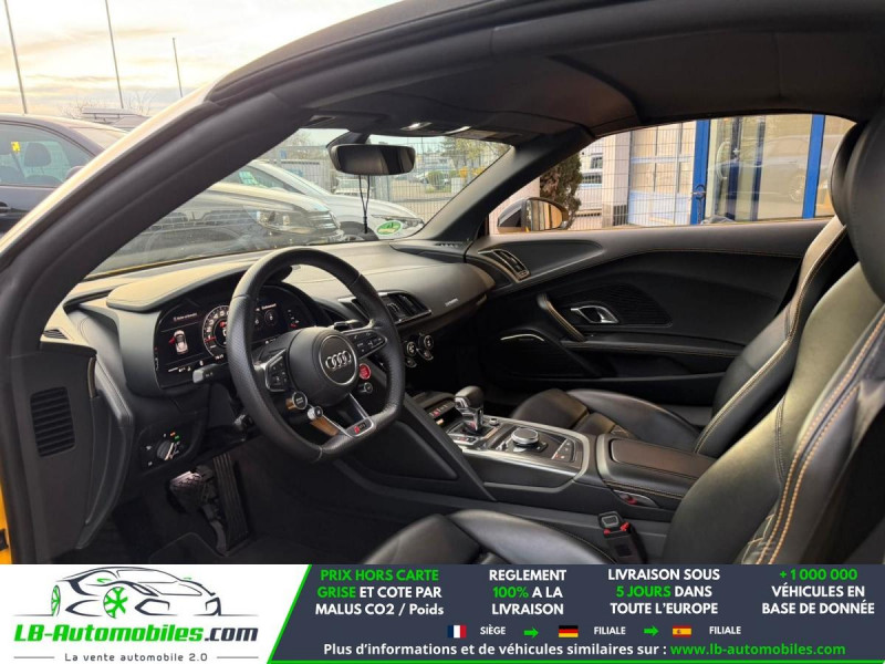 Référence : 1190088 Vos Avantages chez LB-AUTOMOBILES.com / Prix affiché TTC Livré hors carte grise / Livraison sous 10 jours dans toute la France hors 31 / Pas d?avance de frais paiement du véhicule 100% à la livraison par virement. Audi R8 Spyder Neuf remisée, Audi R8 Spyder Occasion Toulouse Beaupuy 31850, Audi R8 Spyder Véhicule sorti de réseau collaborateur, Audi R8 Spyder import, Audi R8 Spyder importateur, Audi R8 Spyder Livraison possible dans toute la France sous 5 jours, Audi R8 Spyder, Audi R8 Spyder Location Option Achat, Audi R8 Spyder LLD, Audi R8 Spyder Longue Durée, Audi R8 Spyder TVA récupérable. Possibilité d'extension de garantie 12, 24,36 mois, Pour tout autres voitures import neufs ou occasions collaborateur fortement remisée, Mandataire Audi, Mandataire BMW, Mandataire Volkswagen, Mandataire Mercedes, Mandataire Peugeot Espagne, Mandataire Renault Espagne, Porsche import, Mandataire Citroën Espagne, Mandataire Seat Espagne, n'hésitez pas à nous contacter. « Sous réserve de vente préalable et erreur de saisie » Principaux équipements : - 4x4 - ABS - Accoudoir - Android Auto - Antidémarrage - Apple CarPlay - Assistance au freinage d'urgence - Assistant d'angle mort - Assistant feux de route - Avertisseur de franchissement de ligne - Bluetooth - Boîte de vitesses robotisée - Capteur de lumière - Capteur de pluie - Chargement par induction pour smartphones - Chargeur CD - Cockpit numérique - Commande vocale - Contrôle de la pression des pneus - Direction assistée - Éclairage adaptatif de virage - Éclairage d'ambiance - Éclairage route non éblouissant - ESP - Fermeture centralisée - Feux de jour LED - GPS - Hayon électrique - Isofix - Jantes alliage - Kit de préparation pour système de navigation - Kit de réparation d'urgence des pneus - Kit mains libres - Lecteur CD - Ordinateur de bord - Pack sport - Phare antibrouillard - Phares laser - Pneus été - Port USB - Radio DAB - Réglage électrique des sièges - Régulateur de vitesse adaptatif - Rétroviseur extérieur électrique - Rétroviseur intérieur anti-éblouissement automatique - Rétroviseurs extérieurs rabattables électriquement - Révision complète - Sièges chauffants - Sièges sport - Support lombaire - Suspension sport - Système antipatinage - Système d'alarme - Système d'appel d'urgence - Système d'avertissement de la distance - Système de détection de la fatigue - Système de limitation de la vitesse - Système de reconnaissance des panneaux de signalisation - Système de sonorisation - Système Stop & Start - Tuner/radio - Verrouillage centralisé sans clé - Vitre chauffante - Vitres électriques - Vitres teintées - Volant en cuir - Volant multifonction