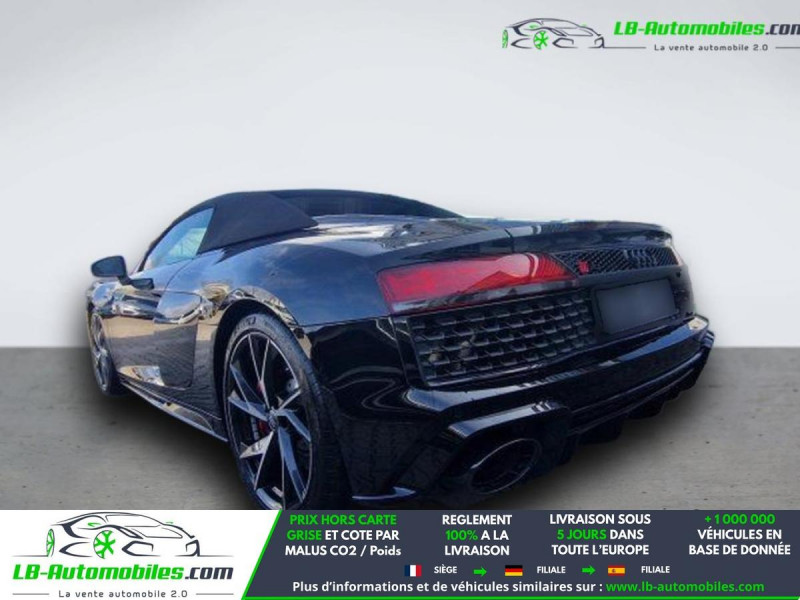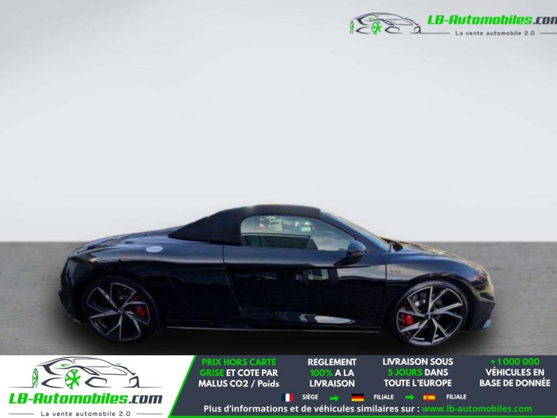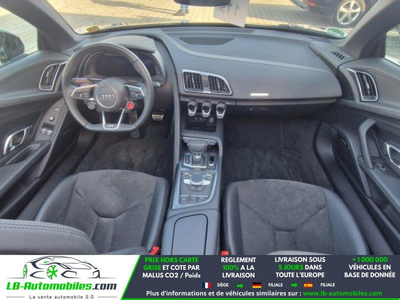 Référence : 1190072 Vos Avantages chez LB-AUTOMOBILES.com / Prix affiché TTC Livré hors carte grise / Livraison sous 10 jours dans toute la France hors 31 / Pas d?avance de frais paiement du véhicule 100% à la livraison par virement. Audi R8 Spyder Neuf remisée, Audi R8 Spyder Occasion Toulouse Beaupuy 31850, Audi R8 Spyder Véhicule sorti de réseau collaborateur, Audi R8 Spyder import, Audi R8 Spyder importateur, Audi R8 Spyder Livraison possible dans toute la France sous 5 jours, Audi R8 Spyder, Audi R8 Spyder Location Option Achat, Audi R8 Spyder LLD, Audi R8 Spyder Longue Durée, Audi R8 Spyder TVA récupérable. Possibilité d'extension de garantie 12, 24,36 mois, Pour tout autres voitures import neufs ou occasions collaborateur fortement remisée, Mandataire Audi, Mandataire BMW, Mandataire Volkswagen, Mandataire Mercedes, Mandataire Peugeot Espagne, Mandataire Renault Espagne, Porsche import, Mandataire Citroën Espagne, Mandataire Seat Espagne, n'hésitez pas à nous contacter. « Sous réserve de vente préalable et erreur de saisie » Principaux équipements : - ABS - Android Auto - Antidémarrage - Apple CarPlay - Assistant feux de route - Bluetooth - Boîte de vitesses robotisée - Capteur de lumière - Capteur de pluie - Carnet d'entretien - Chargement par induction pour smartphones - Cockpit numérique - Commande vocale - Contrôle de la pression des pneus - Diesel avec filtre à particules - Direction assistée - Écran tactile - ESP - Fermeture centralisée - Feux de jour LED - Garantie - GPS - Isofix - Jantes alliage - Kit mains libres - Ordinateur de bord - Package hiver - Phare antibrouillard - Phares laser - Pneus été - Port USB - Propulsion - Radio DAB - Réglage électrique des sièges - Régulateur de vitesse - Rétroviseur extérieur électrique - Rétroviseur intérieur anti-éblouissement automatique - Rétroviseurs extérieurs rabattables électriquement - Sièges chauffants - Sièges sport - Streaming musical intégré - Support lombaire - Système antipatinage - Système d'alarme - Système de limitation de la vitesse - Système de sonorisation - Système Stop & Start - Tuner/radio - Véhicule non-fumeur - Verrouillage centralisé sans clé - Vitres électriques - Volant en cuir - Volant multifonction