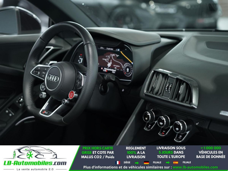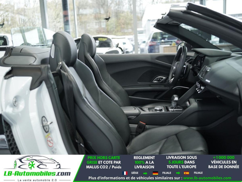 Référence : 1209843 Vos Avantages chez LB-AUTOMOBILES.com / Prix affiché TTC Livré hors carte grise / Livraison sous 10 jours dans toute la France hors 31 / Pas d?avance de frais paiement du véhicule 100% à la livraison par virement. Audi R8 Spyder Neuf remisée, Audi R8 Spyder Occasion Toulouse Beaupuy 31850, Audi R8 Spyder Véhicule sorti de réseau collaborateur, Audi R8 Spyder import, Audi R8 Spyder importateur, Audi R8 Spyder Livraison possible dans toute la France sous 5 jours, Audi R8 Spyder, Audi R8 Spyder Location Option Achat, Audi R8 Spyder LLD, Audi R8 Spyder Longue Durée, Audi R8 Spyder TVA récupérable. Possibilité d'extension de garantie 12, 24,36 mois, Pour tout autres voitures import neufs ou occasions collaborateur fortement remisée, Mandataire Audi, Mandataire BMW, Mandataire Volkswagen, Mandataire Mercedes, Mandataire Peugeot Espagne, Mandataire Renault Espagne, Porsche import, Mandataire Citroën Espagne, Mandataire Seat Espagne, n'hésitez pas à nous contacter. « Sous réserve de vente préalable et erreur de saisie » Principaux équipements : - 4x4 - ABS - Accoudoir - Antidémarrage - Assistance de démarrage en côte - Assistant feux de route - Bluetooth - Boîte de vitesses robotisée - Capteur de lumière - Capteur de pluie - Carnet d'entretien - Chargement par induction pour smartphones - Cockpit numérique - Commande vocale - Contrôle de la pression des pneus - Direction assistée - Éclairage adaptatif de virage - Écran tactile - ESP - Fermeture centralisée - Feux de jour LED - Garantie - GPS - Grille de protection pour coffre - Isofix - Jantes alliage - Kit mains libres - Ordinateur de bord - Pack sport - Phare antibrouillard - Phares LED - Pneus été - Port USB - Radio DAB - Réglage électrique des sièges - Réglage électrique des sièges avec fonction mémoire - Régulateur de vitesse - Rétroviseur extérieur électrique - Rétroviseur intérieur anti-éblouissement automatique - Sièges chauffants - Sièges sport - Support lombaire - Suspension adaptative - Suspension sport - Système antipatinage - Système d'alarme - Système de limitation de la vitesse - Système de reconnaissance des panneaux de signalisation - Système de sonorisation - Système Stop & Start - Tuner/radio - Véhicule non-fumeur - Verrouillage centralisé sans clé - Vitres électriques - Vitres teintées - Volant en cuir - Volant multifonction