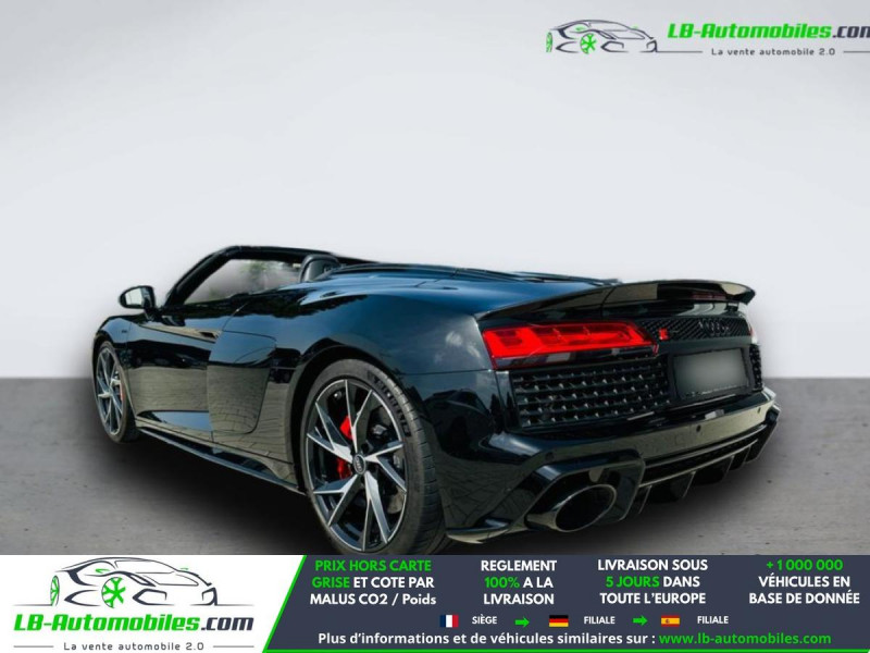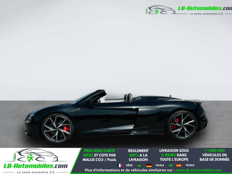 Référence : 1212886 Vos Avantages chez LB-AUTOMOBILES.com / Prix affiché TTC Livré hors carte grise / Livraison sous 10 jours dans toute la France hors 31 / Pas d?avance de frais paiement du véhicule 100% à la livraison par virement. Audi R8 Spyder Neuf remisée, Audi R8 Spyder Occasion Toulouse Beaupuy 31850, Audi R8 Spyder Véhicule sorti de réseau collaborateur, Audi R8 Spyder import, Audi R8 Spyder importateur, Audi R8 Spyder Livraison possible dans toute la France sous 5 jours, Audi R8 Spyder, Audi R8 Spyder Location Option Achat, Audi R8 Spyder LLD, Audi R8 Spyder Longue Durée, Audi R8 Spyder TVA récupérable. Possibilité d'extension de garantie 12, 24,36 mois, Pour tout autres voitures import neufs ou occasions collaborateur fortement remisée, Mandataire Audi, Mandataire BMW, Mandataire Volkswagen, Mandataire Mercedes, Mandataire Peugeot Espagne, Mandataire Renault Espagne, Porsche import, Mandataire Citroën Espagne, Mandataire Seat Espagne, n'hésitez pas à nous contacter. « Sous réserve de vente préalable et erreur de saisie » Principaux équipements : - 4x4 - ABS - Accoudoir - Android Auto - Antidémarrage - Apple CarPlay - Assistance de démarrage en côte - Assistant feux de route - Bluetooth - Boîte de vitesses robotisée - Capteur de lumière - Capteur de pluie - Carnet d'entretien - Chargement par induction pour smartphones - Cockpit numérique - Commande vocale - Contrôle de la pression des pneus - Direction assistée - Éclairage adaptatif de virage - Éclairage d'ambiance - Éclairage route non éblouissant - ESP - Fermeture centralisée - Feux de jour LED - Garantie - GPS - Isofix - Jantes alliage - Kit mains libres - Ordinateur de bord - Pack sport - Phares LED - Pneus été - Port USB - Radio DAB - Réglage électrique des sièges - Réglage électrique des sièges avec fonction mémoire - Régulateur de vitesse - Rétroviseur extérieur électrique - Rétroviseur intérieur anti-éblouissement automatique - Rétroviseurs extérieurs rabattables électriquement - Révision complète - Sièges chauffants - Sièges sport - Streaming musical intégré - Support lombaire - Suspension sport - Système antipatinage - Système d'alarme - Système d'appel d'urgence - Système de détection de la fatigue - Système de limitation de la vitesse - Système de reconnaissance des panneaux de signalisation - Système de sonorisation - Système Stop & Start - Tuner/radio - Véhicule non-fumeur - Verrouillage centralisé sans clé - Vitres électriques - Volant en cuir - Volant multifonction