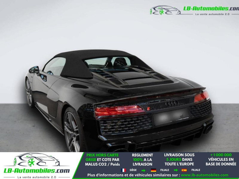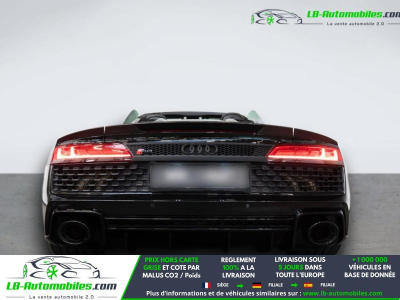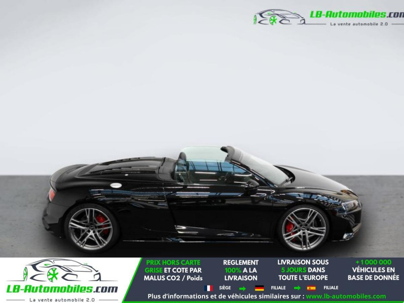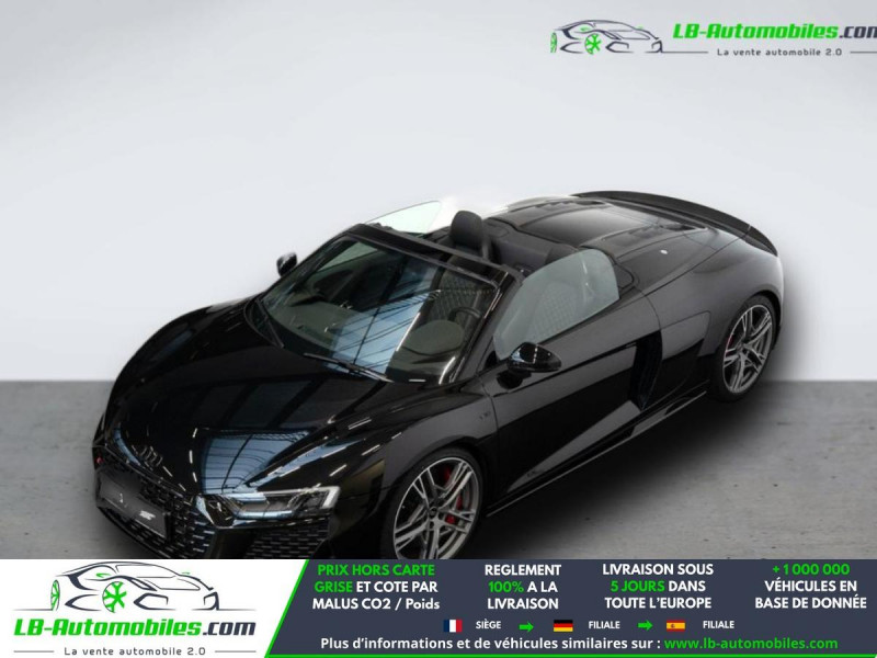 Référence : 1205262 Vos Avantages chez LB-AUTOMOBILES.com / Prix affiché TTC Livré hors carte grise / Livraison sous 10 jours dans toute la France hors 31 / Pas d?avance de frais paiement du véhicule 100% à la livraison par virement. Audi R8 Spyder Neuf remisée, Audi R8 Spyder Occasion Toulouse Beaupuy 31850, Audi R8 Spyder Véhicule sorti de réseau collaborateur, Audi R8 Spyder import, Audi R8 Spyder importateur, Audi R8 Spyder Livraison possible dans toute la France sous 5 jours, Audi R8 Spyder, Audi R8 Spyder Location Option Achat, Audi R8 Spyder LLD, Audi R8 Spyder Longue Durée, Audi R8 Spyder TVA récupérable. Possibilité d'extension de garantie 12, 24,36 mois, Pour tout autres voitures import neufs ou occasions collaborateur fortement remisée, Mandataire Audi, Mandataire BMW, Mandataire Volkswagen, Mandataire Mercedes, Mandataire Peugeot Espagne, Mandataire Renault Espagne, Porsche import, Mandataire Citroën Espagne, Mandataire Seat Espagne, n'hésitez pas à nous contacter. « Sous réserve de vente préalable et erreur de saisie » Principaux équipements : - 4x4 - ABS - Accoudoir - Android Auto - Antidémarrage - Apple CarPlay - Assistance de démarrage en côte - Bluetooth - Boîte de vitesses robotisée - Capteur de lumière - Capteur de pluie - Carnet d'entretien - Cockpit numérique - Commande vocale - Contrôle de la pression des pneus - Direction assistée - Écran tactile - ESP - Fermeture centralisée - Feux de jour - Garantie - GPS - Jantes alliage - Kit mains libres - Ordinateur de bord - Pack fumeur - Pack sport - Port USB - Radio DAB - Réglage électrique des sièges - Régulateur de vitesse - Rétroviseur extérieur électrique - Rétroviseur intérieur anti-éblouissement automatique - Rétroviseurs extérieurs rabattables électriquement - Sièges chauffants - Sièges sport - Support lombaire - Suspension adaptative - Suspension sport - Système d'alarme - Système d'appel d'urgence - Système de sonorisation - Système Stop & Start - Tuner/radio - Véhicule non-fumeur - Verrouillage centralisé sans clé - Vitres électriques - Volant en cuir - Volant multifonction