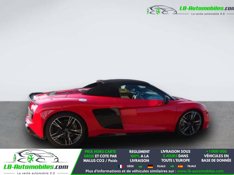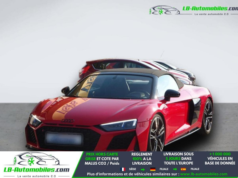 Référence : 1205257 Vos Avantages chez LB-AUTOMOBILES.com / Prix affiché TTC Livré hors carte grise / Livraison sous 10 jours dans toute la France hors 31 / Pas d?avance de frais paiement du véhicule 100% à la livraison par virement. Audi R8 Spyder Neuf remisée, Audi R8 Spyder Occasion Toulouse Beaupuy 31850, Audi R8 Spyder Véhicule sorti de réseau collaborateur, Audi R8 Spyder import, Audi R8 Spyder importateur, Audi R8 Spyder Livraison possible dans toute la France sous 5 jours, Audi R8 Spyder, Audi R8 Spyder Location Option Achat, Audi R8 Spyder LLD, Audi R8 Spyder Longue Durée, Audi R8 Spyder TVA récupérable. Possibilité d'extension de garantie 12, 24,36 mois, Pour tout autres voitures import neufs ou occasions collaborateur fortement remisée, Mandataire Audi, Mandataire BMW, Mandataire Volkswagen, Mandataire Mercedes, Mandataire Peugeot Espagne, Mandataire Renault Espagne, Porsche import, Mandataire Citroën Espagne, Mandataire Seat Espagne, n'hésitez pas à nous contacter. « Sous réserve de vente préalable et erreur de saisie » Principaux équipements : - 4x4 - ABS - Accoudoir - Android Auto - Antidémarrage - Apple CarPlay - Assistance au freinage d'urgence - Assistance de démarrage en côte - Assistant feux de route - Bluetooth - Boîte de vitesses robotisée - Capteur de lumière - Capteur de pluie - Chargement par induction pour smartphones - Cockpit numérique - Commande vocale - Contrôle de la pression des pneus - Diesel avec filtre à particules - Direction assistée - Éclairage d'ambiance - Écran tactile - ESP - Fermeture centralisée - Feux de jour LED - GPS - Jantes alliage - Kit mains libres - Ordinateur de bord - Pack sport - Phare antibrouillard - Phares laser - Port USB - Radio DAB - Réglage électrique des sièges - Réglage électrique des sièges avec fonction mémoire - Régulateur de vitesse - Rétroviseur extérieur électrique - Rétroviseur intérieur anti-éblouissement automatique - Rétroviseurs extérieurs rabattables électriquement - Sièges chauffants - Sièges sport - Streaming musical intégré - Support lombaire - Suspension adaptative - Suspension sport - Système antipatinage - Système d'alarme - Système d'appel d'urgence - Système de limitation de la vitesse - Système de sonorisation - Système Stop & Start - Tuner/radio - Verrouillage centralisé sans clé - Vitres électriques - Volant en cuir - Volant multifonction - WLAN / point d'accès Wi-Fi