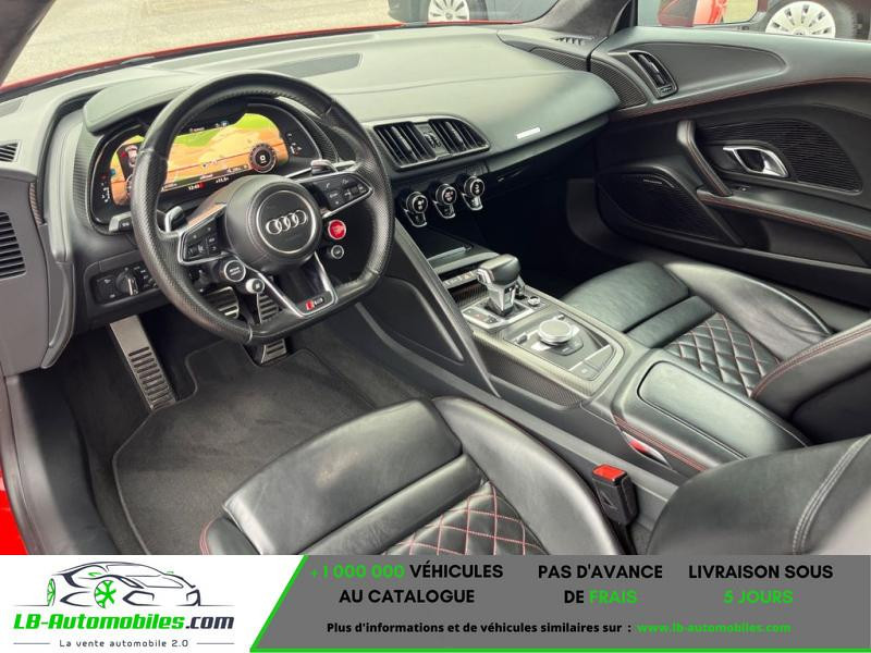 Référence : 997473 Vos Avantages chez LB-AUTOMOBILES.com / Prix affiché TTC Livré hors carte grise / Livraison sous 10 jours dans toute la France hors 31 / Pas d?avance de frais paiement du véhicule 100% à la livraison par virement. Audi R8 Neuf remisée, Audi R8 Occasion Toulouse Beaupuy 31850, Audi R8 Véhicule sorti de réseau collaborateur, Audi R8 import, Audi R8 importateur, Audi R8 Livraison possible dans toute la France sous 5 jours, Audi R8, Audi R8 Location Option Achat, Audi R8 LLD, Audi R8 Longue Durée, Audi R8 TVA récupérable. Possibilité d'extension de garantie 12, 24,36 mois, Pour tout autres voitures import neufs ou occasions collaborateur fortement remisée, Mandataire Audi, Mandataire BMW, Mandataire Volkswagen, Mandataire Mercedes, Mandataire Peugeot Espagne, Mandataire Renault Espagne, Porsche import, Mandataire Citroën Espagne, Mandataire Seat Espagne, n'hésitez pas à nous contacter. « Sous réserve de vente préalable et erreur de saisie » Principaux équipements : - 4x4 - ABS - Accoudoir - Airbags frontaux et latéraux et autres - Antidémarrage - Assistance de démarrage en côte - Assistant feux de route - Bluetooth - Boîte de vitesses robotisée - Capteur de lumière - Capteur de pluie - Carnet d'entretien - Chargeur CD - Climatisation automatique bizone - Cockpit numérique - Commande vocale - Contrôle de la pression des pneus - Direction assistée - Éclairage adaptatif de virage - ESP - Fermeture centralisée - Feux de jour LED - GPS - Isofix - Jantes alliage - Kit de réparation d'urgence des pneus - Kit mains libres - Lecteur CD - Ordinateur de bord - Pack sport - Phare antibrouillard - Phares laser - Pneus été - Port USB - Radio DAB - Réglage électrique des sièges - Régulateur de vitesse - Rétroviseur extérieur électrique - Rétroviseur intérieur anti-éblouissement automatique - Rétroviseurs extérieurs rabattables électriquement - Révision complète - Sièges chauffants - Sièges sport - Support lombaire - Suspension adaptative - Suspension sport - Système antipatinage - Système d'alarme - Système d'appel d'urgence - Système de reconnaissance des panneaux de signalisation - Système de sonorisation - Système Stop & Start - Tuner/radio - Véhicule non-fumeur - Verrouillage centralisé sans clé - Vitres électriques - Vitres teintées - Volant en cuir - Volant multifonction - Radar de recul : Arrière, Appareil photo, Avant - Première main : Non