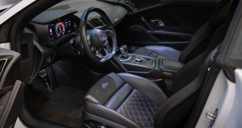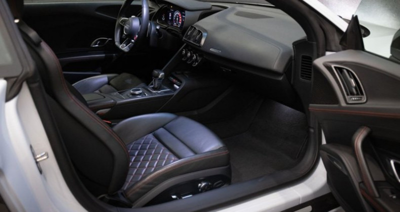 Modèle : R8 V10 Plus 5.2 FSI 610 cv S-Tronic 7 Quattro Couleur : Gris Suzuka Métallisé Intérieur : Sellerie tout cuir Noir Diamand avec surpiqures rouge M.E.C : 03/03/2016 Kilométrage : 28 930 kms Boite de vitesse : S-Tronic 7 Options : Extérieur : - Audi Magnetic Ride - Pack Extérieur Carbone brillant - Diffuseur Arrière en Carbone - Aileron en Carbone - Compartiment moteur en Carbone - Rétroviseurs extérieurs en Carbone - SideBlades en Carbone - Jantes forgées style 5 branches finition titane mat et polies brillant 19’’ - Freins céramique RS - Étriers de frein peint en Gris Anthracite - Aide au stationnement avant et arrière avec caméra de recul - Clignotants dynamiques - Rétroviseurs intérieur et extérieur à permutation jour/ nuit automatique - Système de contrôle de la pression des pneus Intérieur : - Sièges Sport réglables électriquement et a mémoire - Sièges chauffants - Audi Drive Select - Audi Premium Tracking Système - Virtual cockpit - Système audio Bang et Olufsen - Pack Carbone brillant intérieur - Console centrale en Carbone brillant - Buses d’aération en Carbone brillant - Contour de compteur en Carbone brillant - Pack Cuir Étendu - Tableau de bord en cuir - Accoudoir de portières en cuir - Cache airbag sur le volant en cuir - Partie inférieure de la console centrale en cuir - Volant Performance multifonction plus en cuir - Régulateur de vitesse - Ouverture et démarrage sans clefs (Clé Confort) - Pack éclairage - Ciel de toit en Noir - Pédalier en acier inoxydable - Tapis de sol Entretien et autres : - Véhicule vendu neuf par une concession Française - Révision faites avant la livraison - Véhicule non-fumeur - Doubles des clefs Véhicule garantie 12 mois. Nous proposons plusieurs solutions de financement avec possibilité d’extension de garantie. Prix de vente : 127 900 € TTC Autres modèles : Turbo, Targa, Spyder, 992, 991 Véhicule visible au showroom uniquement sur rendez-vous. Annonce non contractuelle, des erreurs ayant pu se glisser malencontreusement.