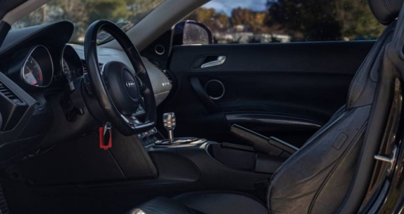 Vous voulez la sportive de chez AUDI ! Bienvenue chez FAP Automobile ! Offrez-vous la légende des anneaux. L’Audi R8 V8 de 2007, c’est 420 chevaux tirés d’un moteur atmosphérique 4.2L, couplé à une boîte S-Tronic ultra-rapide et à une transmission intégrale Quattro pour une motricité parfaite. Son châssis affûté en aluminium, ses suspensions sport pilotées et son freinage haute performance offrent une précision redoutable. À la croisée du luxe et de la performance pure, cette Audi R8 n’attend plus que vous. Caractéristiques principales : Modèle : AUDI R8 QUATTRO V8 Année : 2007 Nombre de portes : 2 Nombre de places : 2 Kilométrage : 84 522 KM Carburant : Essence Boîte de vitesse : Automatique Puissance DIN : 420 CH Options et équipements : Extérieur: Échappements à double sorties Jantes aluminium Phares xénon Antibrouillard avant Feux automatique Rétroviseurs extérieurs chauffants Ligne INOX Étriers de frein jaune fluo Intérieur: Sièges en cuir Consolle centrale Volant en cuir Coffre à l'avant du véhicule Volant multi-fonction Tableau de bord cuir 7 haut parleurs Air conditionné 1 zone Ordinateur de bord Réglage du volant en hauteur Réglage du volant en profondeur Rétroviseur jour / nuit Système audio DVD inclut Système audio CD et DVD inclut Mode sport Sécurité: ABS ESP Anti-patinage Indicateur de sous-gonflage des pneumatiques Régulateur de vitesse Limiteur de vitesse Autres information: Carnet d'entretien à jour Véhicule garantie 12 mois N'hésitez pas. Si vous souhaitez acquérir cette magnifique Audi R8, prenez dès à présent un rendez-vous chez FAP AUTOMOBILE à Gréasque A très bientôt. L'équipe FAP Automobile