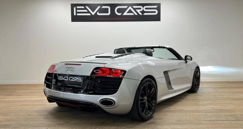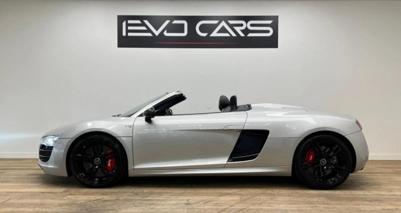 OPTIONS : - Système audio Bang & Olufsen - Sièges AV Sport électriques/ chauffants - Sièges en Cuir Nappa surpiqures rouges - Radars de stationnement AV et AR - Système de Navigation Plus MMI - Audi Magnetic Ride - Freins céramique - Echappement CAPRISTO avec télécommande - Kit mains-libres Bluetooth - Régulateur de vitesse - Volant Sport R8 multifonction 3 branches - Commandes vocales - Inserts de porte carbone - Inserts de tableau de bord carbone - Pommeau de levier de vitesse en aluminium - Pédalier en aluminium - Rétroviseurs extérieurs électriques/ dégivrants - Capteur de luminosité - Capteur de pluie - Système de contrôle état des pneus - Jantes 10 branches polies R 19 - Couleur carrosserie Argent Glacier métallisé ENTRETIENS : - Suivi Complet Audi - Dernier Entretien vidange + filtres + Amortisseurs à 57 873 km 29/01/2025 chez Audi Dijon - PPF XPEL Complet sur le véhicule - Traitement céramique sur les jantes INFORMATIONS : - Immatriculation Française - Double de clé ==================================== Bienvenue chez EvoCars, Nous sommes fiers de vous présenter une sélection exclusive de véhicules sportifs et premium, alliant puissance et élégance. Chaque véhicule de notre stock a été rigoureusement inspecté et soigneusement entretenu pour garantir une qualité exceptionnelle et une satisfaction totale. Les véhicules sont visibles SUR RENDEZ-VOUS, une garantie légal de 6 mois (voir conditions avec un vendeur) est automatiquement inclut dans le prix de vente, leurs tarifs sont hors frais de services et nous pouvons proposer des extensions de garantie allant jusqu'à 48 mois. Financement possible en crédit classique ou en LOA sur demande. La livraison de votre véhicule est possible nationalement (sur devis). N'hésitez pas à nous contacter pour plus informations. Nous sommes à 3 minutes de la sortie d'autoroute de Villefranche-sur-Saone Nord au 731 Rue de la Farnière, 69400 à Gleizé. L'équipe EvoCars Lyon Cylindrée : 5204 cm3 NB. Places : 2
