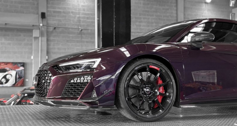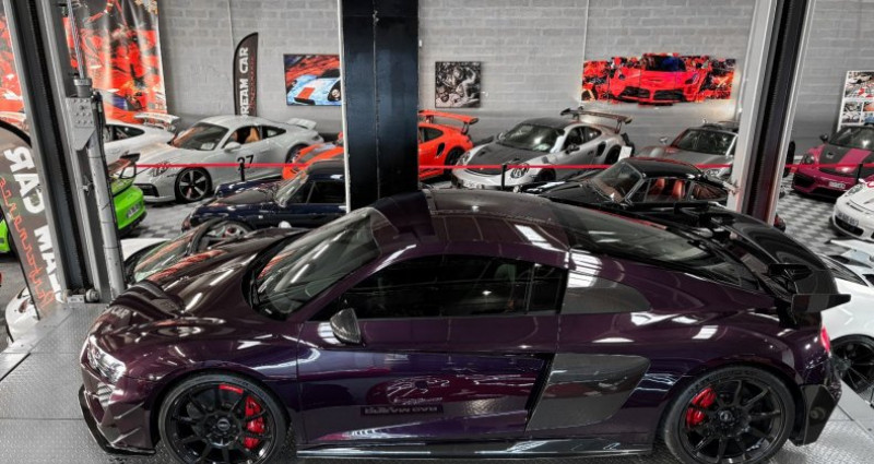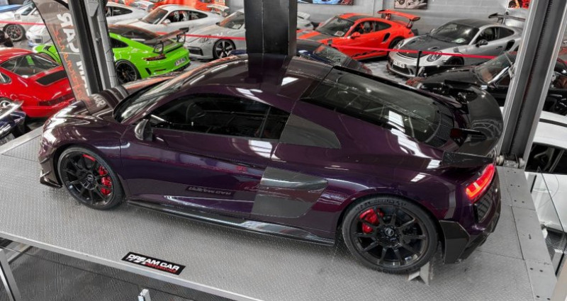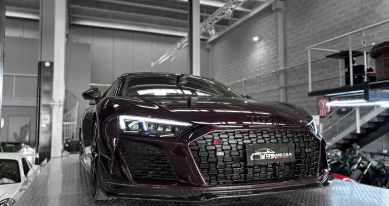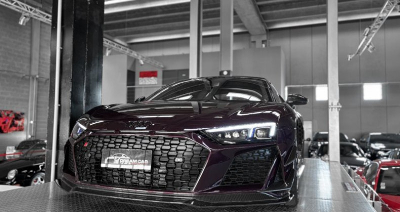 AUDI R8 GT V10 5.2 620 - AUDI EXCLUSIVE - 333 exemplaires Année : 2023 Mise en circulation : 30/08/2023 Kilométrage : 8000 Kms Boîte de vitesse : Automatique Energie : Essence Puissance fiscale : 56 Cv Puissance din : 620 Ch Couleur extérieur : Merlin Purple Couleur intérieur : Cuir / Alcantara noir surpiqure rouge Nombre de portes : 2 Nombre de places : 2 Garantie : 12 mois Le modèle présenté ici dans une très belle configuration est un des 333 exemplaires de la dernière Audi R8 produite la GT, dans une teinte Merlin Purple en option Audi Exclusive. Une transmission arrière propulsion, un aérodynamisme exceptionnel, et un look très exclusif directement inspiré de la compétition automobile pour cette édition limitée en font d’elle une auto redoutable. Elle bénéficie d’un film de protection transparent (PPF) sur la face avant les rétroviseurs et toutes les pièces en carbone extérieur. OPTIONS ET EQUIPEMENTS : Teinte Audi exclusive : Merlin Purple Pack Cuir Pack vide poches Pack Style étendu avec anneaux Audi et monogrammes en Noir Brillant, Audi exclusive Pack Style en Carbone Brillant Audi exclusive Pack éclairage ambiance Jantes noires 20’’ à 10 branches Projecteurs à LED assombris, avec clignotants séquentiels et éclairage laser Audi Freins carbone céramique avec étriers de frein en Rouge Brillant Sièges baquets R8 chauffants Volant PERFORMANCE en cuir multifonctions plus Ciel de pavillon en Alcantara Noir Système d'aide au stationnement Plus avec caméra de recul Seuil de porte en carbone brillant avec insert aluminium éclairé Audi exclusive Boîtier des rétroviseurs extérieurs en carbone Brillant, Audi exclusive Compartiment moteur en carbone Brillant Sideblades en carbone Brillant Inserts décoratifs étendus en carbone brillant Pédalier en acier Vitrage athermique Bordures des sorties d'air en Noir Anthracite Mat AUDI virtual cockpit MMI navigation plus avec MMI touch Apple Car Play / Android Auto Régulateur de vitesse Régulation des feux de route … Prix : 174 917 € HT // 209 900 € TTC Pour plus d’informations, nous contacter. Véhicule disponible sur rendez-vous uniquement chez : DREAM CAR PERFORMANCE 39 Allée des géomètres 06700 Saint-Laurent du Var Showroom ouvert du lundi au vendredi de 10h à 12h et de 14h à 18h. Livraison par camion fermé disponible à travers le monde sur demande. M. OGER Nicolas WhatsApp Disponible + 33 (0) 7 48 88 85 83 + 33 (0) 4 97 22 28 28 [email protected]