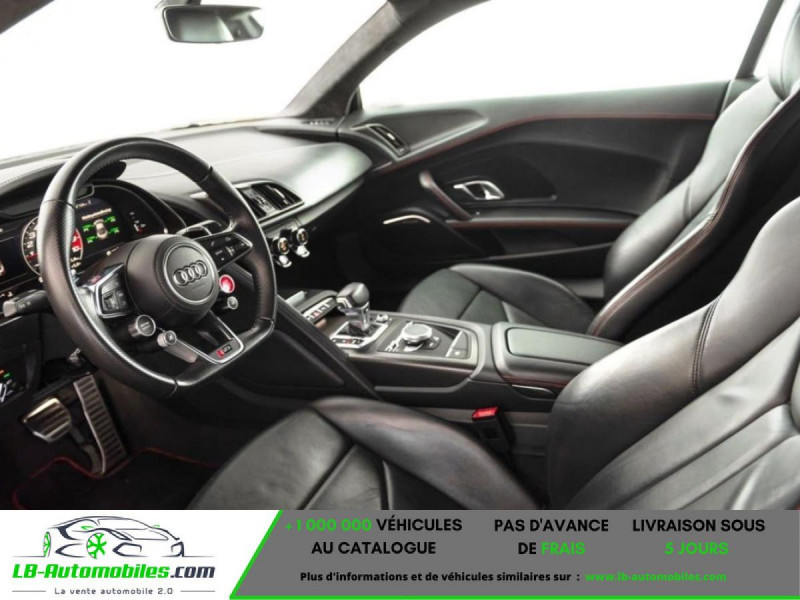 Référence : 1081391 Vos Avantages chez LB-AUTOMOBILES.com / Prix affiché TTC Livré hors carte grise / Livraison sous 10 jours dans toute la France hors 31 / Pas d?avance de frais paiement du véhicule 100% à la livraison par virement. Audi R8 Neuf remisée, Audi R8 Occasion Toulouse Beaupuy 31850, Audi R8 Véhicule sorti de réseau collaborateur, Audi R8 import, Audi R8 importateur, Audi R8 Livraison possible dans toute la France sous 5 jours, Audi R8, Audi R8 Location Option Achat, Audi R8 LLD, Audi R8 Longue Durée, Audi R8 TVA récupérable. Possibilité d'extension de garantie 12, 24,36 mois, Pour tout autres voitures import neufs ou occasions collaborateur fortement remisée, Mandataire Audi, Mandataire BMW, Mandataire Volkswagen, Mandataire Mercedes, Mandataire Peugeot Espagne, Mandataire Renault Espagne, Porsche import, Mandataire Citroën Espagne, Mandataire Seat Espagne, n'hésitez pas à nous contacter. « Sous réserve de vente préalable et erreur de saisie » Principaux équipements : - 4x4 - ABS - Accoudoir - Android Auto - Antidémarrage - Apple CarPlay - Assistance au freinage d'urgence - Assistance de démarrage en côte - Assistant d'angle mort - Assistant de sortie de stationnement - Assistant feux de route - Avertisseur de franchissement de ligne - Bluetooth - Boîte de vitesses robotisée - Capteur de lumière - Capteur de pluie - Carnet d'entretien - Chargement par induction pour smartphones - Cockpit numérique - Commande vocale - Contrôle de la pression des pneus - Direction assistée - Éclairage adaptatif - Éclairage d'ambiance - Éclairage route non éblouissant - Écran tactile - ESP - Fermeture centralisée - Feux de jour LED - GPS - Grille de protection pour coffre - Isofix - Jantes alliage - Kit de préparation pour système de navigation - Kit mains libres - Lecteur CD - Ordinateur de bord - Package hiver - Pack fumeur - Pack sport - Phare antibrouillard - Phares laser - Pneus été - Port USB - Préparation de l'attache remorque - Radio DAB - Réglage électrique des sièges - Réglage électrique des sièges avec fonction mémoire - Régulateur de vitesse - Rétroviseur extérieur électrique - Rétroviseur intérieur anti-éblouissement automatique - Rétroviseurs extérieurs rabattables électriquement - Révision complète - Sièges chauffants - Sièges sport - Streaming musical intégré - Support lombaire - Suspension adaptative - Suspension sport - Système antipatinage - Système d'alarme - Système d'appel d'urgence - Système d'avertissement de la distance - Système de détection de la fatigue - Système de limitation de la vitesse - Système de nettoyage des phares - Système de reconnaissance des panneaux de signalisation - Système de sonorisation - Système Stop & Start - Tuner/radio - Véhicule non-fumeur - Verrouillage centralisé sans clé - Vitre chauffante - Vitres électriques - Vitres teintées - Volant en cuir - Volant multifonction - WLAN / point d'accès Wi-Fi