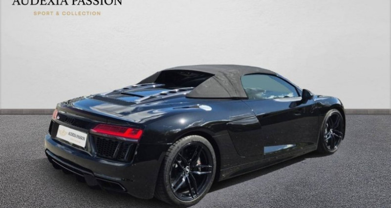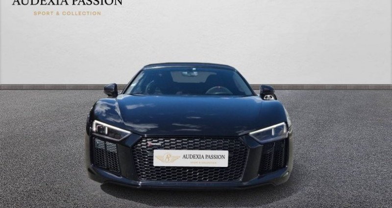 Cylindrée : 5204 cm3 Nb. Vitesse : 7 - Allumage automatique des feux et détecteur de pluie - Applications décoratives étendu laque noire pour l'encadrement de l'Audi virtual cockpit et des diffuseurs d'air - Audi Virtual Cockpit - Boîte automatique S Tronic 7 vitesses à double embrayage - Climatisation automatique Confort spéciale R8 - Eclairage intérieur à technologie LED - EDS: Blocage électronique de différentiel et aide au démarrage - Feux AR à LED avec clignotants dynamiques - Jantes en aluminium coulé style 5 branches en V 8.5Jx19 avec pneus 245/35 R19 à l'AV et 11Jx19 avec pneus 295/35 R19 à l'AR - Moulures de seuils de portes avec insert d'aluminium et inscription R8 - Navigation MMI Plus avec MMI Touch: Système de navigation - Pack Eclairage - Rétroviseur intérieur jour/nuit automatique - Rétroviseurs extérieurs réglables, dégivrants et rabattables électriquement à réglage jour/nuit automatique des 2 côtés - ABS (antiblocage de roue) avec répartiteur de freinage EBV et amplificateur hydraulique de freinage - Affichage du contrôle de pression des pneumatiques - Airbag passager AV désactivable - Airbags frontaux conducteur et passager grand volume - Airbags latéraux AV - Alarme antivol - Applications décoratives laque anodisée anthracite pour la barrette sur le monoplace, inserts dans la portière et le tableau de bord côté passager ainsi que sur la console centrale - Appuis-tête AV actifs - Appuis-tête AV réglables en hauteur - ASR : antipatinage - Audi Drive Select (Permet le réglage du mode de conduite) - Audi Magnetic Ride - Audi Parking System Plus AV et AR - Audi Premium Tracking System - Boîtiers de rétroviseurs extérieurs dans la couleur de la carrosserie - Clé confort (keyless) avec ouverture/fermeture des portes er démarrage du moteur sans clé - Direction assistée électromécanique - EBV : Répartiteur électronique de freinage - ESP: Programme électronique de stabilisation déconnectable - Fixation pour sièges enfants ISOFIX pour le siège passager AV - Freins AV : étriers 8 pistons avec disques wave/Freins AR : étriers 4 pistons avec disques wave - Kit de 1er secours avec triangle de signalisation - Outillage de bord dans le coffre - Panneaux latéraux (Side blade) de couleur Argent glacier métal - Récupération d'énergie au freinage - Réglage électrique des deux sièges AV réglage électrique de la position longitudinale de sièges, réglage pneumatique de l'appui lombaire à 4 axes - Régulateur/Limiteur de vitesse - Réservoir de carburant 83 litres (+10 litres) - Rétroviseurs extérieurs avec verre asphérique - Sièges AV Sport R8 - Sièges Chauffants - Système Start & Stop avec récupération d'énergie au freinage - Tire Mobility System Compresseur et produit de colmatage pour les pneus; remplace roue de secours normale - Vitres athermiques teintées vertes et pare-brise en verre feuilleté accoustique