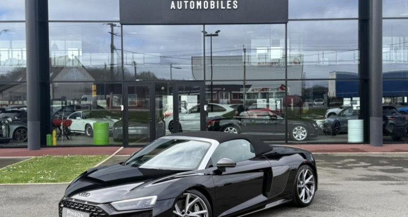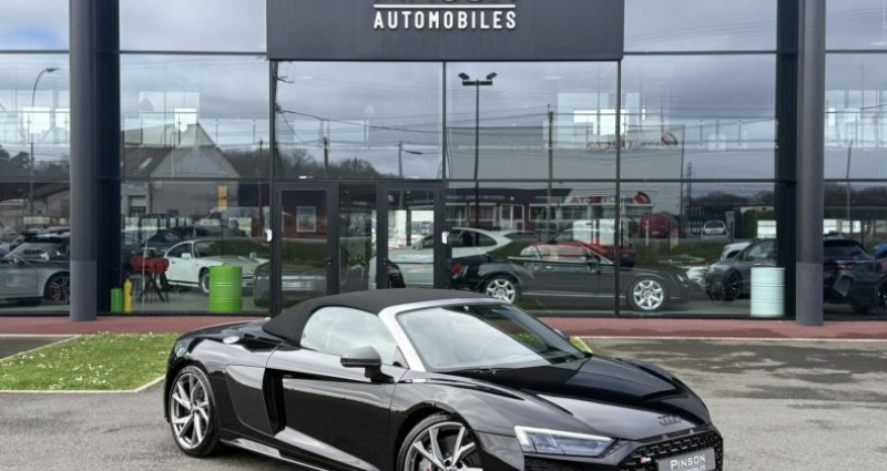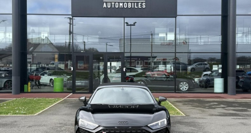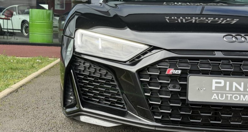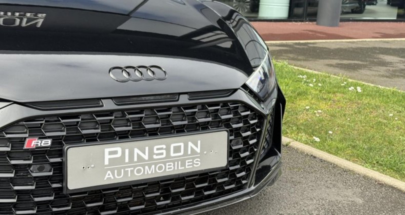 ======= OPTIONS ======= Audi smartphone interface Baguettes de seuil de porte en Carbone brillant Commande ouverture fermeture de porte de garage (HomeLink) Direction dynamique Fixation ISOFIX sur siège passager avant Freins en céramique avec étriers de freins rouges Jantes 20 en aluminium entièrement fraisées style 5 branches doubles dynamiques Peinture métallisée Phares à LED avec éclairage laser Audi Réglage électrique des deux sièges avant avec mémoires : réglage pneumatique des bourrelets de sièges et des joues de dossier, réglage électrique de la position longitudinale de sièges, réglage pneumatique de l'appui lombaire Sellerie 1 en cuir Nappa fin Audi exclusive Spoiler arrière en carbone brillant Sur-tapis Audi exclusive ======= EQUIPEMENTS DE SERIE ======= ABS : système antiblocage avec répartiteur électronique de freinage EBV et amplificateur hydraulique de freinage Affichage du contrôle de la pression des pneumatiques Airbag frontal passager déconnectable Airbags frontaux grand volume conducteur et passager Alarme antivol Audi connect Audi Drive Select Audi parking system plus : signal acoustique et visuel d'aide au stationnement avant et arrière par pictogrammes sur l'écran Audi Parking System Plus avec caméra de recul Badge R8 sur la calandre avant Bang & Olufsen Sound System Climatisation automatique confort spéciale R8 Détecteur de pluie et allumage automatique des projecteurs Eclairage d'accueil LED de portières Eclairage intérieur à technologie LED : spots de lecture à l'avant, éclairage de la boîte à gants, du coffre, des commutateurs intérieurs de portières et du sol Embout d'échappement noir brillant Feux arrière à LED avec clignotants dynamiques Freins en céramique Navigation MMI plus avec MMI touch Pack Extérieur en carbone brillant Audi exclusive Palettes de changement de vitesses avec applications style aluminium Pédalier et repose-pied en acier inoxydable Réception radio numérique (DAB) Régulateur et limiteur de vitesse Rétroviseurs extérieurs électriques rabattables et dégivrants, à réglage jour nuit automatique Sièges avant réglables en hauteur électriquement Sièges chauffants Système d'accès et de démarrage sans clé Keyless Access Système Start Stop avec récupération d'énergie de freinage Volant Performance R8 en cuir avec multifonction plus et 3 satellites de commande style 3 branches, aplati en bas, avec emblème R8 Nb. Vitesses : 7 Conso Mixte : l/100