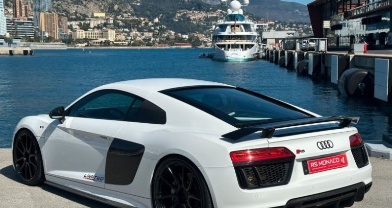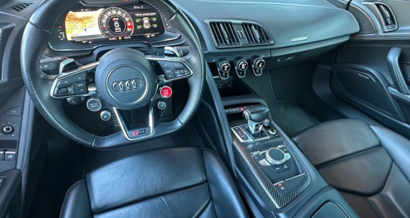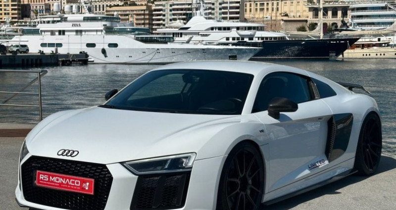 AUDI R8 II 5.2 V10 PLUS FSI 610 QUATTRO S TRONIC PACK CARBONE Véhicule en excellent état Audi R8V10 PLUS avec une très belle configuration Pack carbone interieur et exterieur Suivi Audi Immatriculation Française Carte grise moitié prix Date de mise en circulation : 29/09/2015 Kilométrage : 64000kms Exterieur : Blanc métalisée / Détails Carbone Interieur : Cuir Noir / Détails carbone Equipements et Options : Freins céramique Sièges chauffants Système audio Bang & Olufsen Applications décoratives carbone brillant Inserts en carbone mat dans l’habitacle Console centrale carbone Aileron carbone Side Blade en carbone Seuil de porte carbone /Alu avec logo R8 Détails compartiment moteur carbone Coques de rétroviseurs carbone Lame carbone Diffuseur carbone Jupes latéral carbone Ciel de toit en alcantara Audi virtual cockpit Siège électrique Phares à allumage automatique Ampoules de phares LED Freins régénérateurs Feux arrières à LED Rétroviseurs extérieurs réglage électrique Feux de route à LED Rétroviseurs extérieurs chauffants Rétroviseurs rabattables électriquement Aide parking avec caméra de recul Frein de parking automatique Jantes alu noires Rétroviseurs électriques Rétroviseurs électriques et dégivrants Système audio carte digitale Chargeur 1 CD Bouton démarrage Palettes au volant Air conditionné auto Système de navigation Audi Système audio lecteur CD et MP3 Connexion Internet Bluetooth inclut musique en streaming, connexion téléphone Smart card / Smart key Volant cuir Ordinateur de bord Tapis de sol Taille écran navigation 12.3 pouces Système de navigation info trafic Rétroviseur jour/nuit Volant multi-fonction Palettes au volant Réseau Wifi Bluetooth Reconnaissance vocale 13 haut-parleurs Air conditionné 1 zones Siège avant chauffant Pré-équipement téléphone Réglage du volant en hauteur, en profondeur Taille écran multi-fonctions 12.3 pouces Pack carbone Pédalier alu Régulateur limiteur de vitesse 6 airbags ESP Airbags rideaux Système détection de collision Indicateur de sous-gonflage des pneus Assistance au freinage d'urgence Kit anticrevaison Essuie glace capteur de pluie Antipatinage ABS Airbags latéraux Antivol Alarme Climatisation automatique RS MONACO VOUS PROPOSE AUSSI : * ACHAT & REPRISE de votre ancien véhicule * Gestion des démarches administratives liées à l'immatriculation et carte grise de votre véhicule, en France et à Monaco * Véhicule garanti 3 mois * Financement de votre nouvelle acquisition possible (Validation sous 48 heures sous réserve d'acceptation du dossier) Aucune responsabilité n’est assumée par notre société en cas d'erreurs