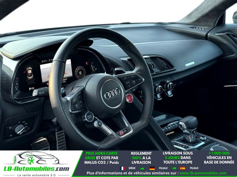 Référence : 1182506 Vos Avantages chez LB-AUTOMOBILES.com / Prix affiché TTC Livré hors carte grise / Livraison sous 10 jours dans toute la France hors 31 / Pas d?avance de frais paiement du véhicule 100% à la livraison par virement. Audi R8 Neuf remisée, Audi R8 Occasion Toulouse Beaupuy 31850, Audi R8 Véhicule sorti de réseau collaborateur, Audi R8 import, Audi R8 importateur, Audi R8 Livraison possible dans toute la France sous 5 jours, Audi R8, Audi R8 Location Option Achat, Audi R8 LLD, Audi R8 Longue Durée, Audi R8 TVA récupérable. Possibilité d'extension de garantie 12, 24,36 mois, Pour tout autres voitures import neufs ou occasions collaborateur fortement remisée, Mandataire Audi, Mandataire BMW, Mandataire Volkswagen, Mandataire Mercedes, Mandataire Peugeot Espagne, Mandataire Renault Espagne, Porsche import, Mandataire Citroën Espagne, Mandataire Seat Espagne, n'hésitez pas à nous contacter. « Sous réserve de vente préalable et erreur de saisie » Principaux équipements : - 4x4 - ABS - Accoudoir - Android Auto - Antidémarrage - Apple CarPlay - Assistance de démarrage en côte - Assistant feux de route - Bluetooth - Boîte de vitesses robotisée - Capteur de lumière - Capteur de pluie - Carnet d'entretien - Chargement par induction pour smartphones - Cockpit numérique - Commande vocale - Contrôle de la pression des pneus - Direction assistée - Écran tactile - ESP - Fermeture centralisée - Feux de jour - GPS - Jantes alliage - Kit de préparation pour système de navigation - Kit mains libres - Ordinateur de bord - Pack sport - Phare antibrouillard - Phares LED - Pneus été - Port USB - Radio DAB - Régulateur de vitesse - Rétroviseur extérieur électrique - Révision complète - Sièges chauffants - Sièges sport - Streaming musical intégré - Support lombaire - Suspension sport - Système antipatinage - Système d'alarme - Système d'appel d'urgence - Système de détection de la fatigue - Système de sonorisation - Système Stop & Start - Tuner/radio - Véhicule non-fumeur - Verrouillage centralisé sans clé - Vitres électriques - Volant en cuir - Volant multifonction