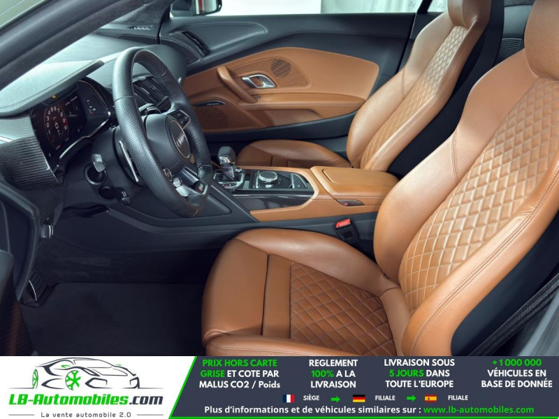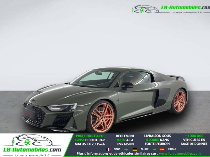 Référence : 1182397 Vos Avantages chez LB-AUTOMOBILES.com / Prix affiché TTC Livré hors carte grise / Livraison sous 10 jours dans toute la France hors 31 / Pas d?avance de frais paiement du véhicule 100% à la livraison par virement. Audi R8 Neuf remisée, Audi R8 Occasion Toulouse Beaupuy 31850, Audi R8 Véhicule sorti de réseau collaborateur, Audi R8 import, Audi R8 importateur, Audi R8 Livraison possible dans toute la France sous 5 jours, Audi R8, Audi R8 Location Option Achat, Audi R8 LLD, Audi R8 Longue Durée, Audi R8 TVA récupérable. Possibilité d'extension de garantie 12, 24,36 mois, Pour tout autres voitures import neufs ou occasions collaborateur fortement remisée, Mandataire Audi, Mandataire BMW, Mandataire Volkswagen, Mandataire Mercedes, Mandataire Peugeot Espagne, Mandataire Renault Espagne, Porsche import, Mandataire Citroën Espagne, Mandataire Seat Espagne, n'hésitez pas à nous contacter. « Sous réserve de vente préalable et erreur de saisie » Principaux équipements : - 4x4 - ABS - Accoudoir - Antidémarrage - Assistance de démarrage en côte - Assistant feux de route - Bluetooth - Boîte de vitesses robotisée - Capteur de lumière - Capteur de pluie - Carnet d'entretien - Chargement par induction pour smartphones - Cockpit numérique - Commande vocale - Contrôle de la pression des pneus - Direction assistée - Éclairage adaptatif - Éclairage d'ambiance - Éclairage route non éblouissant - Écran tactile - ESP - Fermeture centralisée - Feux de jour - GPS - Isofix - Jantes alliage - Kit de réparation d'urgence des pneus - Kit mains libres - Ordinateur de bord - Pack sport - Phare antibrouillard - Phares laser - Pneus été - Point Isofix siège passager - Port USB - Radio DAB - Réglage électrique des sièges - Réglage électrique des sièges avec fonction mémoire - Régulateur de vitesse - Rétroviseur extérieur électrique - Rétroviseur intérieur anti-éblouissement automatique - Rétroviseurs extérieurs rabattables électriquement - Sièges chauffants - Sièges sport - Support lombaire - Suspension adaptative - Suspension sport - Système antipatinage - Système d'alarme - Système d'appel d'urgence - Système de détection de la fatigue - Système de limitation de la vitesse - Système de reconnaissance des panneaux de signalisation - Système de sonorisation - Système Stop & Start - Tuner/radio - TV - Véhicule non-fumeur - Verrouillage centralisé sans clé - Vitres électriques - Vitres teintées - Volant en cuir - Volant multifonction - WLAN / point d'accès Wi-Fi